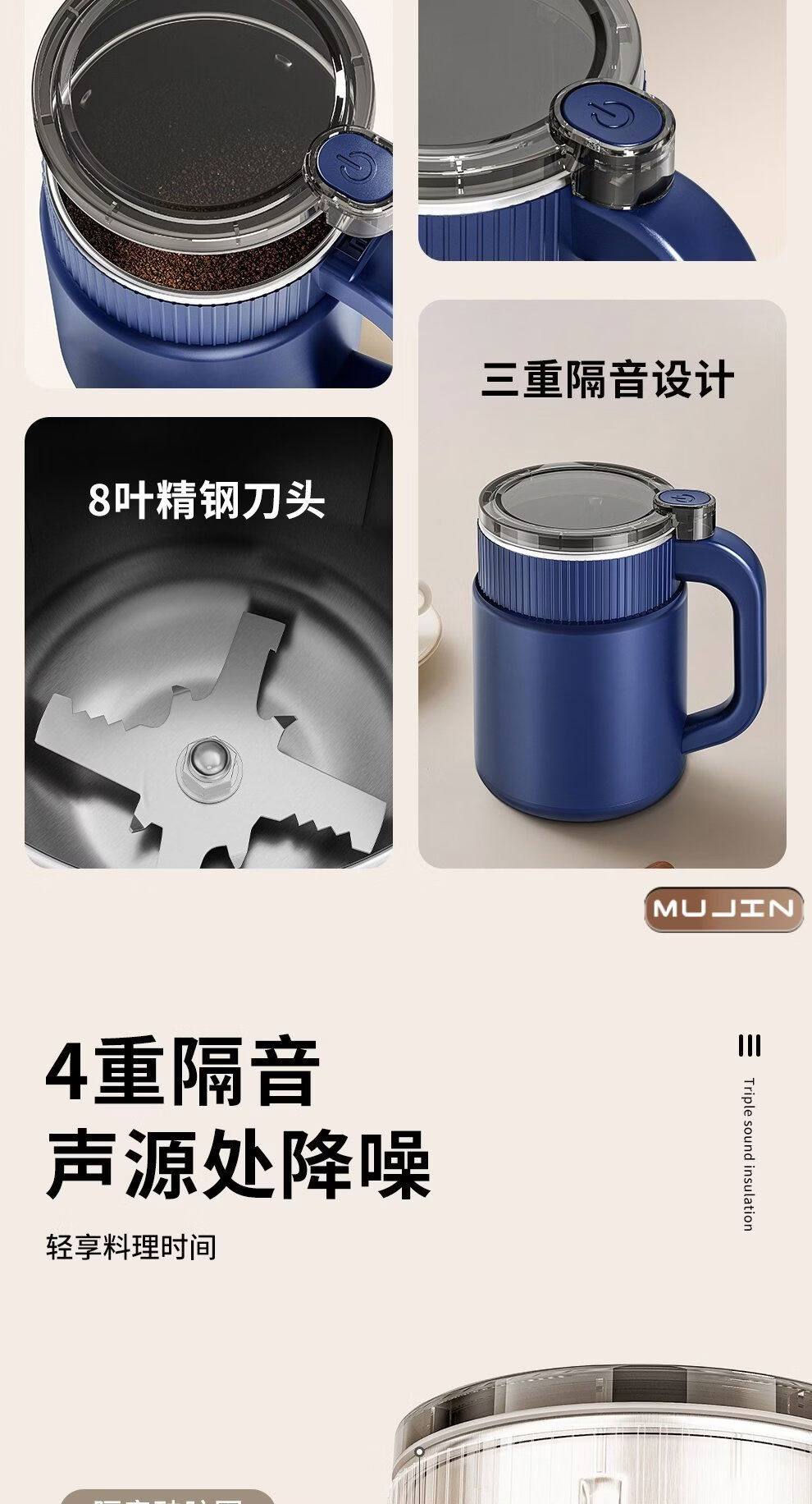 Pick up cat Japanese MUJIN household grinding machine small Chinese medicine crushing grains ultra-fine grinder wall-breaking grinder ProMax3C++500ml++ one machine multi-purpose + stainless steel