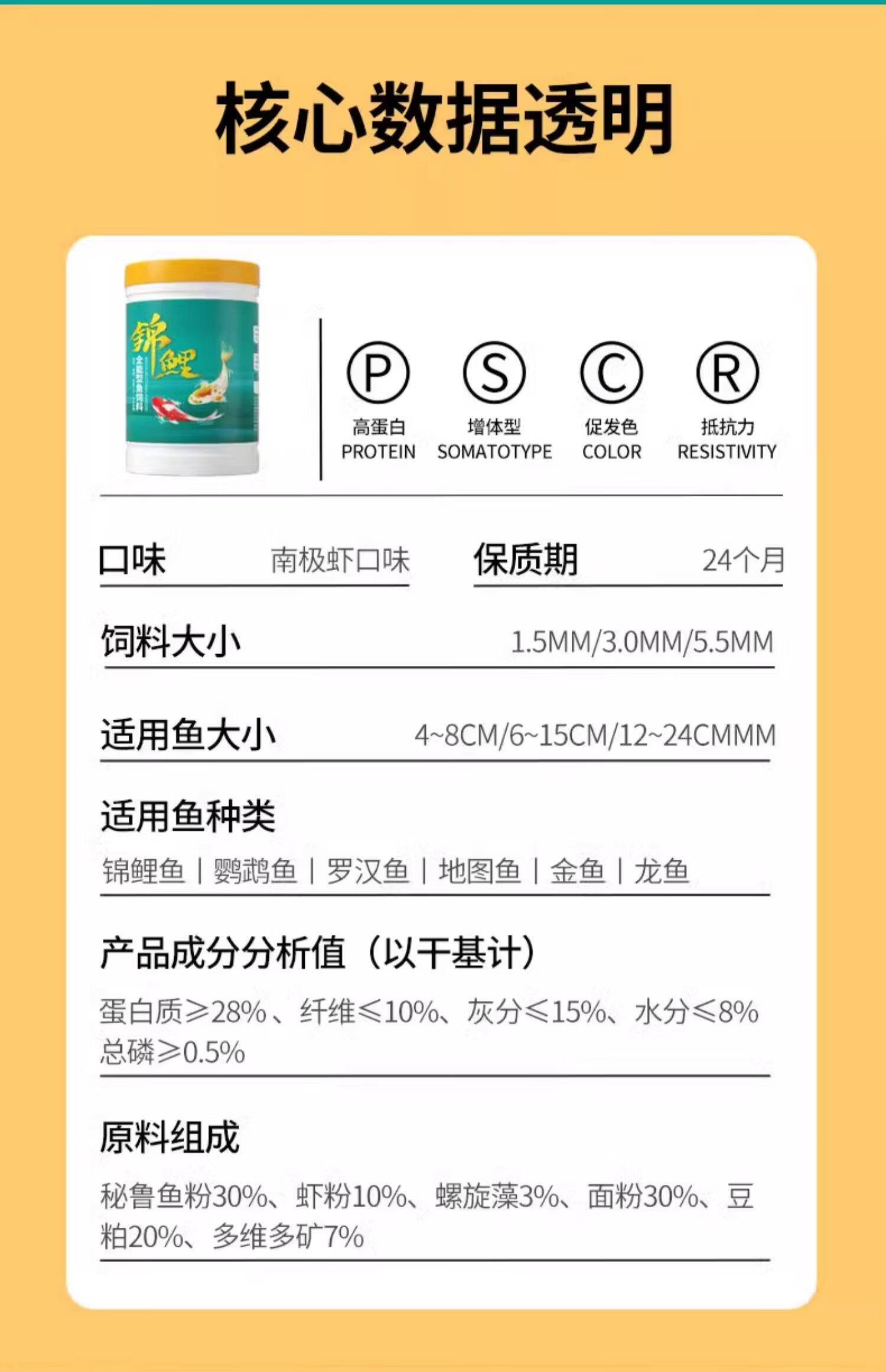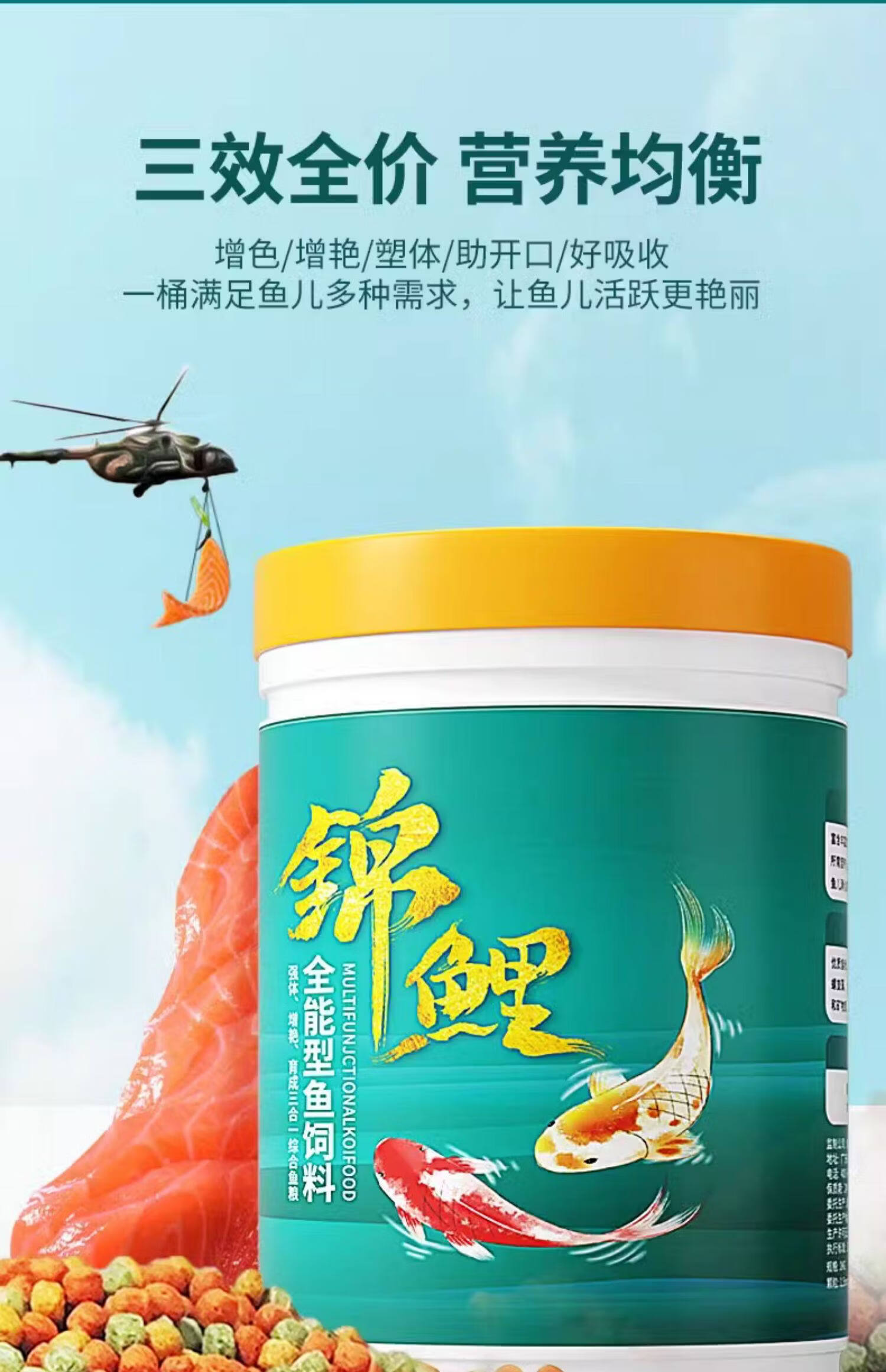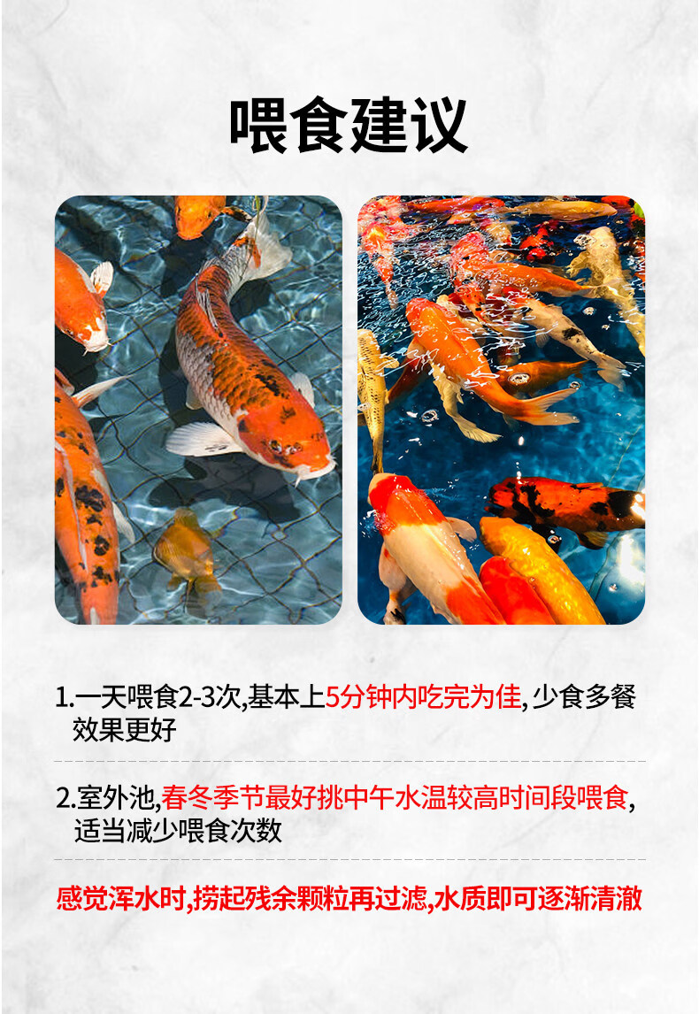 Koi fish food, goldfish feed, special non-turbid water ornamental fish food for color enhancement and body shaping, small particles for household breeding, general three-effect full-price fish food 3.0mm10Jin Jin equal to 0.5kg, suitable for fish