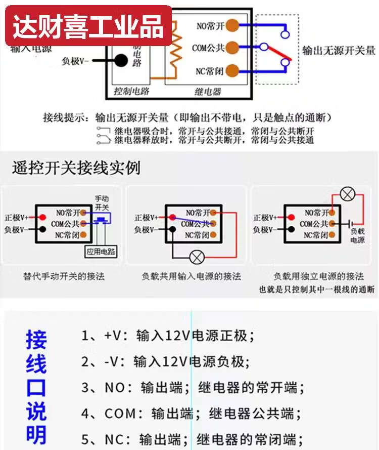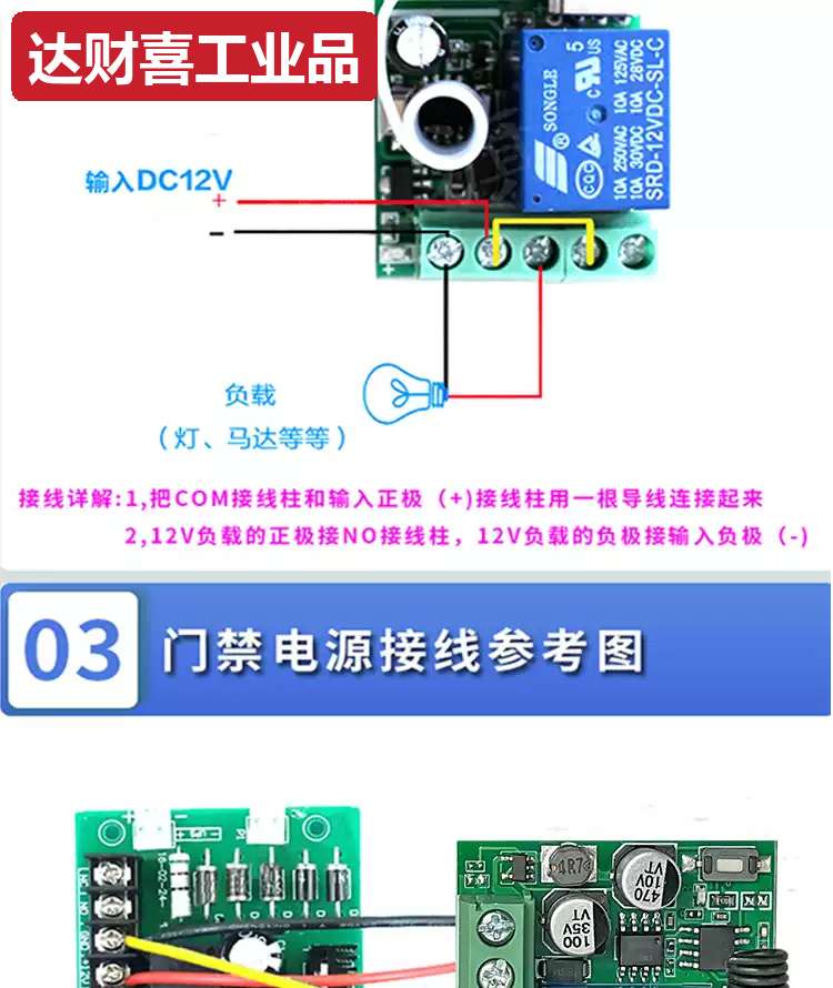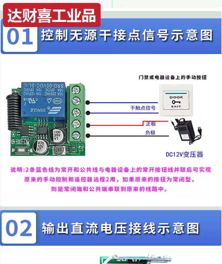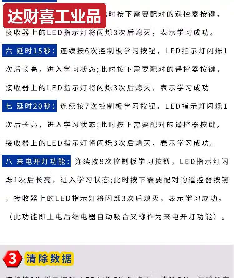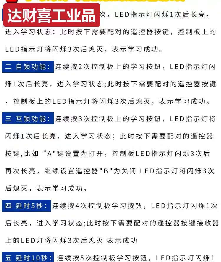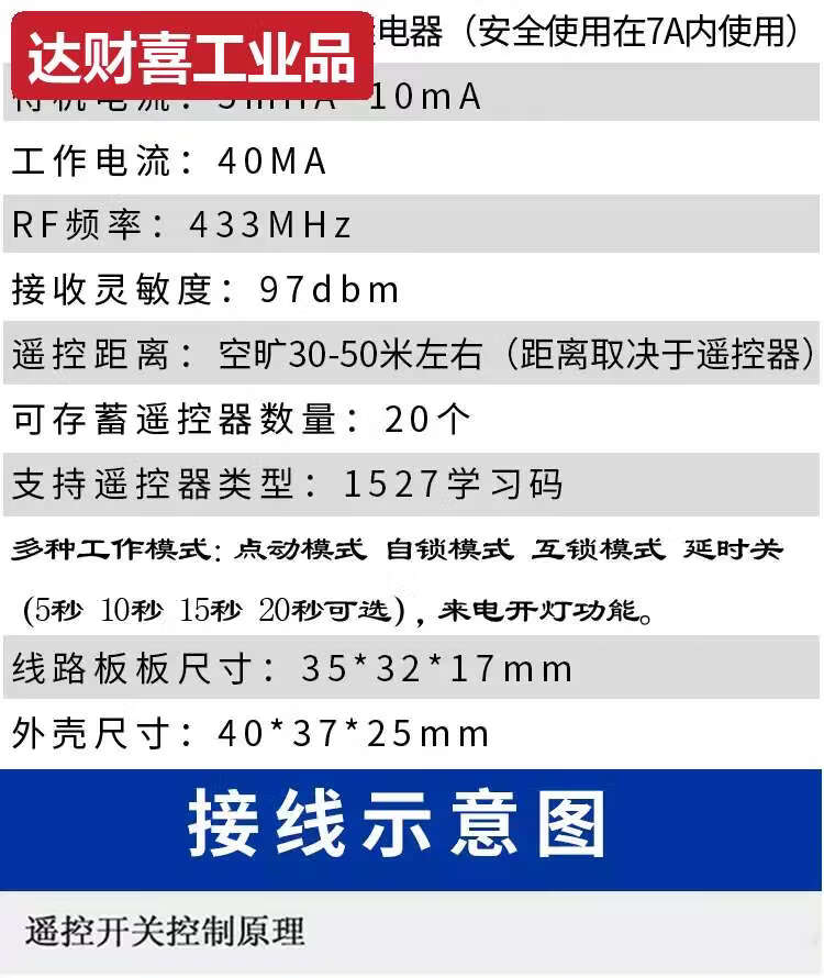 5V12V24V wireless single-channel remote control switch wireless remote control switch electric door remote control random sticker 43 1 receiver + 3 blue transmitters 5-24