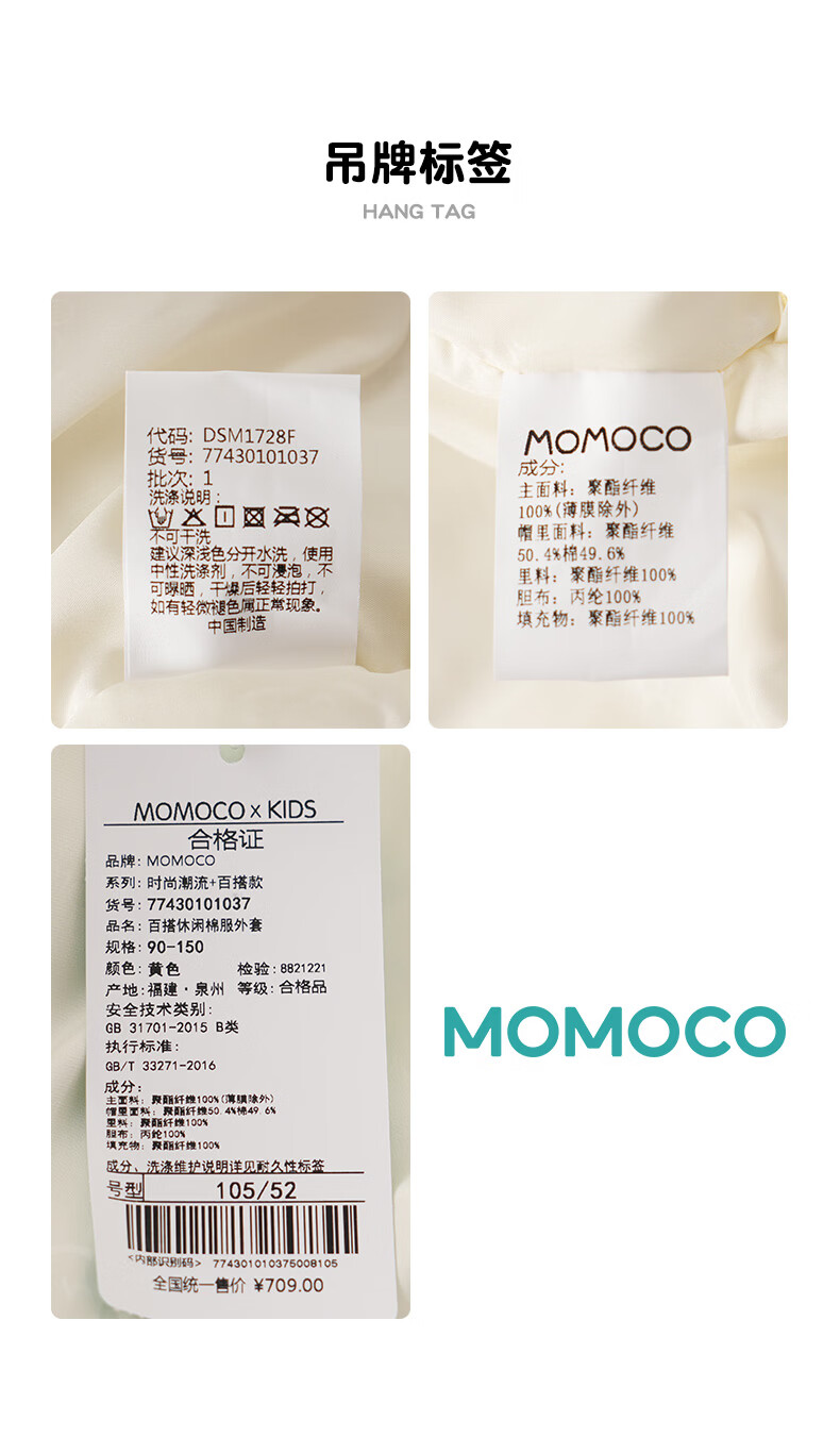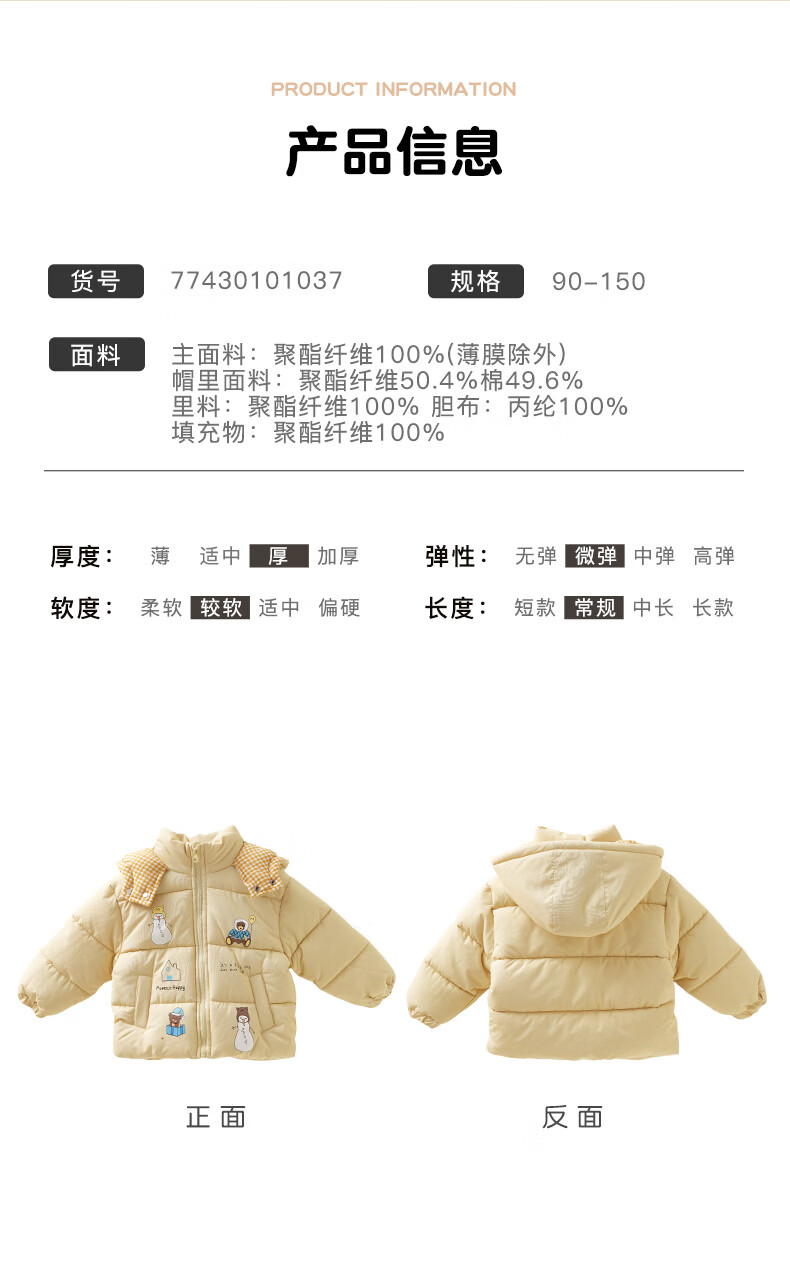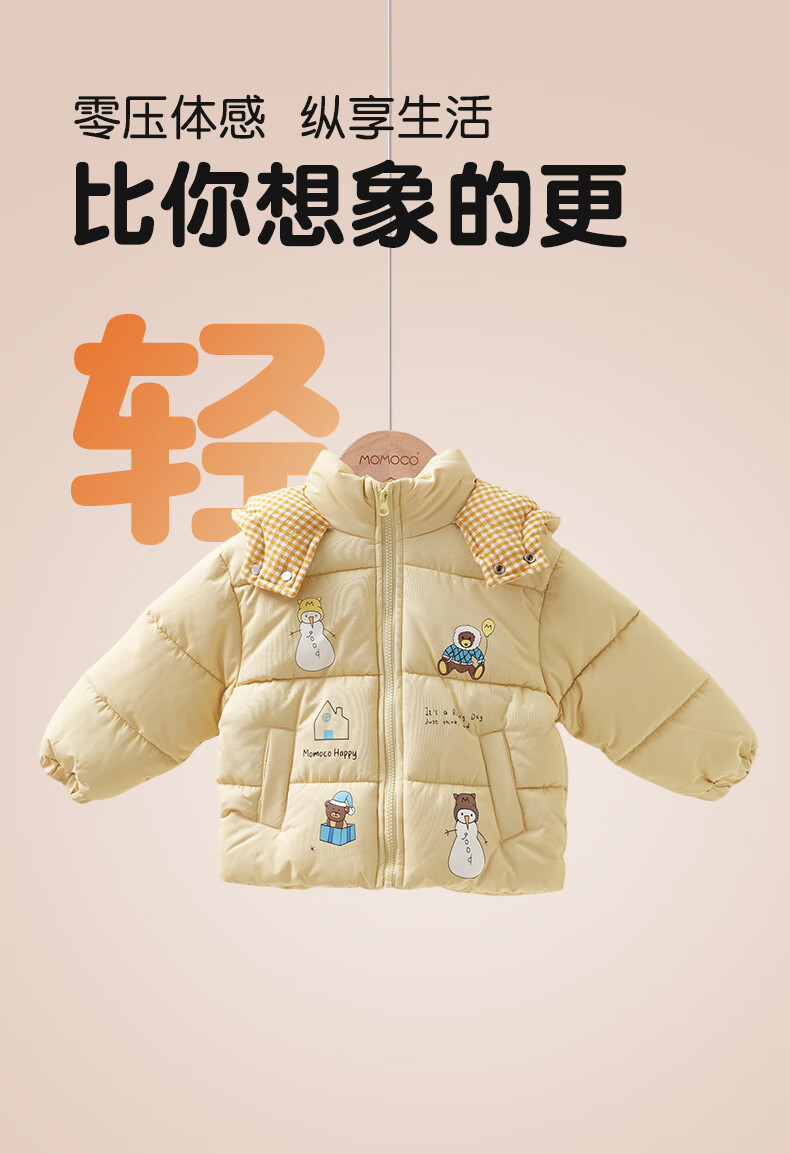 Mami Maca (MOMOCO) children's clothing boys' cotton jacket 2025 winter style medium and large children's versatile casual cotton jacket yellow 90