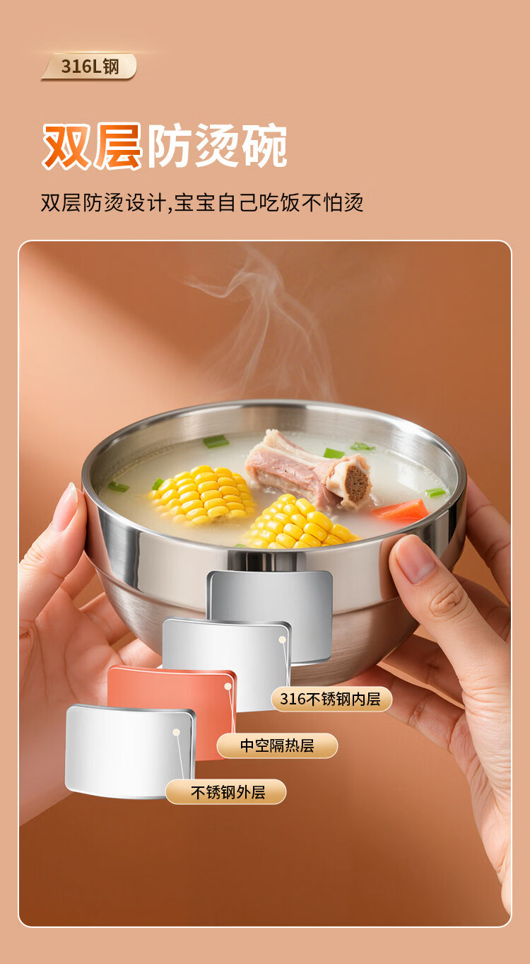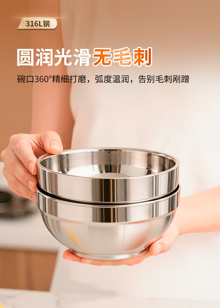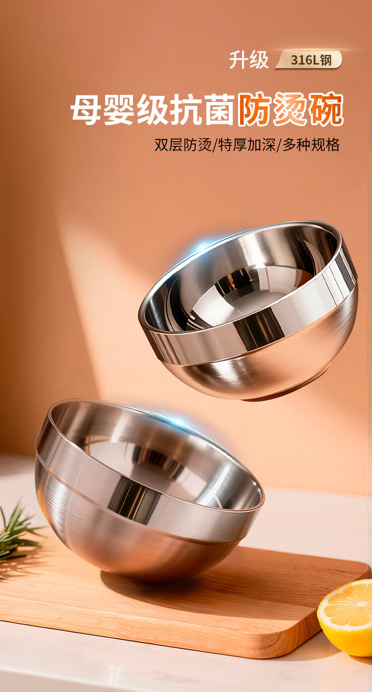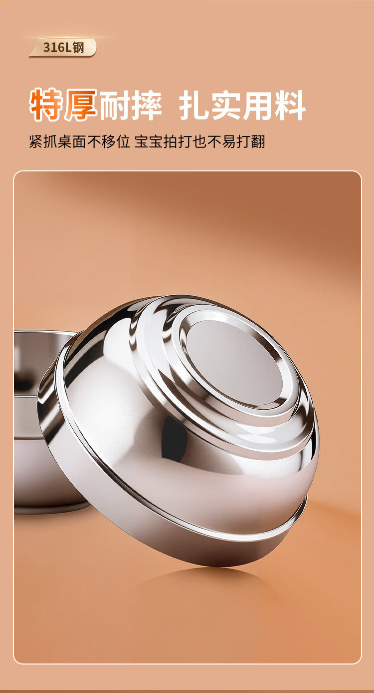 He Jiangong double-layer food grade 316 stainless steel bowl children's rice bowl anti-fall and anti-scalding large bowl iron bowl soup bowl household 304 noodle bowl food grade extra thick anti-scalding insulated bowl - 12 cm (Buy 91)
