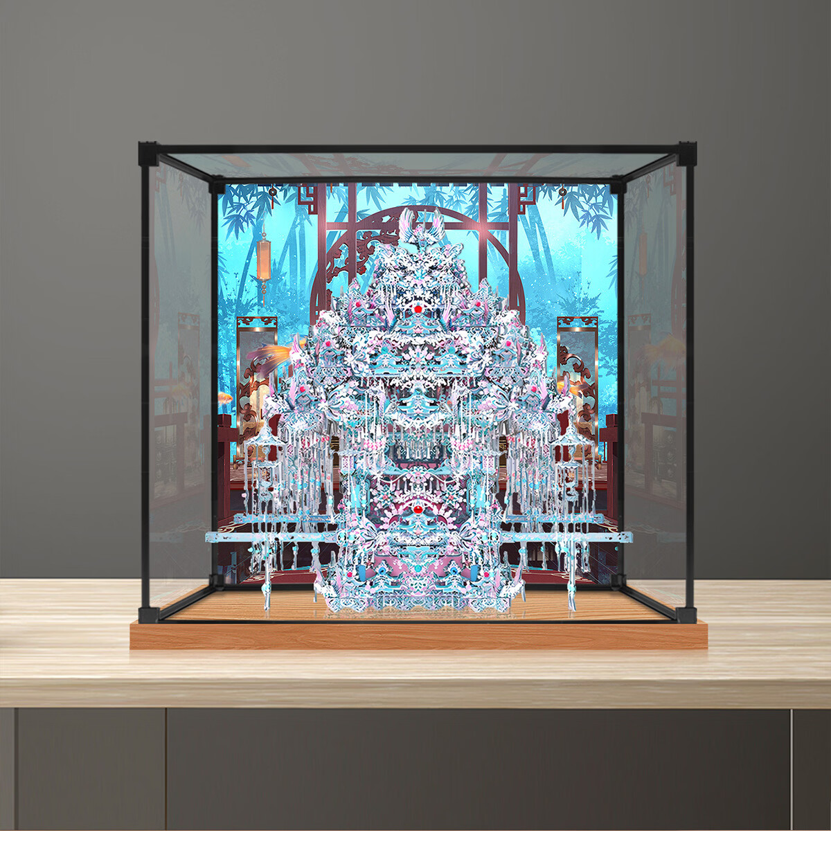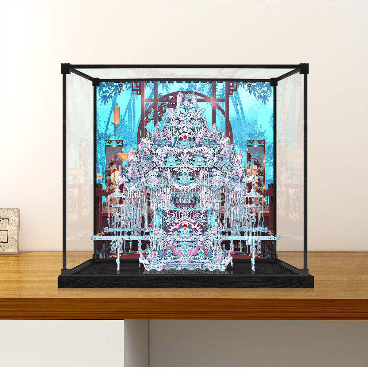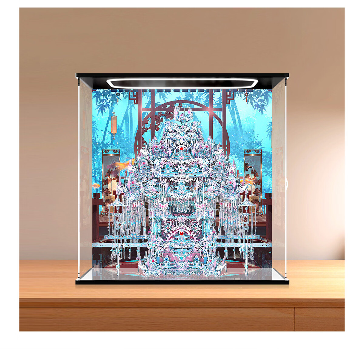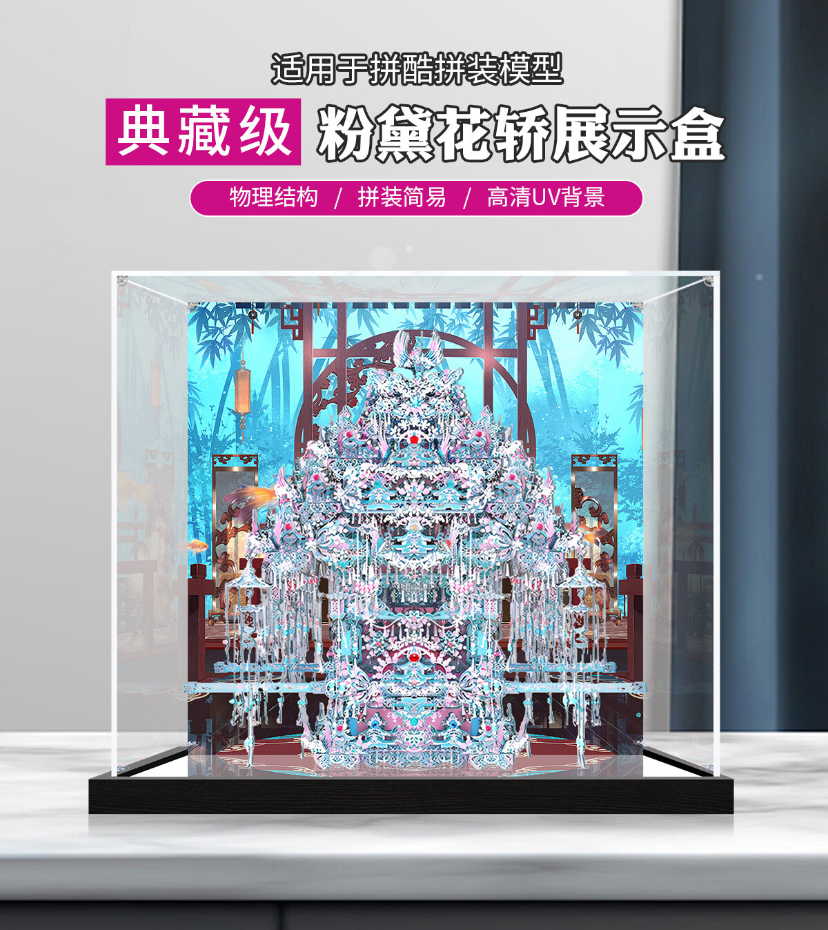 Lingzhi is suitable for the cool pink and white Wan Gong three-dimensional sedan gift hand model back lamp storage cover acrylic display box boutique black bottom reinforced model comes with a mirror