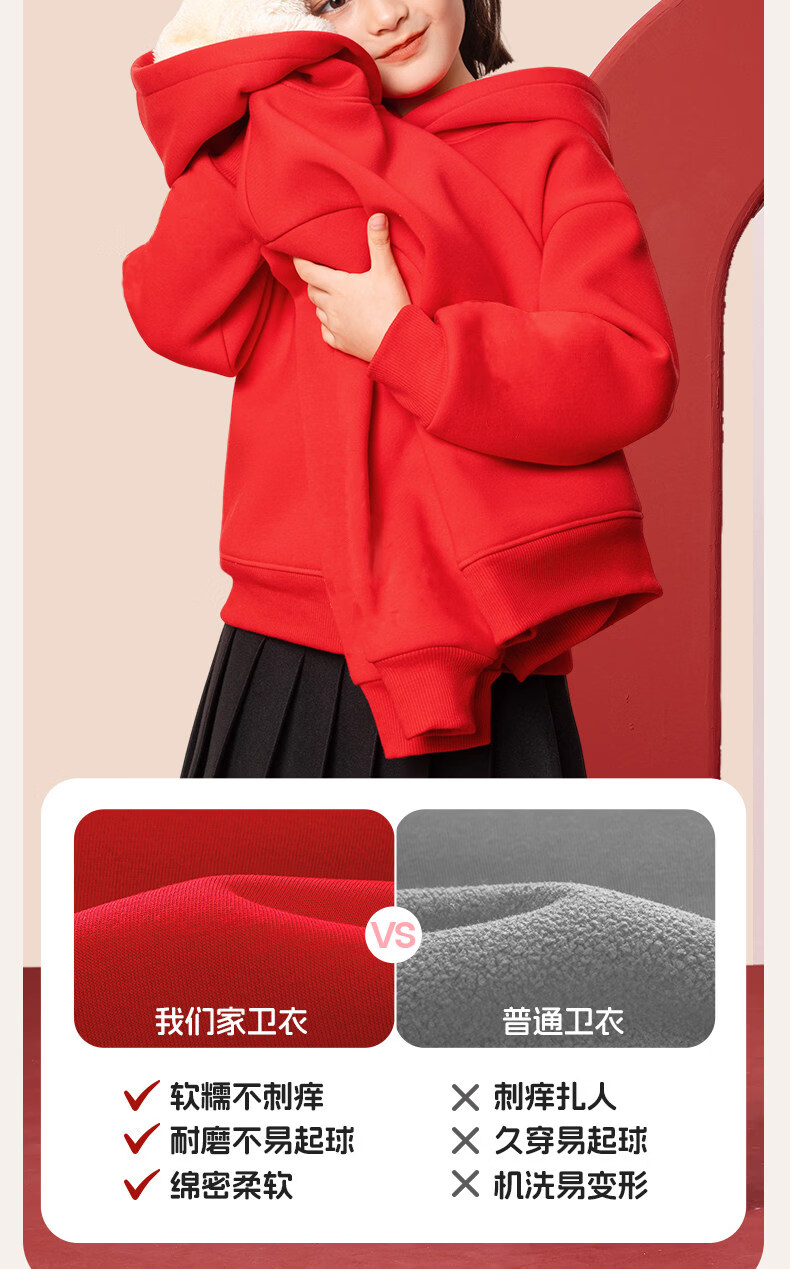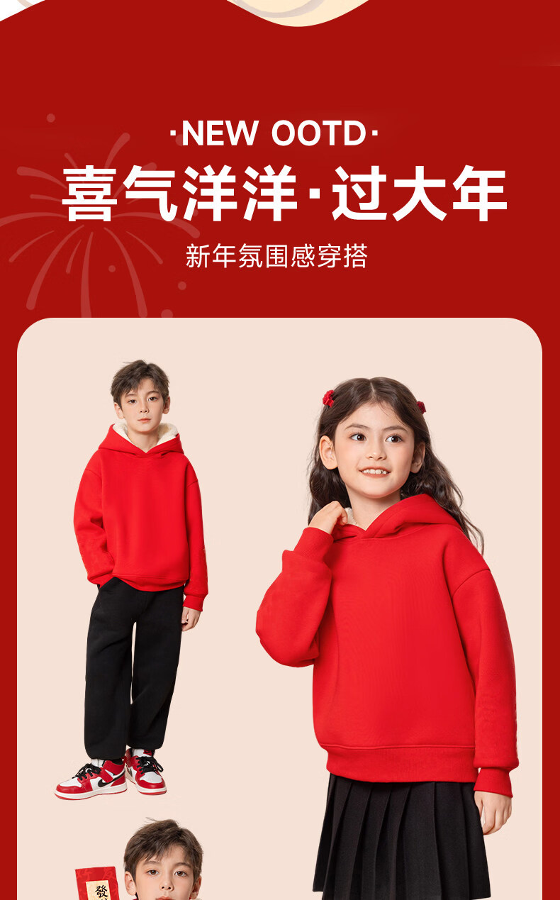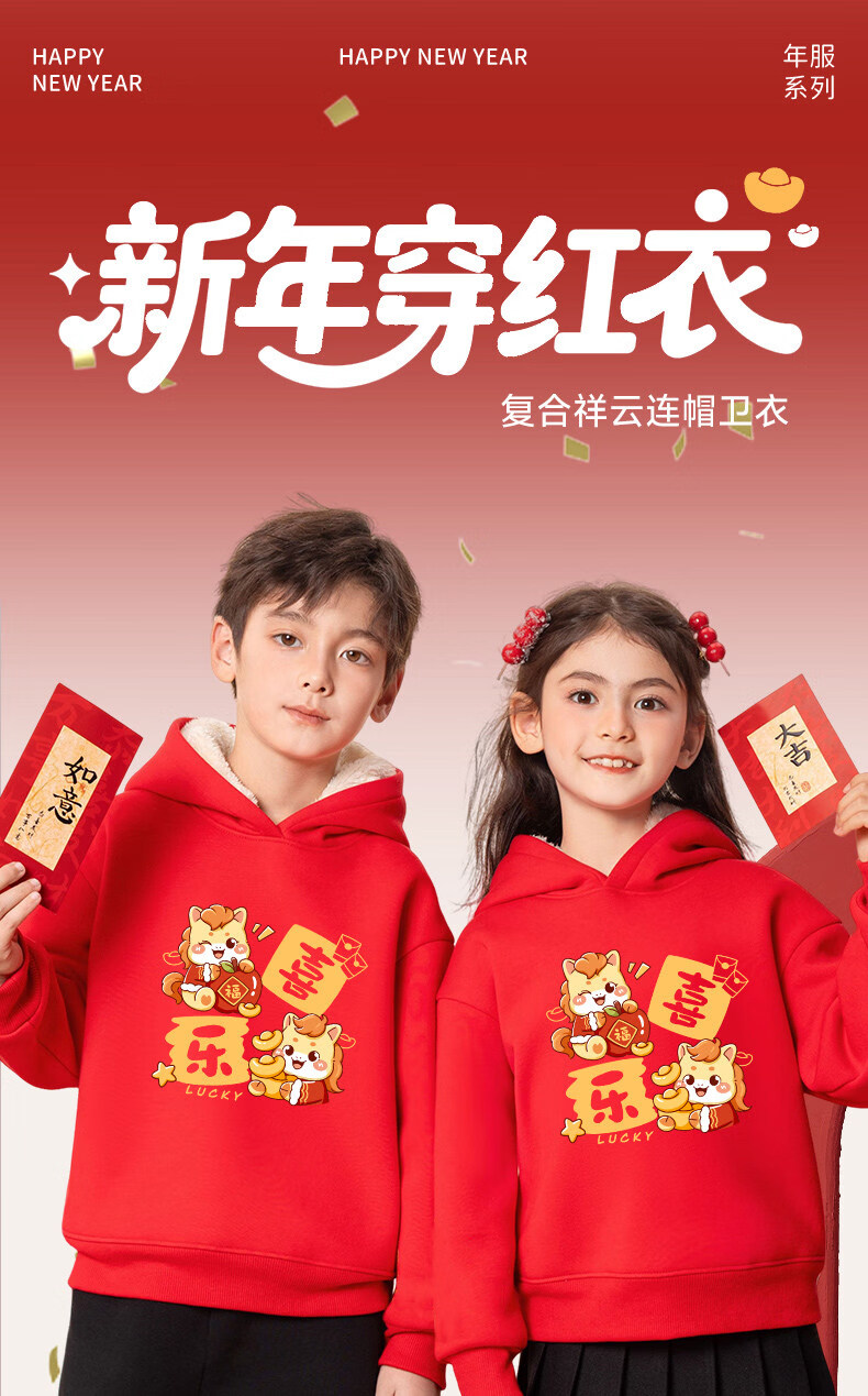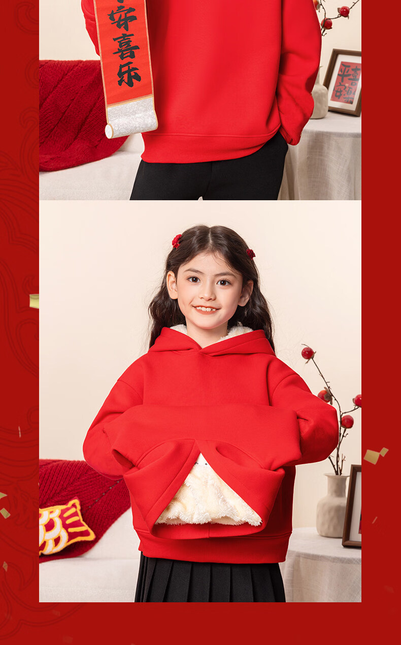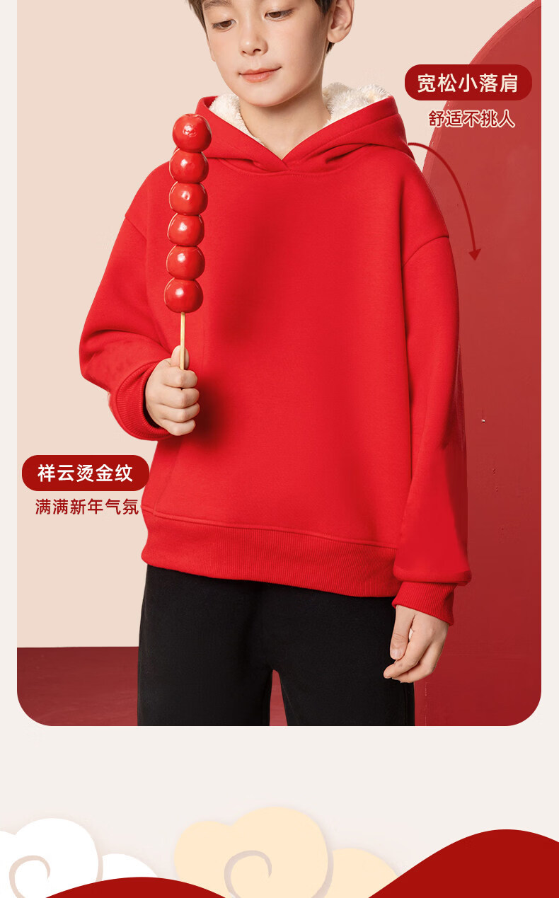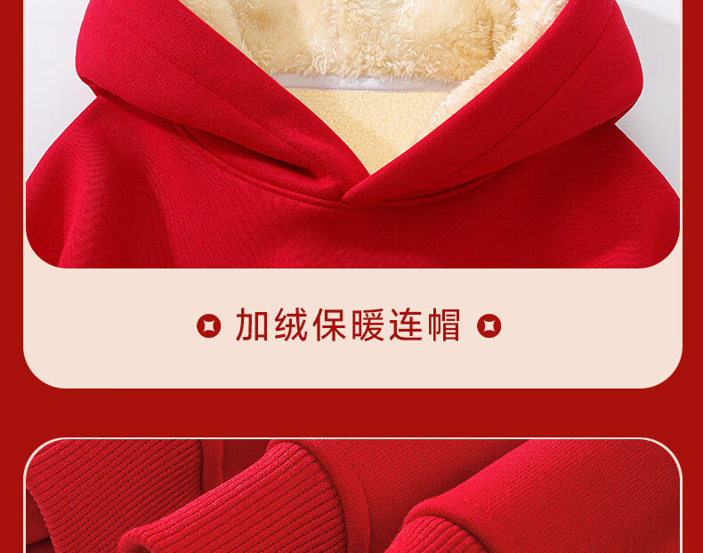 G.duck children's red New Year's greeting clothes 2026 new year of the horse zodiac year plus velvet sweatshirt Chinese New Year boys and girls New Year children's clothing Apple horse wine red 140 cm recommended 45-55 Jin Jin equals 0.5 kg