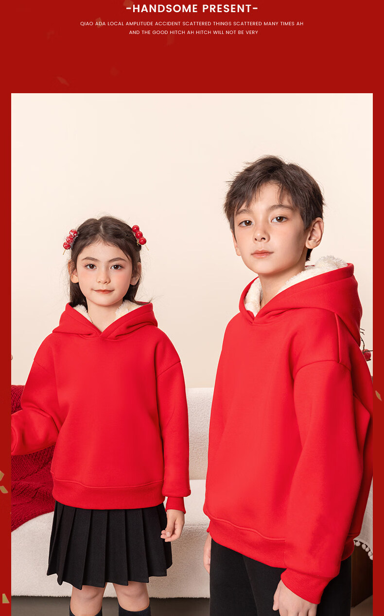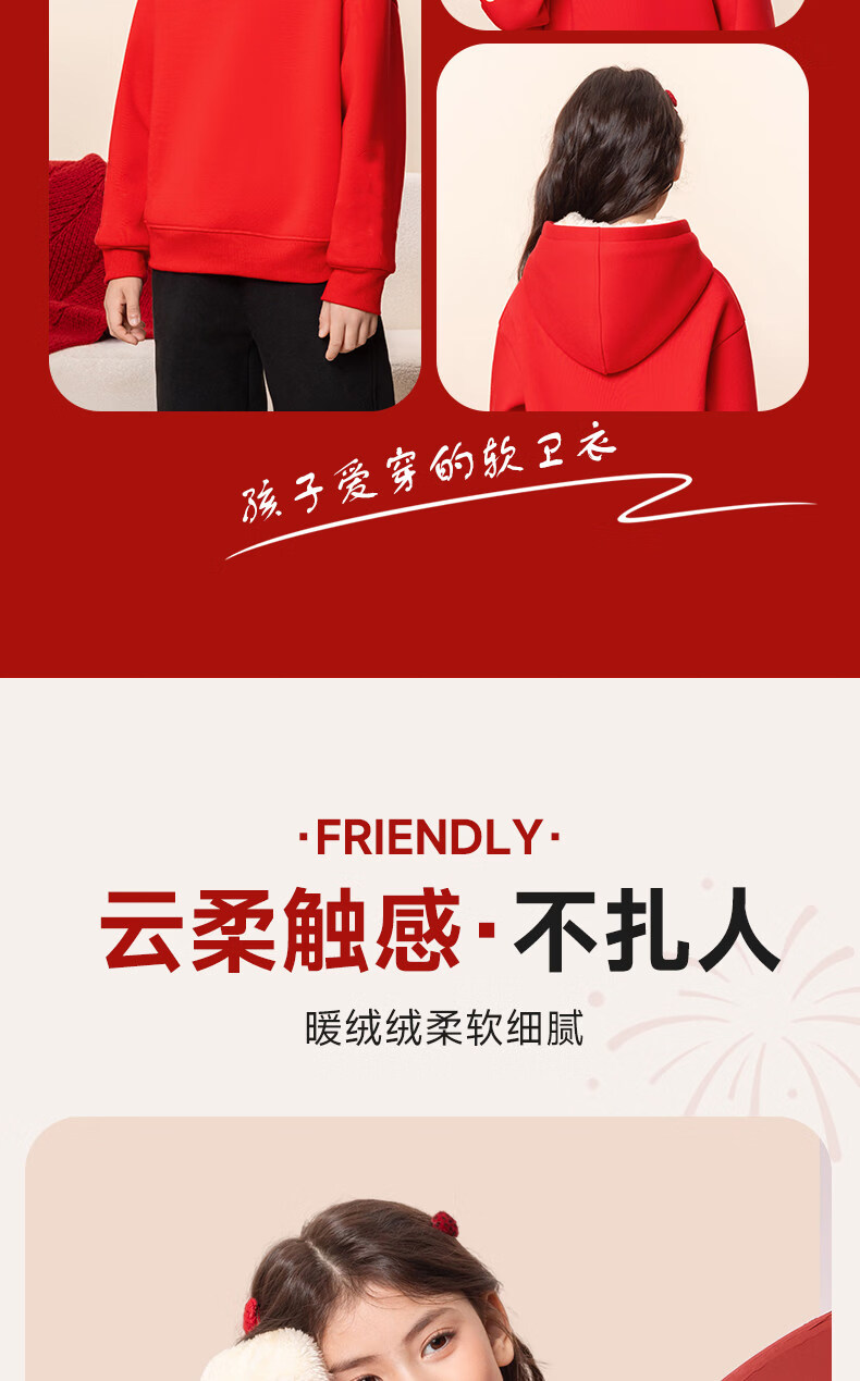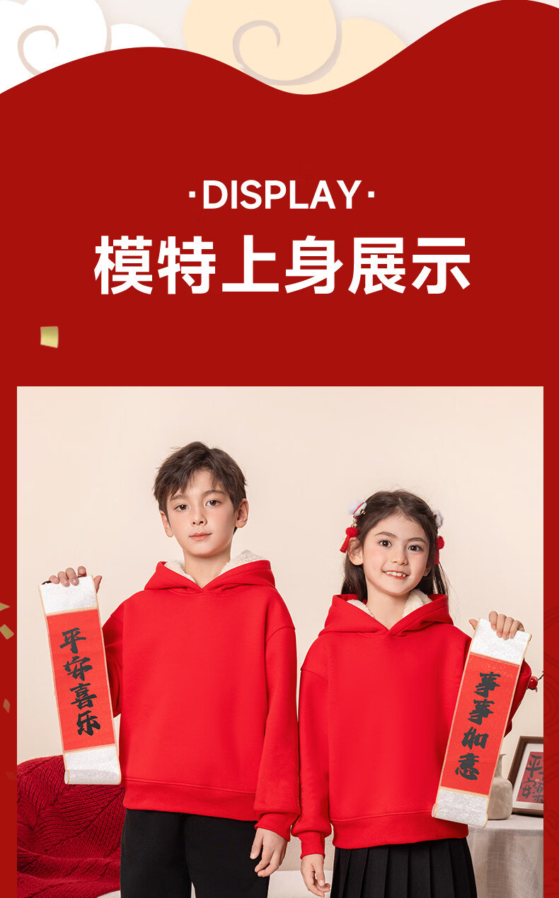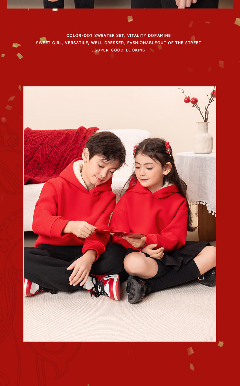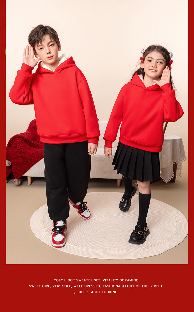 G.duck children's red New Year's greeting clothes 2026 new year of the horse zodiac year plus velvet sweatshirt Chinese New Year boys and girls New Year children's clothing Apple horse wine red 140 cm recommended 45-55 Jin Jin equals 0.5 kg