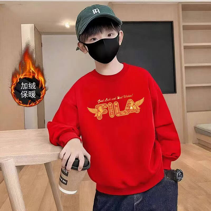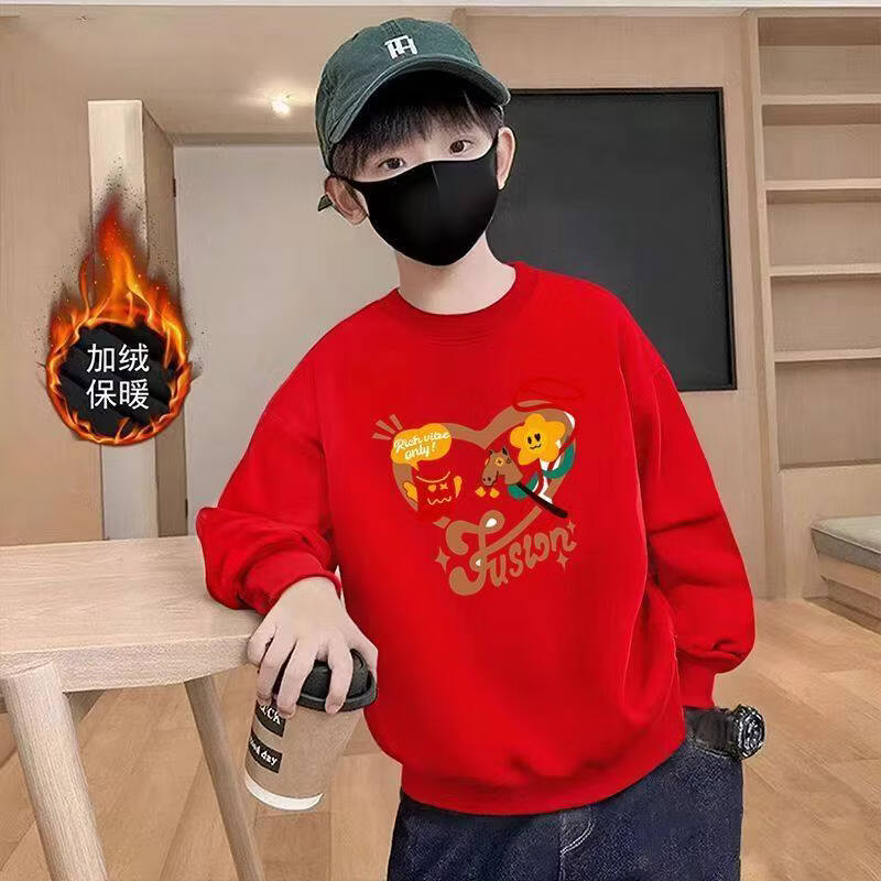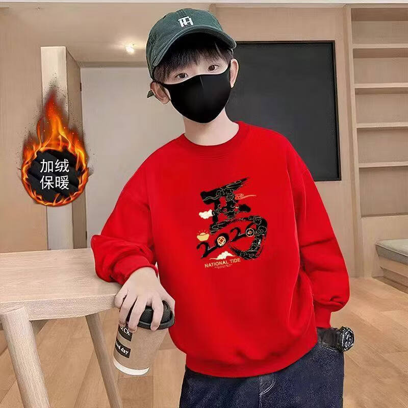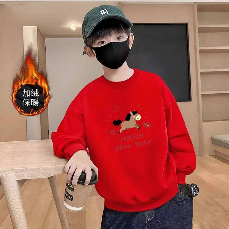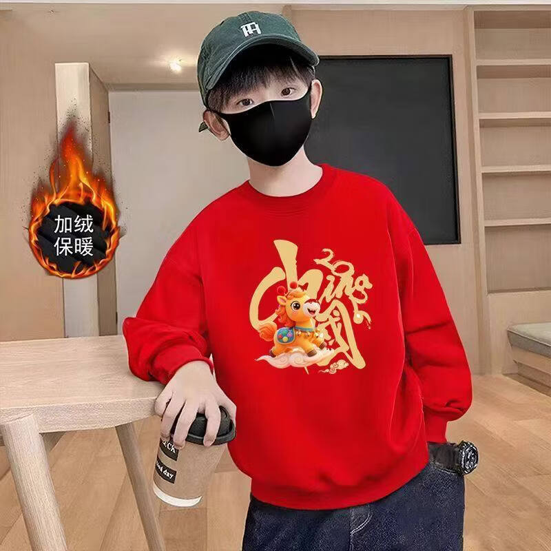 G.duck2026 Chinese Style New Year Children's Red Velvet Warm Sweater Zodiac Year Parent-Child Wear Winter Round Neck Top Red Yuanbao Brown Pony 175 L 110-130Jin Jin is equal to 0.5 kg