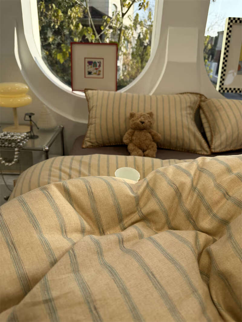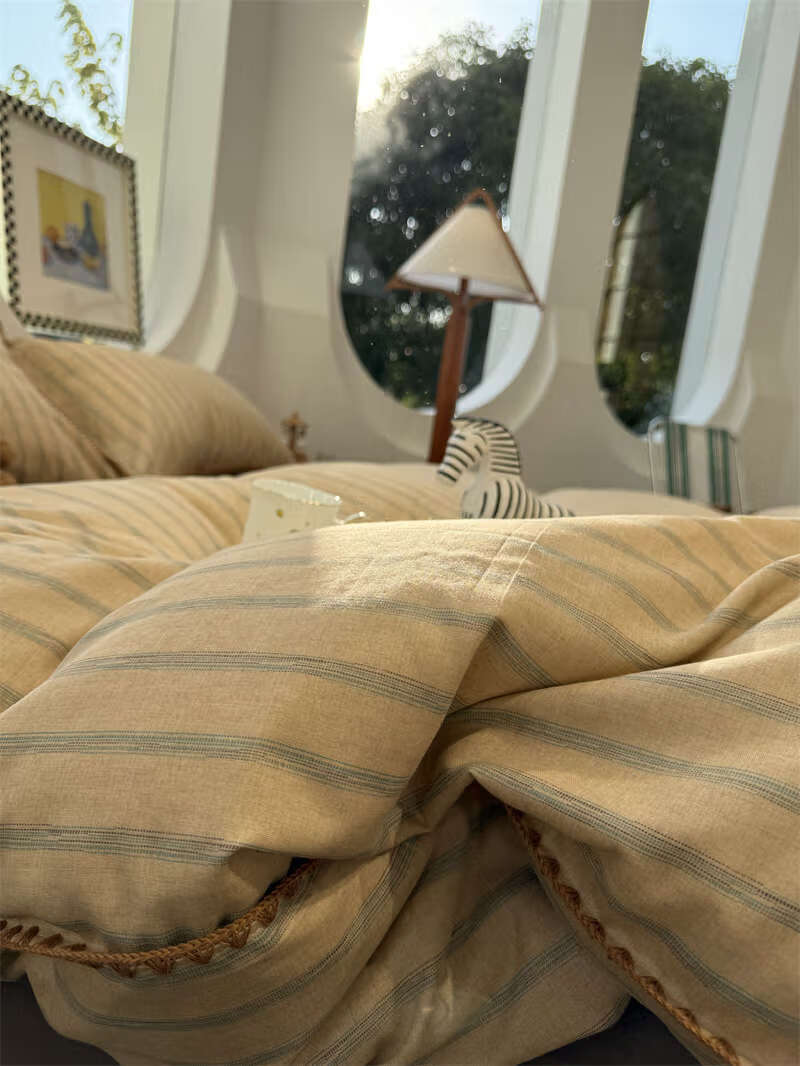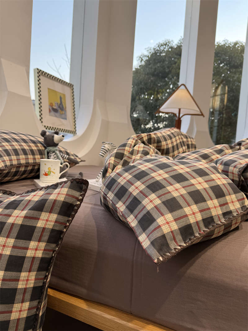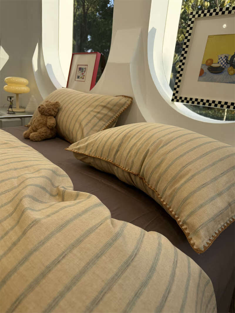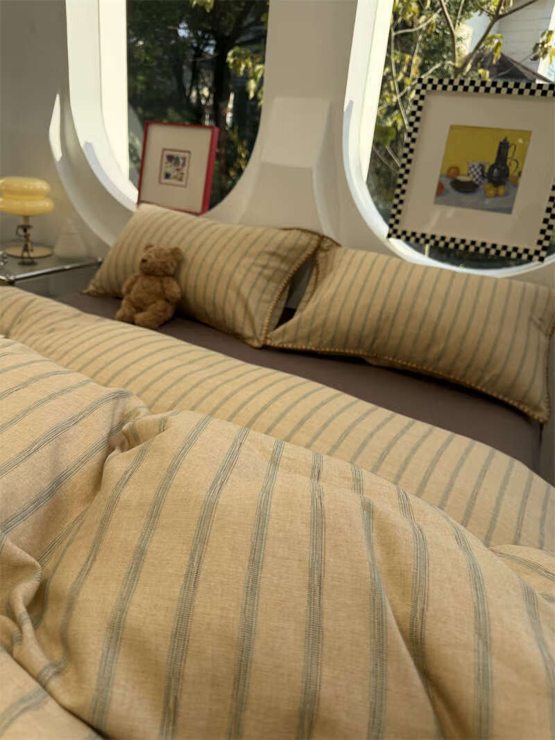 Yusenyi double-layer yarn elegant brown striped four-piece set 15m18m soft loose YAG double-layer yarn British gentleman bed sheet set bed sheet style 2.0m bed four-piece set/applicable 220x240cm