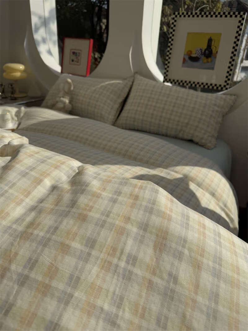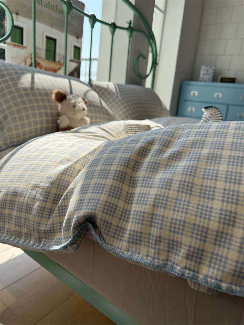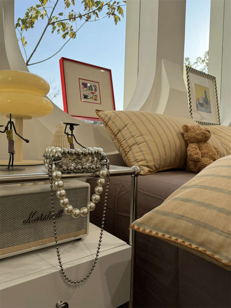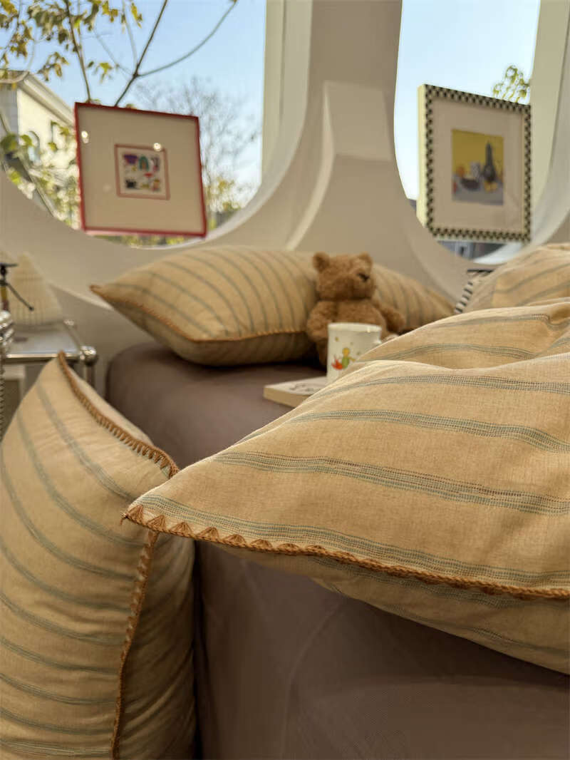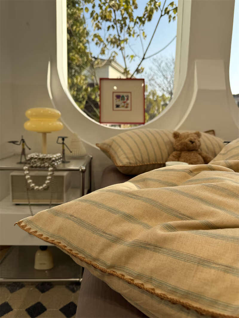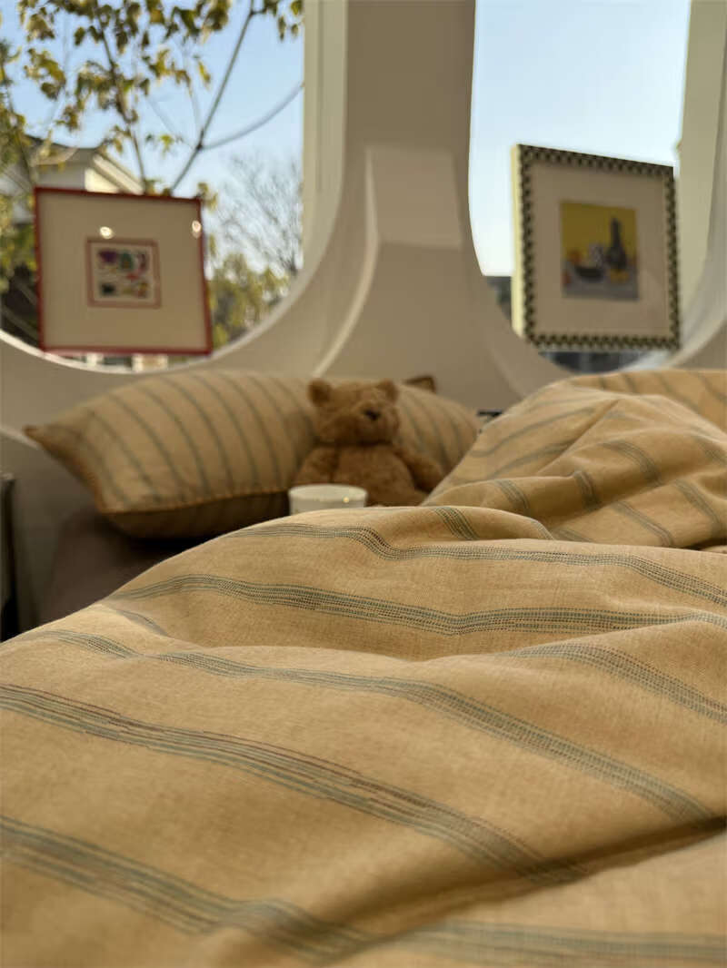 Yusenyi double-layer yarn elegant brown striped four-piece set 15m18m soft loose YAG double-layer yarn British gentleman bed sheet set bed sheet style 2.0m bed four-piece set/applicable 220x240cm