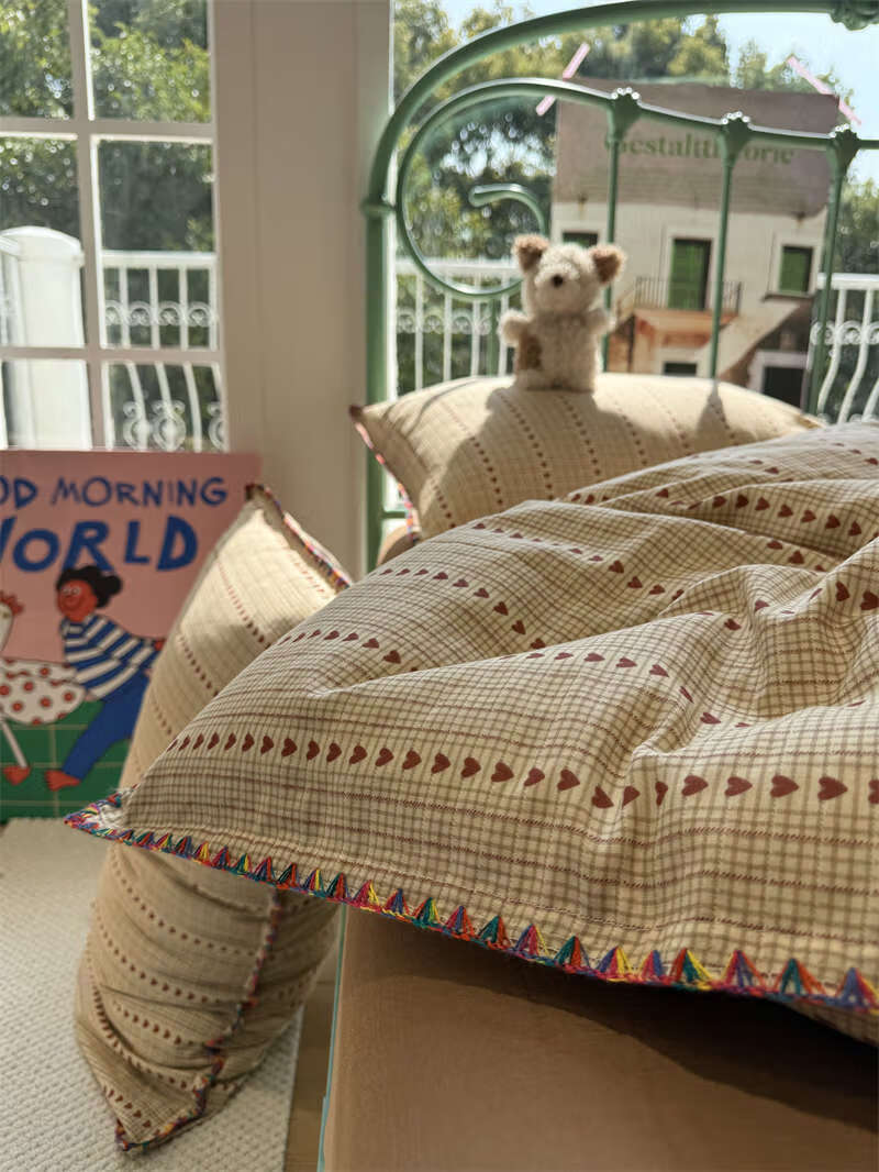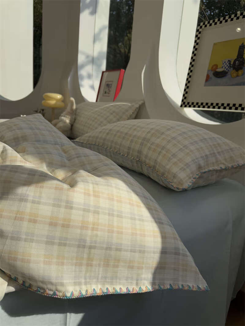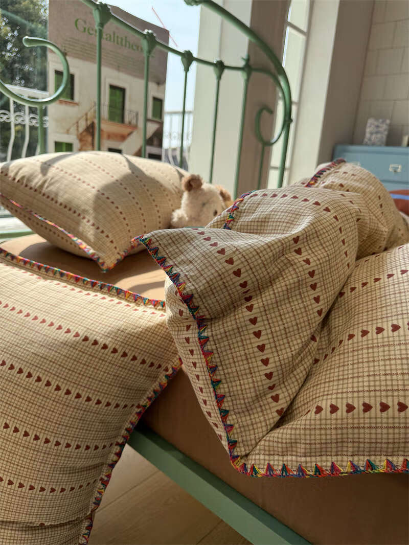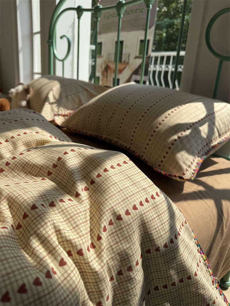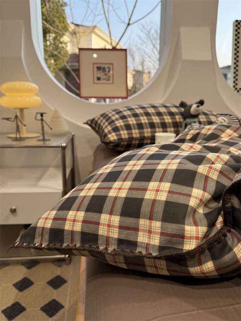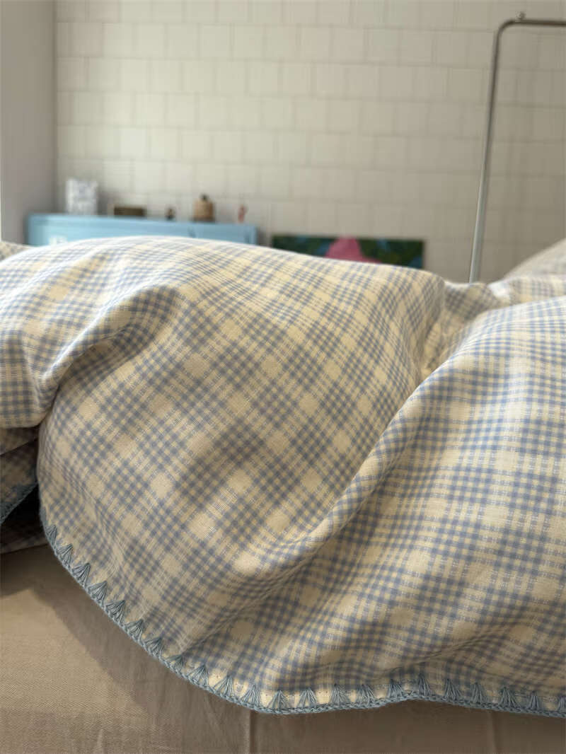 Yusenyi double-layer yarn elegant brown striped four-piece set 15m18m soft loose YAG double-layer yarn British gentleman bed sheet set bed sheet style 2.0m bed four-piece set/applicable 220x240cm