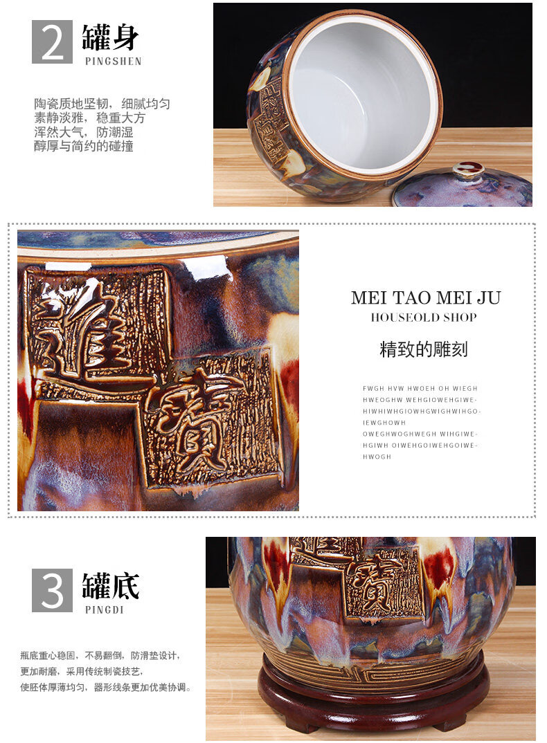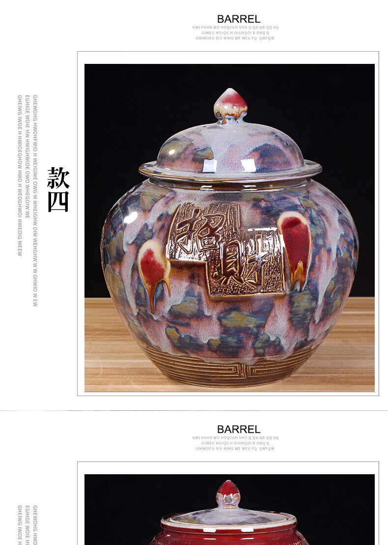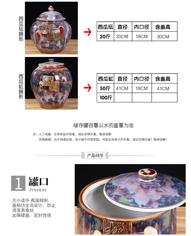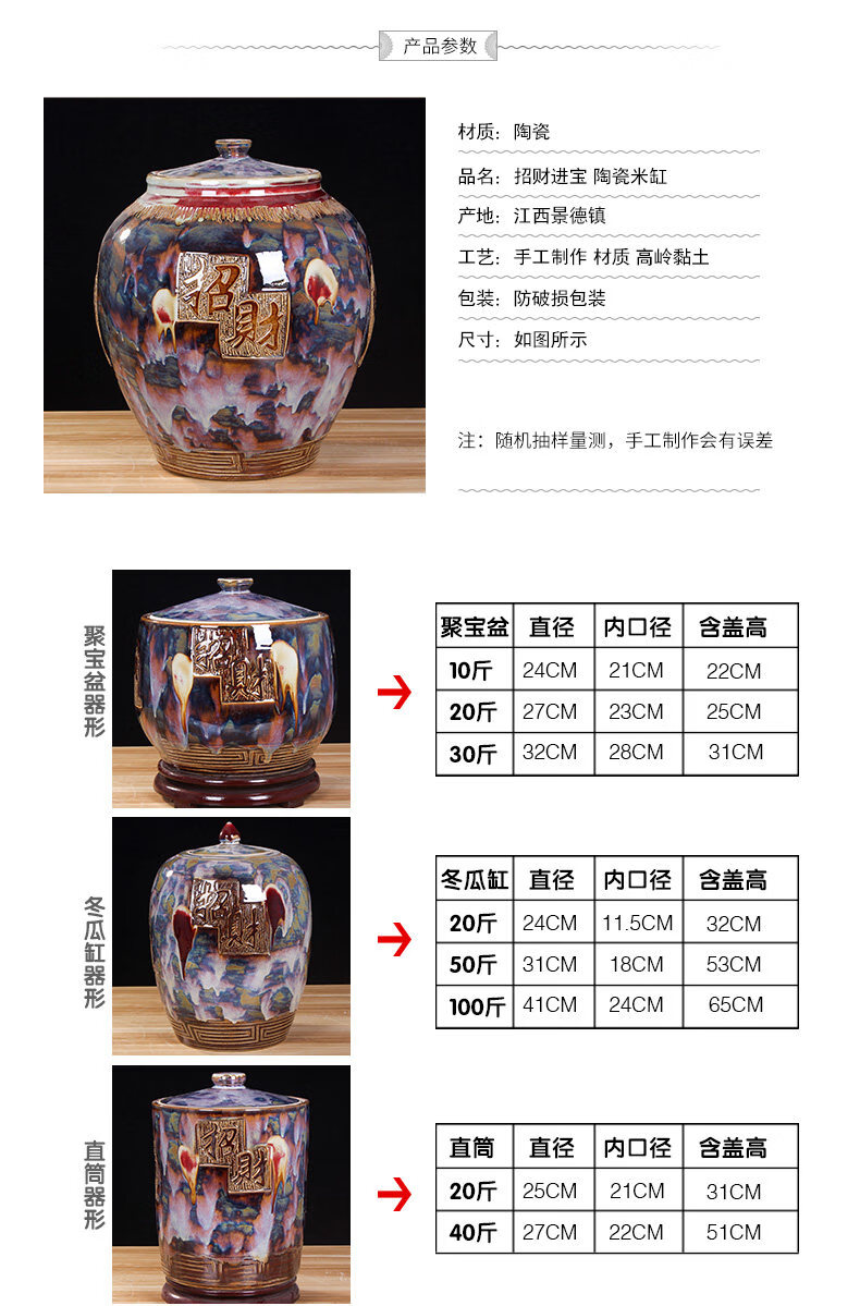 OUOETY Jingdezhen installed rice barrel rice cylinder ceramic cylinder with cover for household use 20 Jin Jin is equal to 0.5 kg 30 Jin Jin is equal to 0.5 kg 50 Jin Jin is equal to 0.5 kg Large water tank moisture-proof oil cylinder Type 1 cornucopia to attract wealth and treasure 20 Jin Jin is equal to 0.5 kg One side brings wealth and one side brings treasure