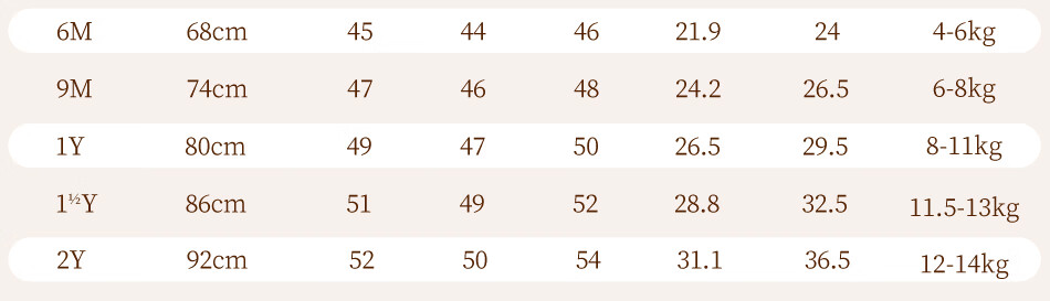 Size (cm) 42 44 46 48 50
