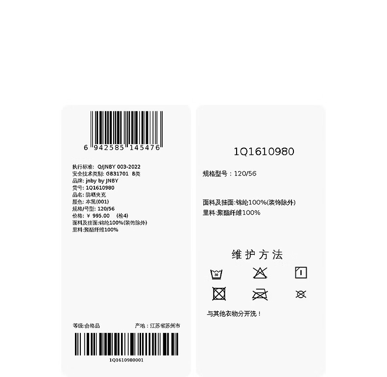 Jnby by JNBY Sports Series New Jiangnan Buyi Children's Sports Jacket O Type 26 Spring Boys and Girls 1Q1610980 001/Black 140 cm