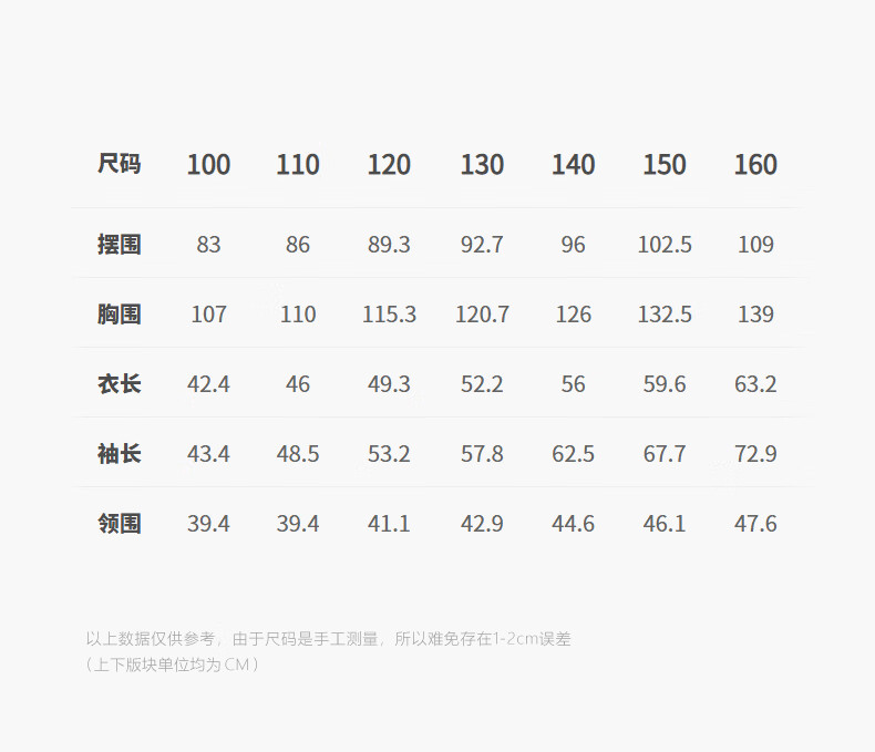 Size (cm) 42 44 46 48 50