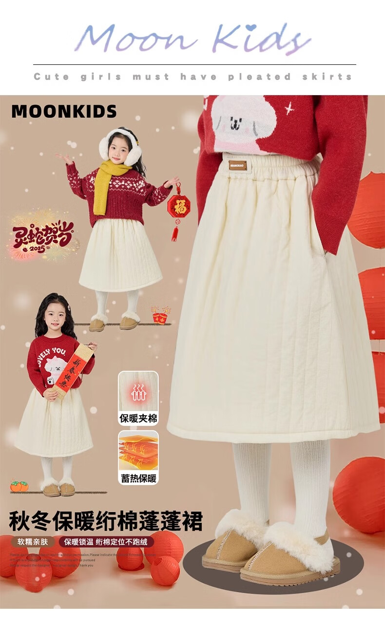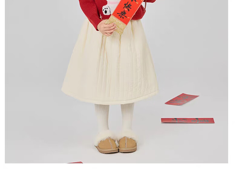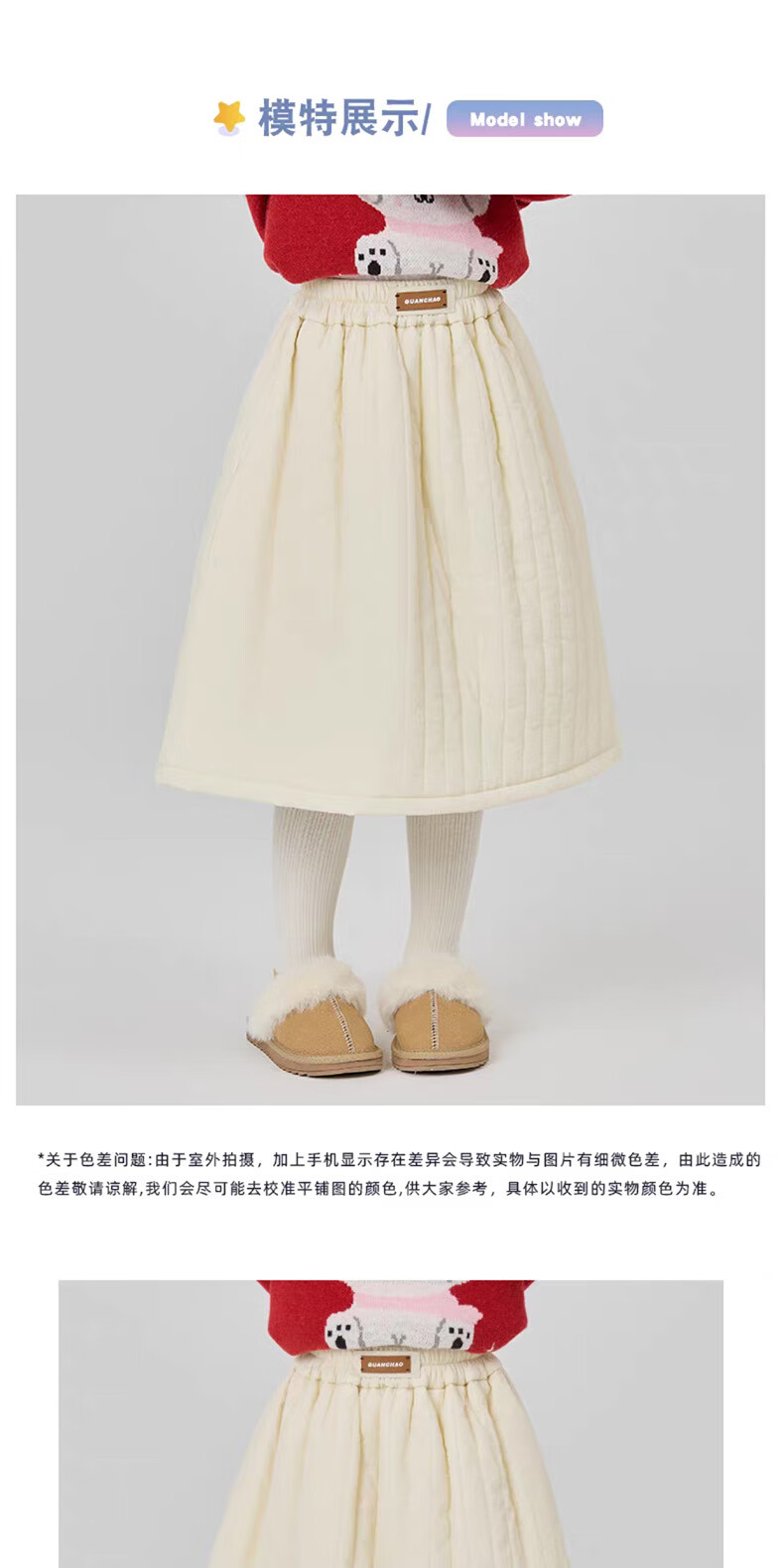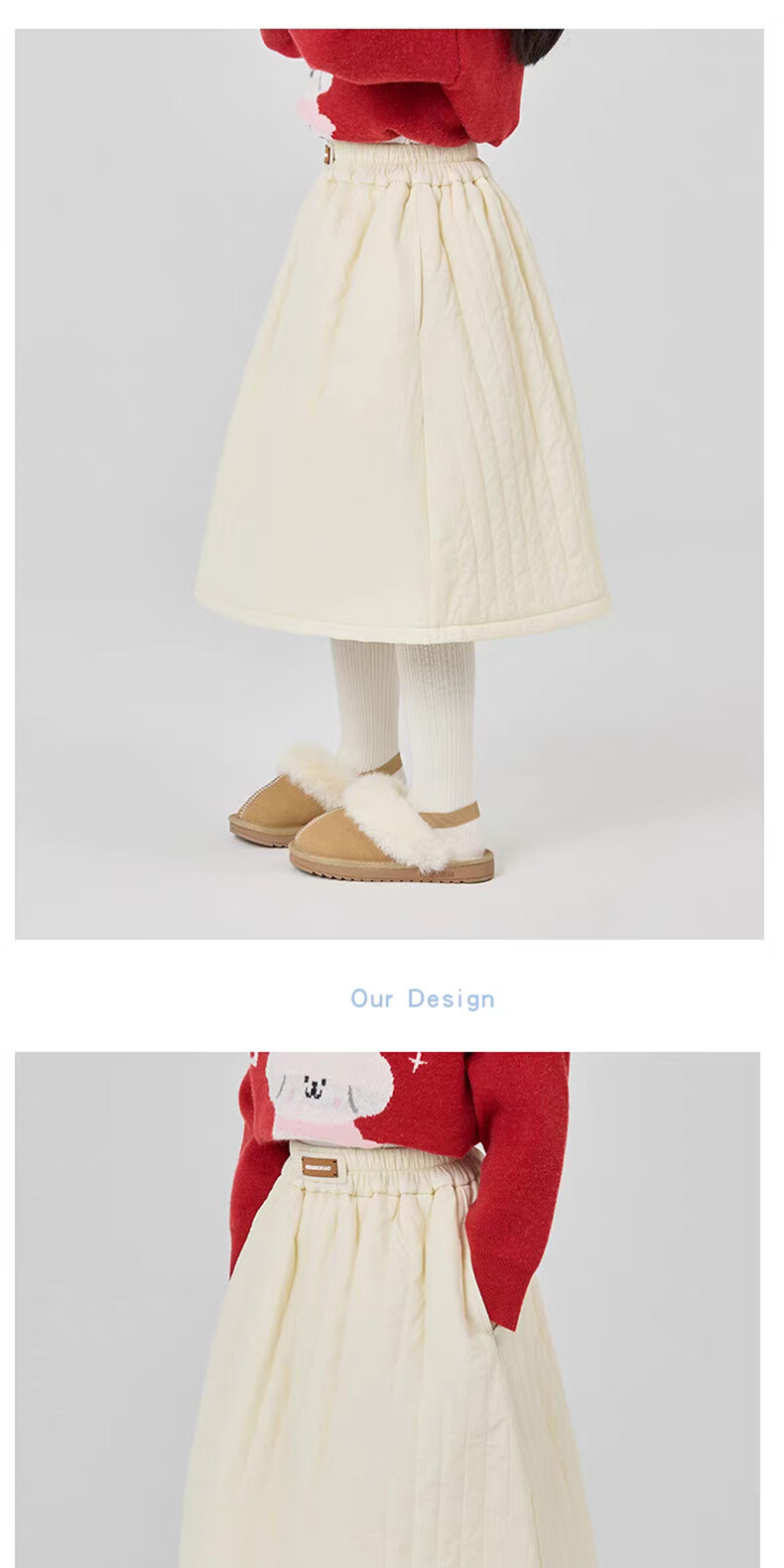 Moonkids girls' skirt quilted skirt 2025 New Year's wear autumn and winter thickened children's long skirt little girl fashionable winter wear two pieces 4557 beige + 4532 khaki 120 cm