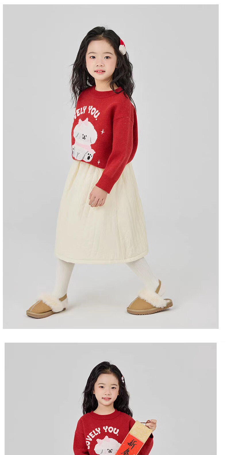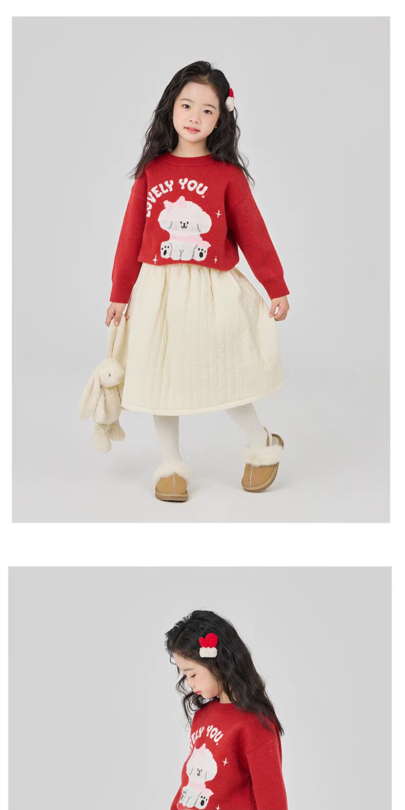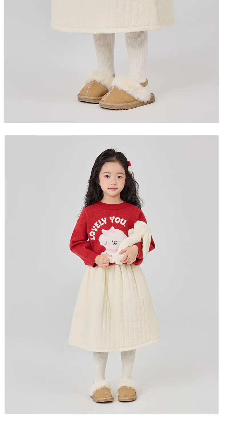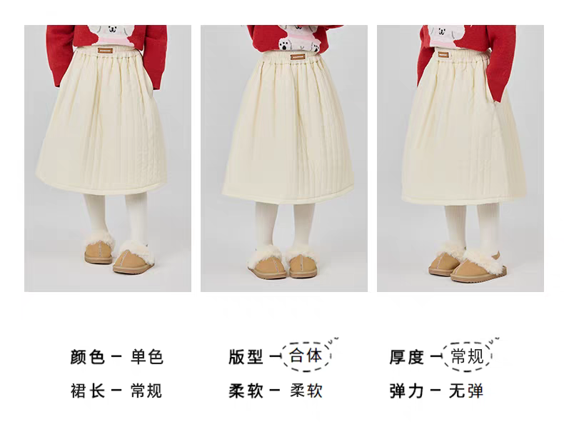 Moonkids girls' skirt quilted skirt 2025 New Year's wear autumn and winter thickened children's long skirt little girl fashionable winter wear two pieces 4557 beige + 4532 khaki 120 cm