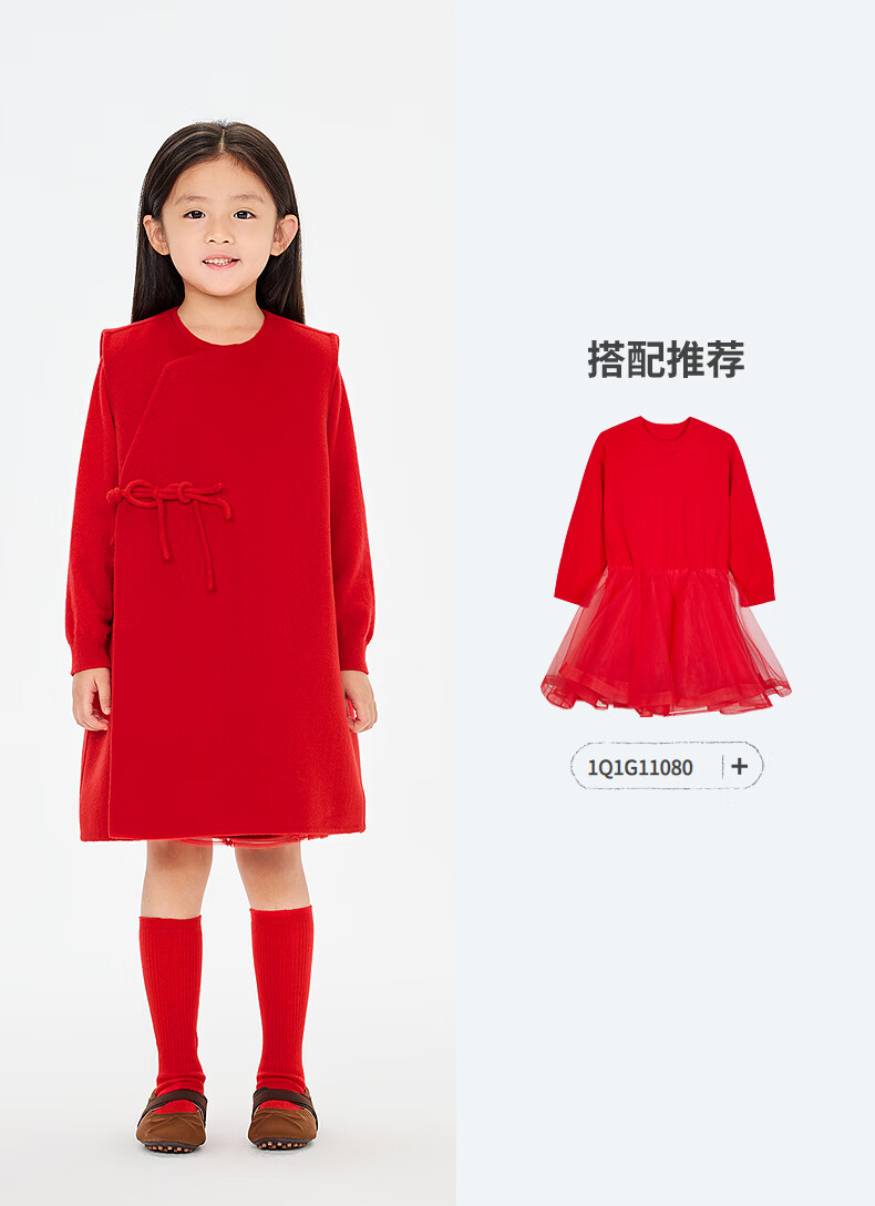 Jnby by JNBY new Jiangnan cloth children's wear sleeveless dress velvet A-type loose collarless 26 spring girls 1Q1G13110 622/true red 110 cm