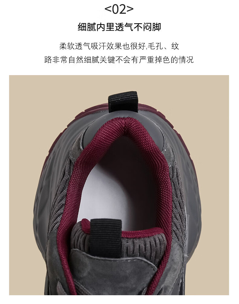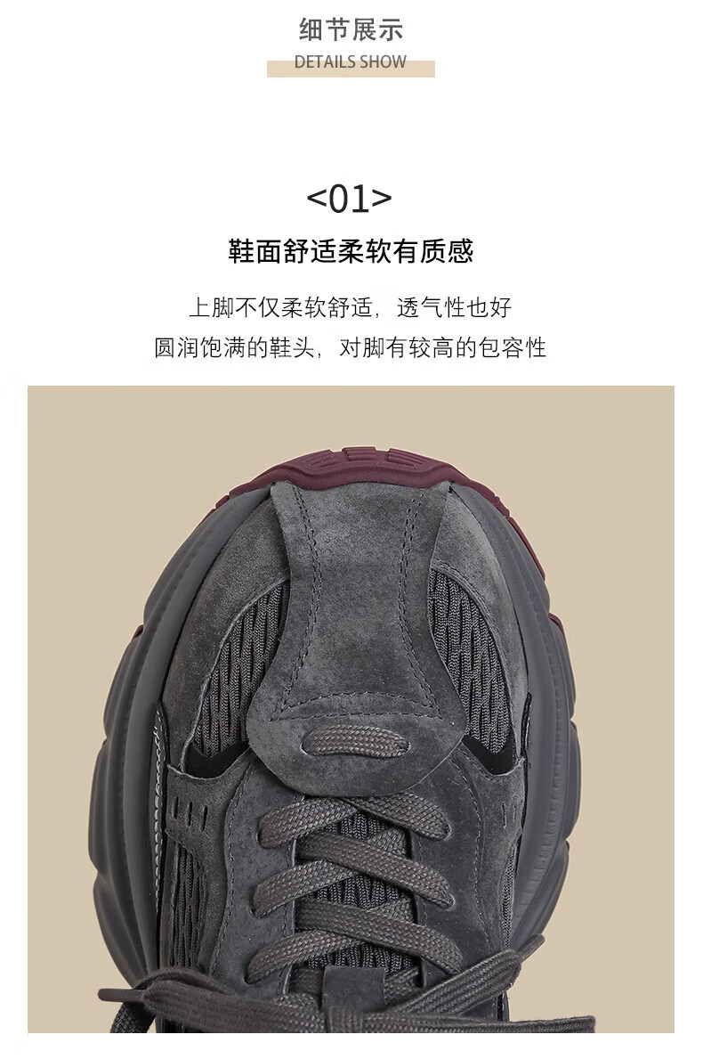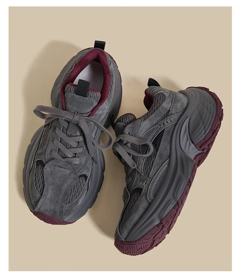 OLJ luxury high-end brand women's shoes thick-soled dad shoes 2026 new casual commuting color matching retro fashion sneakers gray red single lining 39