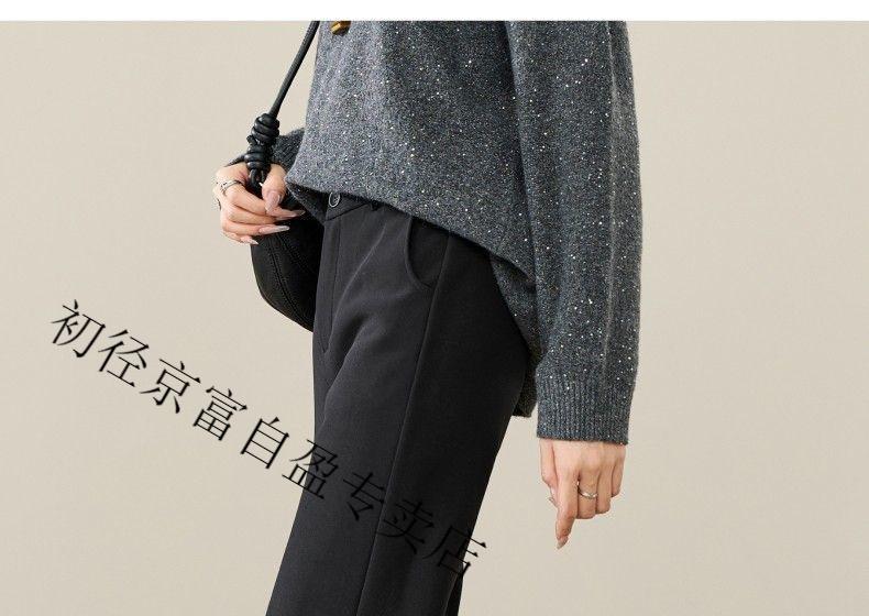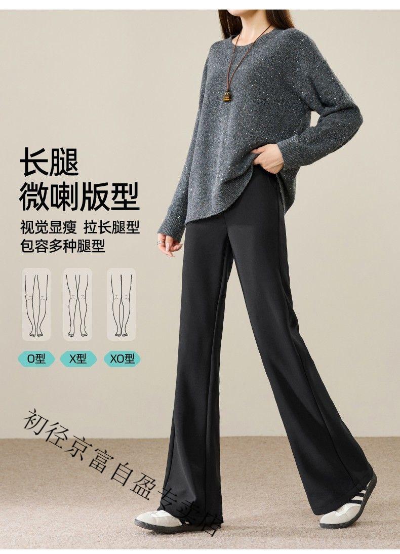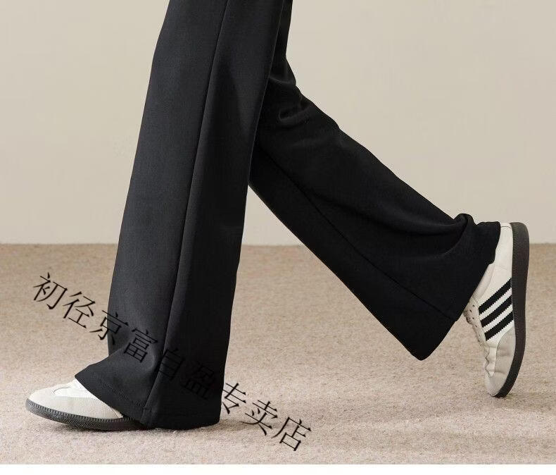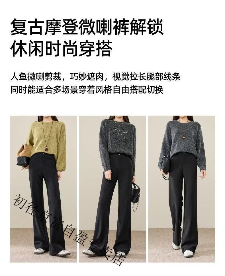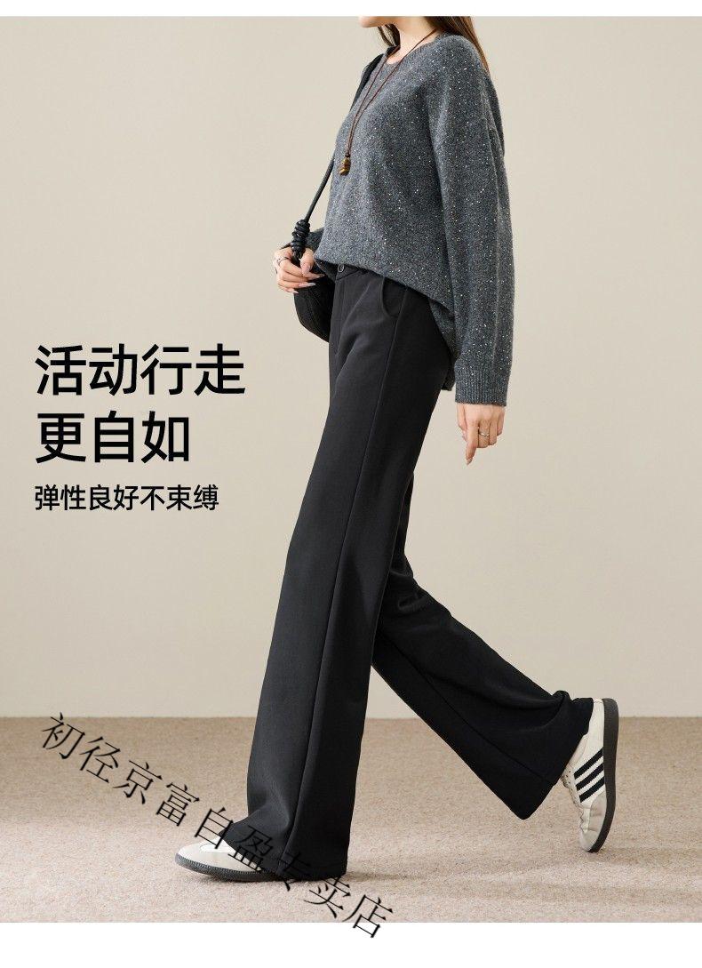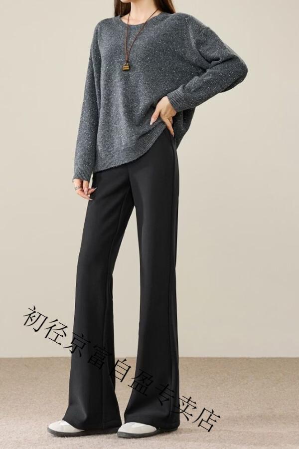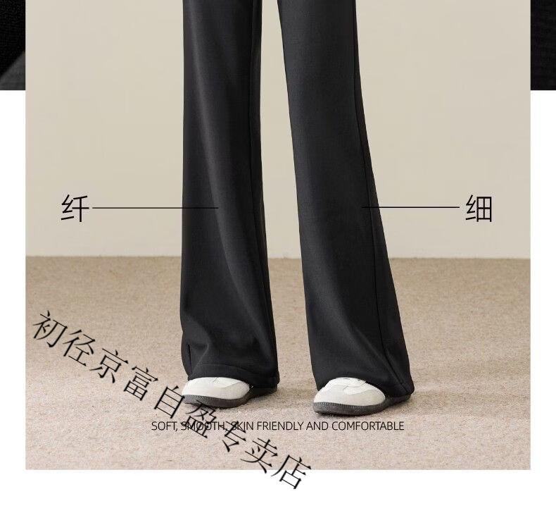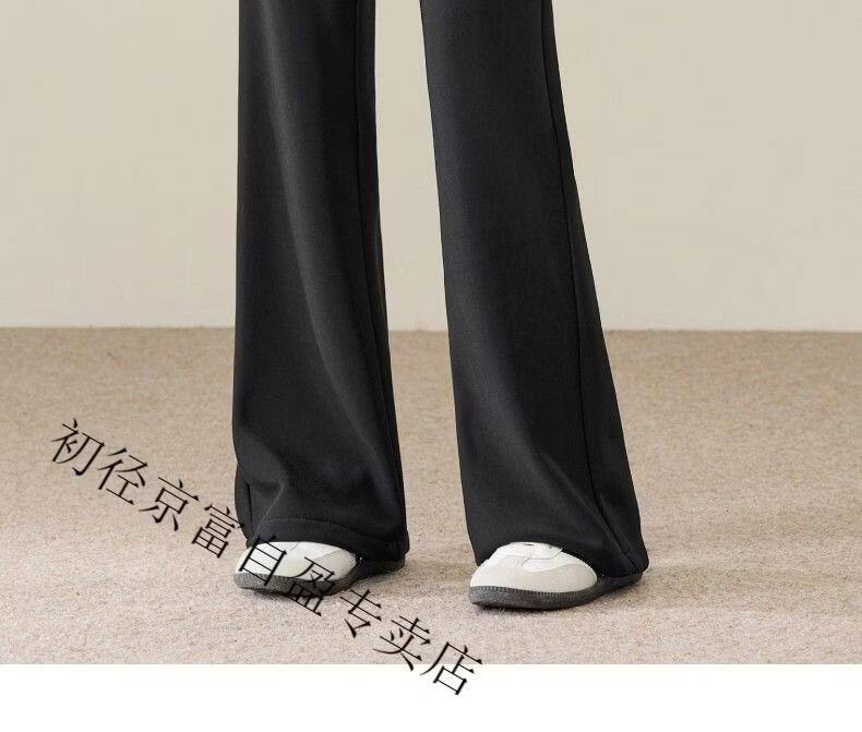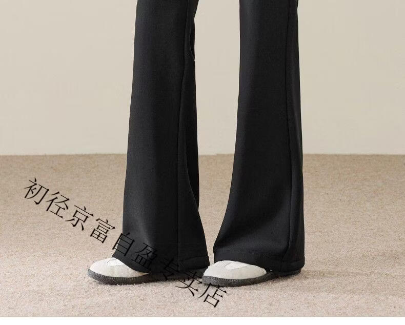 Early diameter winter velvet trousers, black bootcut trousers with splicing and slits, new slimming stretch casual, high waist and drape for small people, black plus velvet - nine-point small person XL 29/recommended 115 Jin Jin equals 0.5 kg -125 Jin Jin equals 0.5 kg
