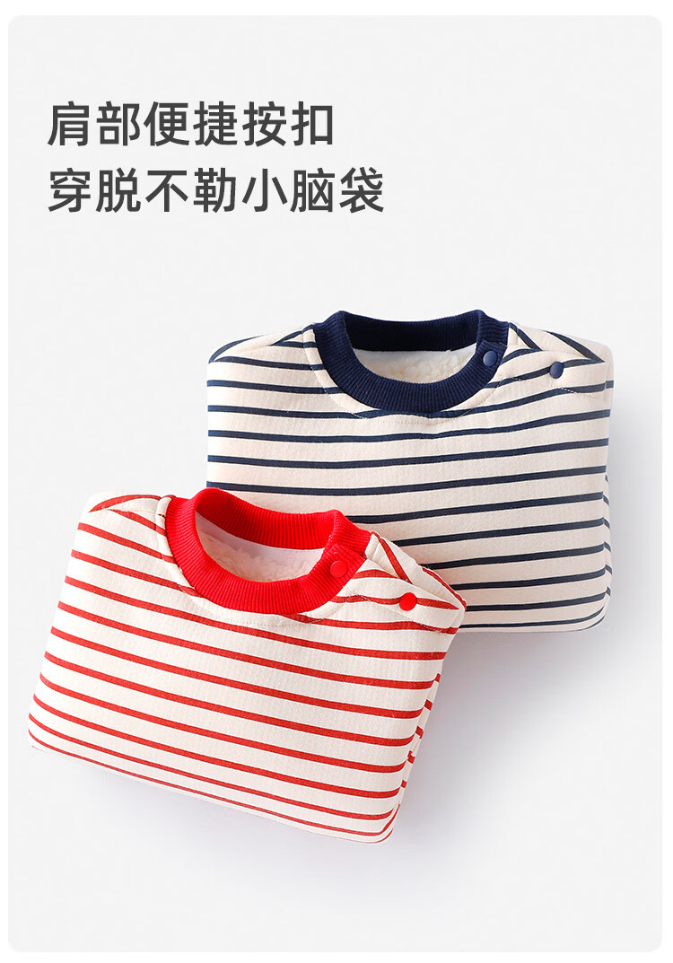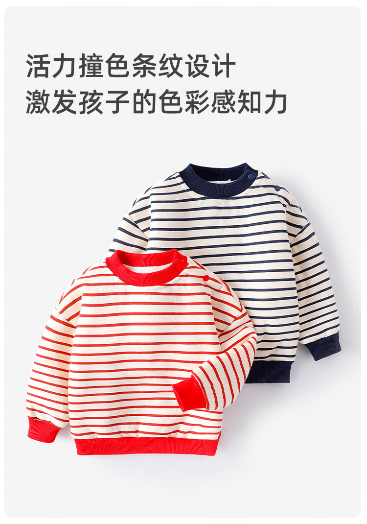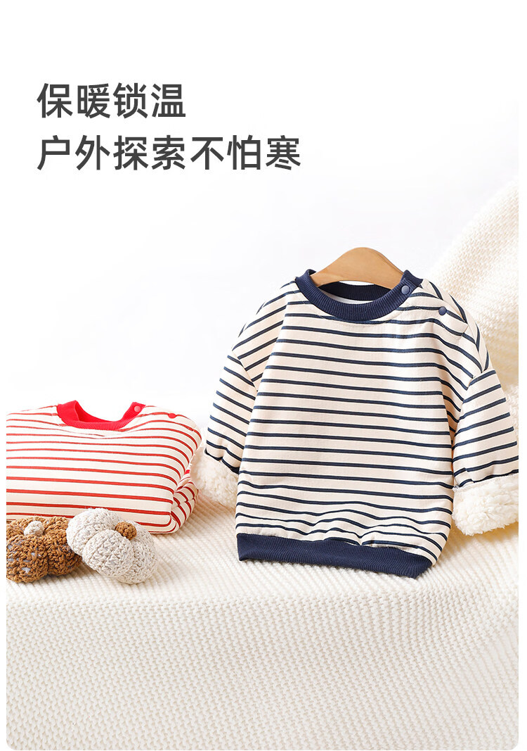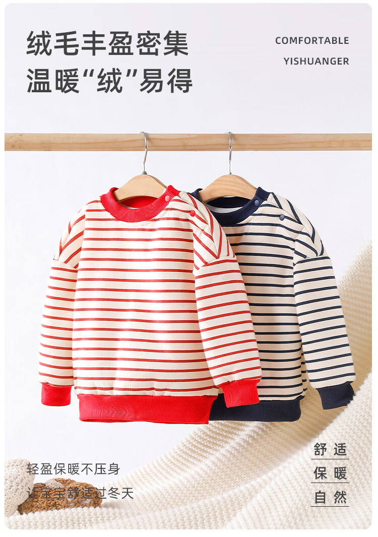 Yishuanger boys sweatshirt plus velvet children's style autumn and winter girls' thickened warm winter tops red strip 90