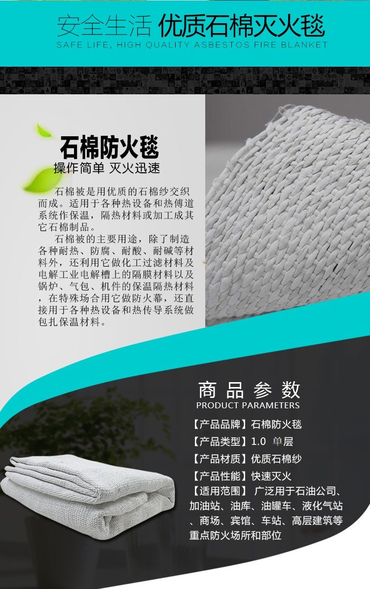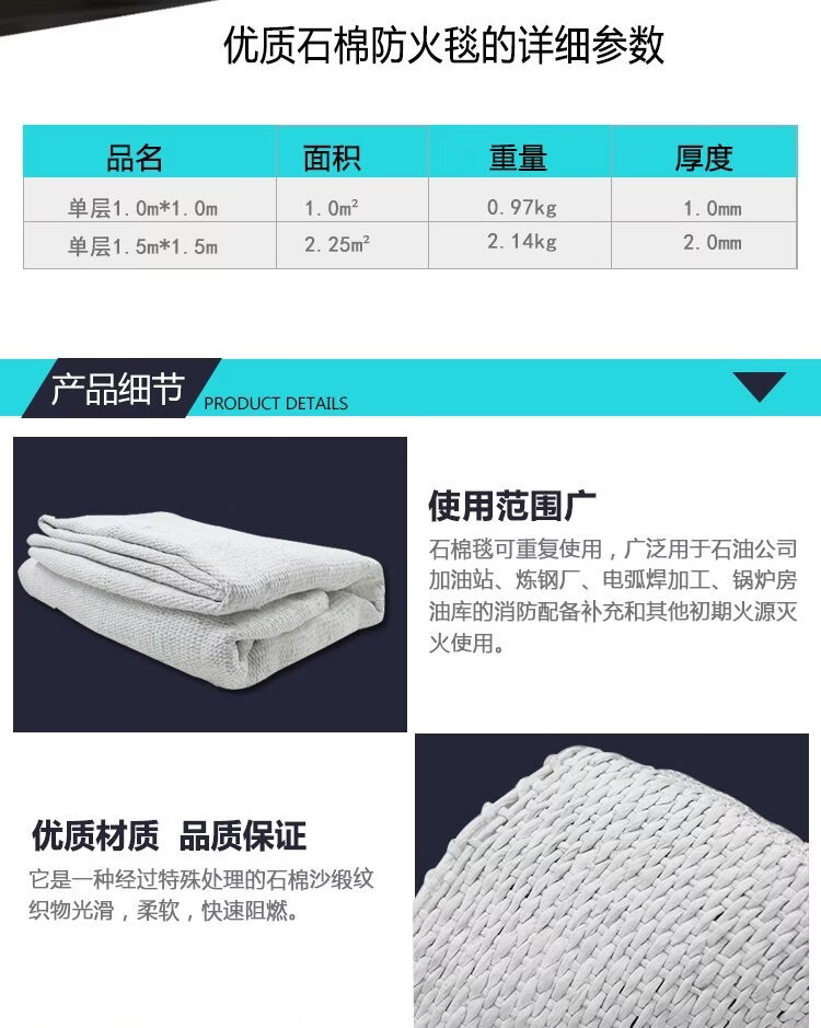 Asbestos quilt fire-extinguishing blanket 1 meter 1.5 meters thickened fire-fighting certification gas station flame retardant special national standard industrial fire blanket fiber blanket 2 meters * 2 meters national standard model