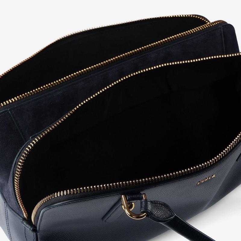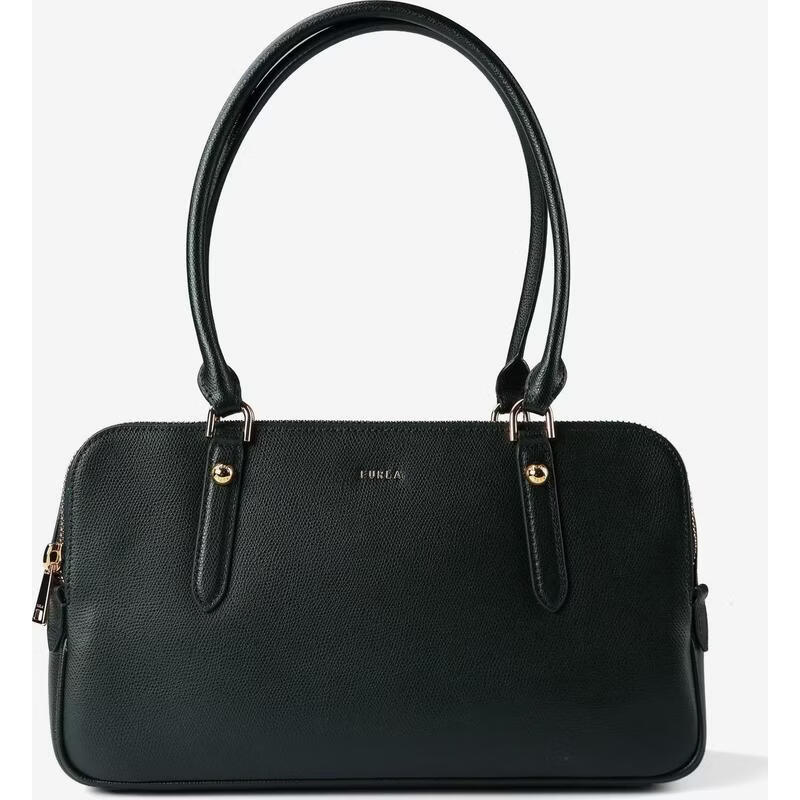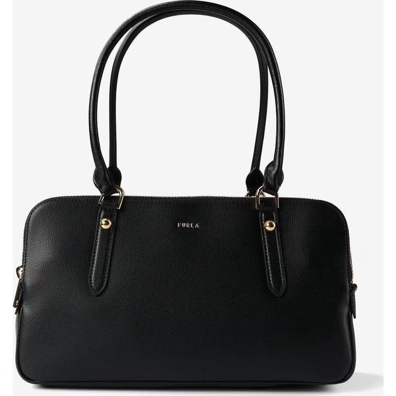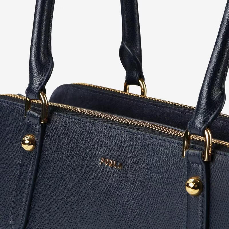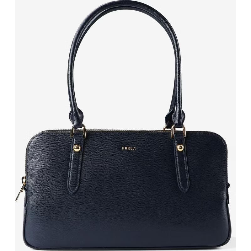 FURLA women's shoulder bag large capacity main compartment metal fastener wear-resistant dark blue leather short handle brown ONE SIZE
