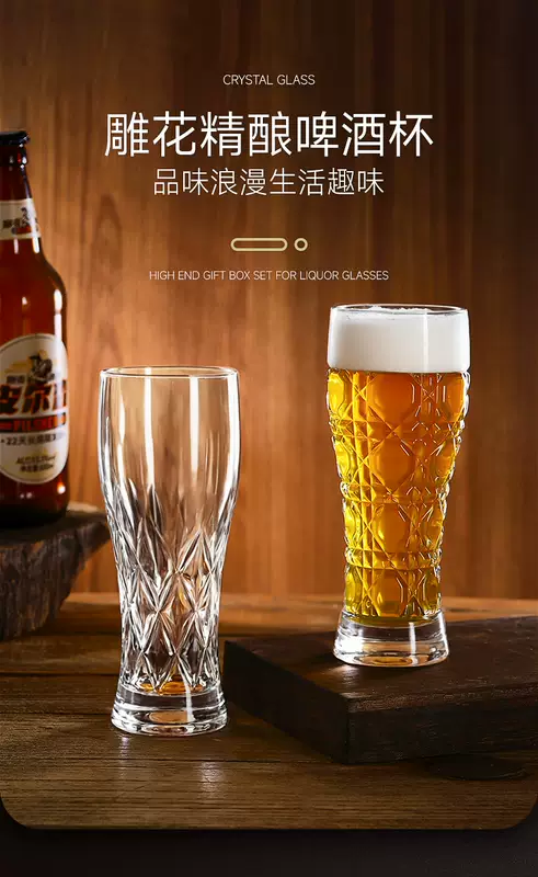 Yusenyi creative carved glass beer cup, juice cup, high-looking carved craft beer cup, draft beer cup, household high-end drinking cup, sword pattern beer cup 352ml (1 piece)