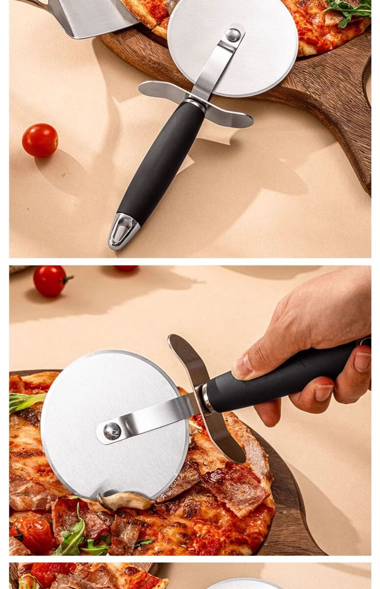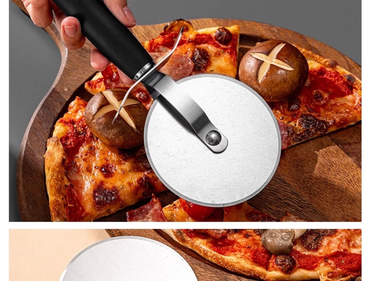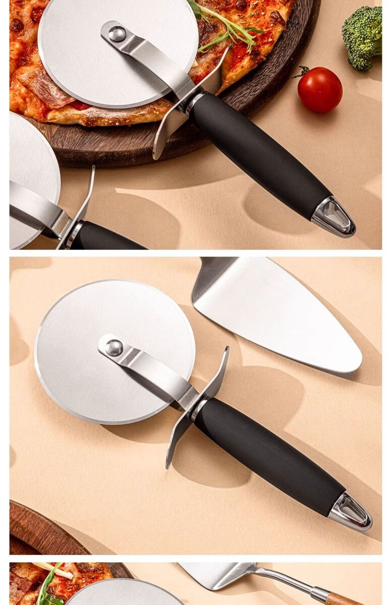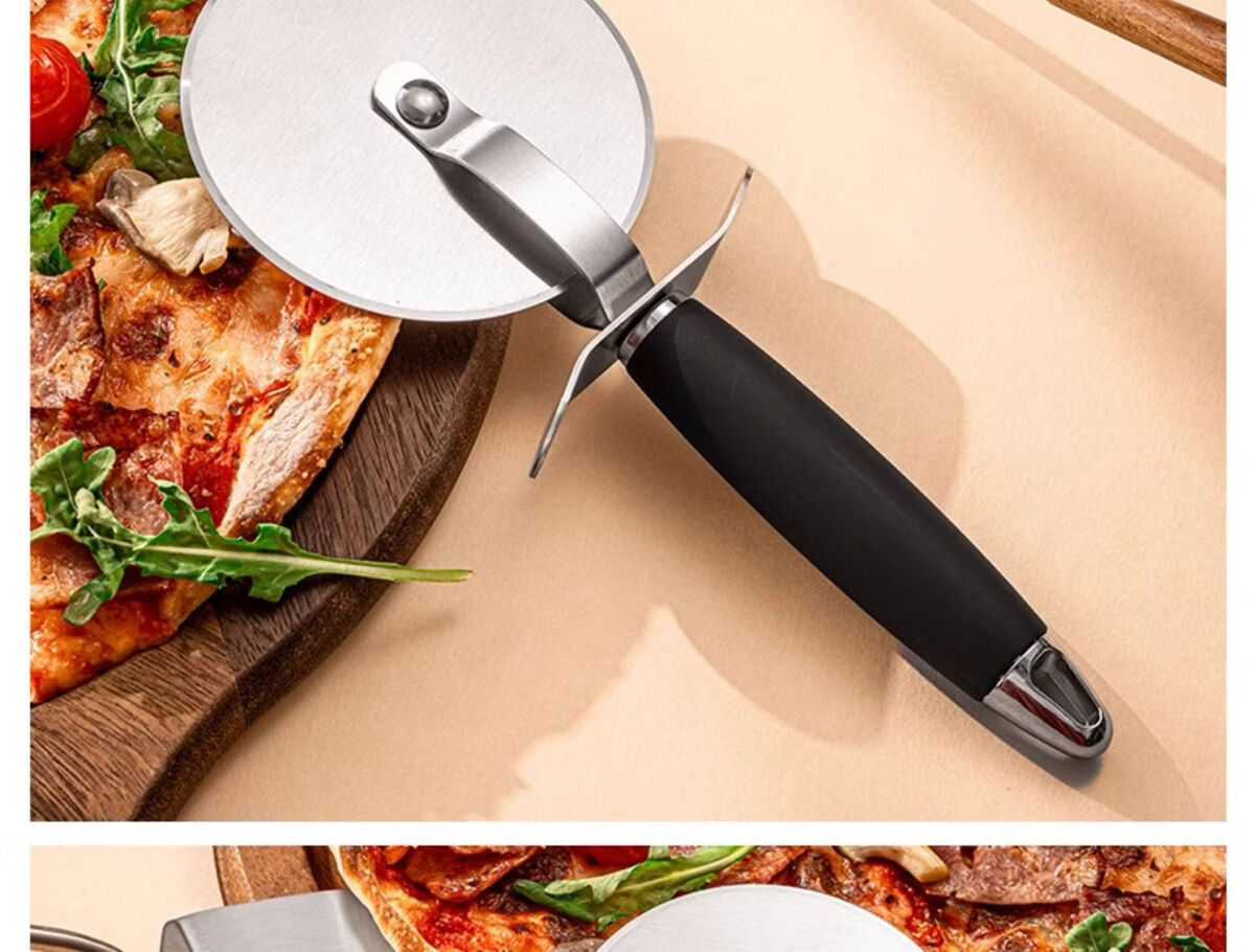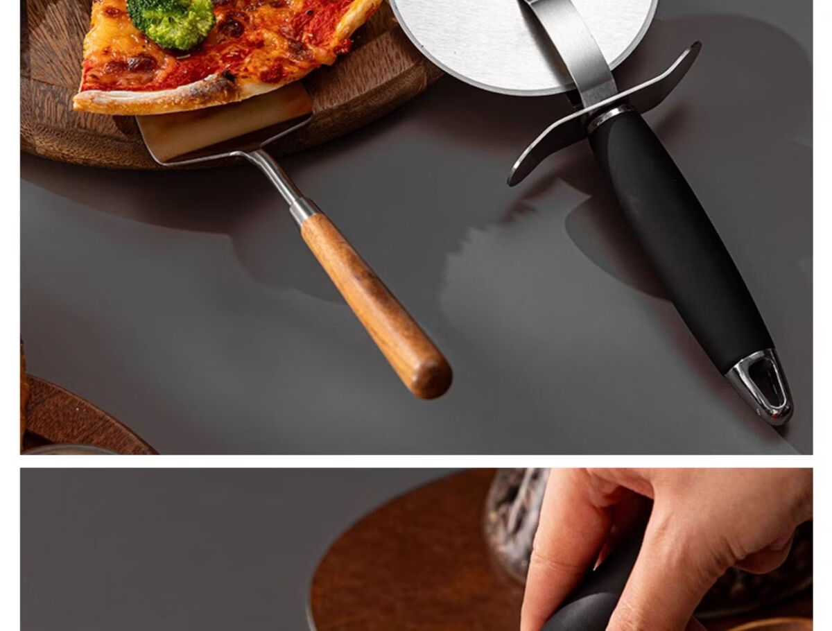Fantasy British pizza knife roller tool pizza hob baking cutter noodle shovel stainless steel commercial medium pizza roller knife wooden handle