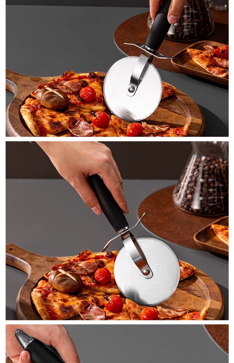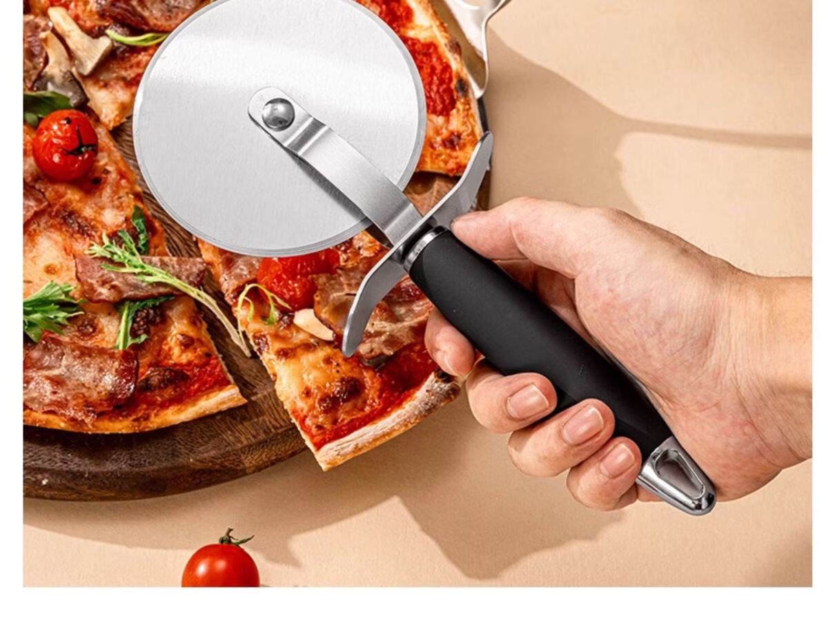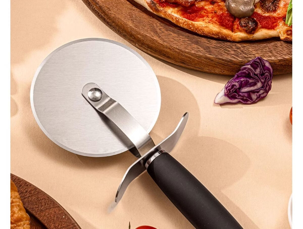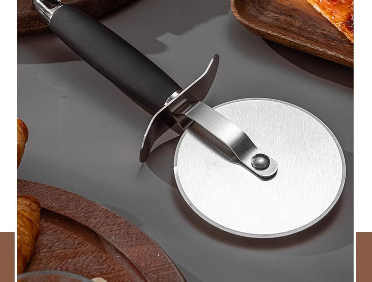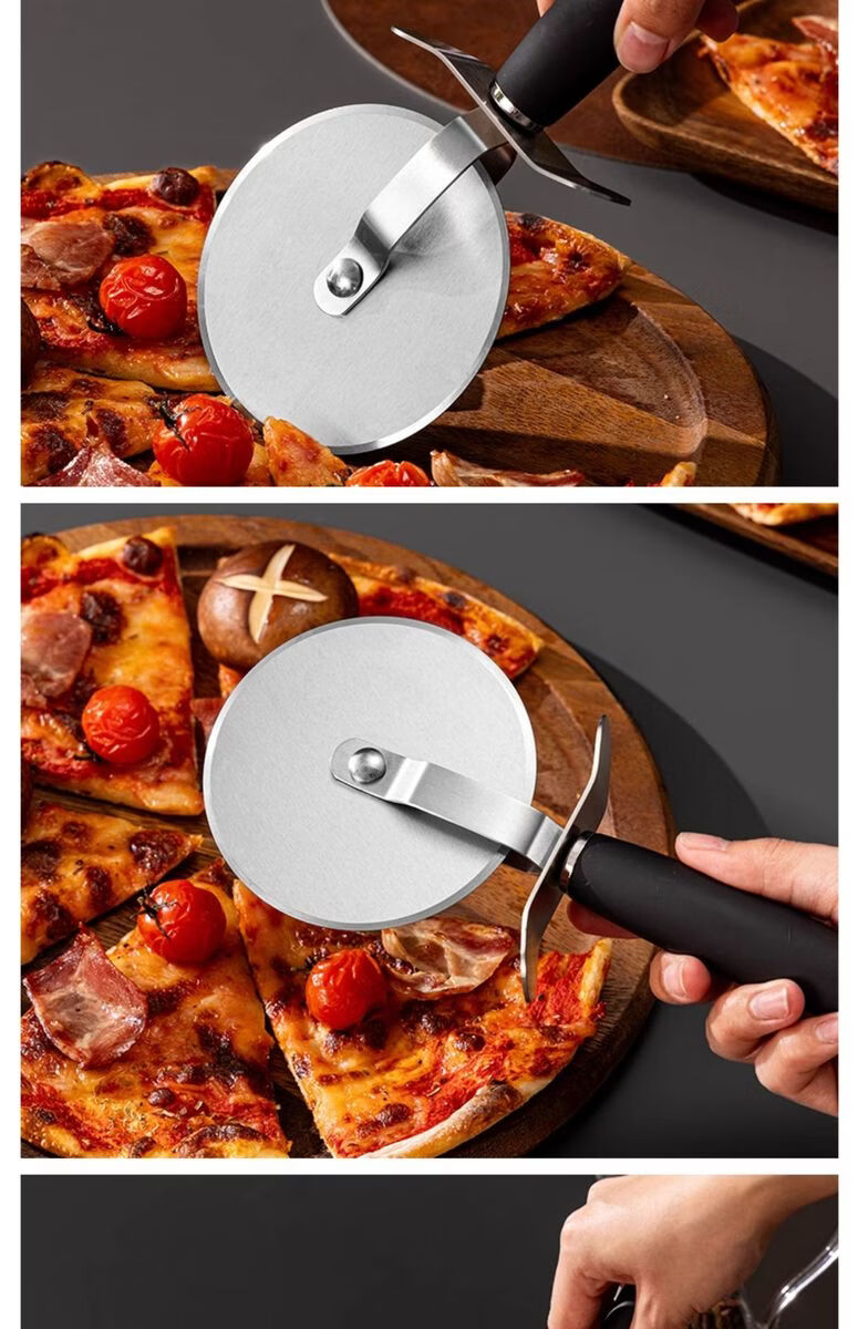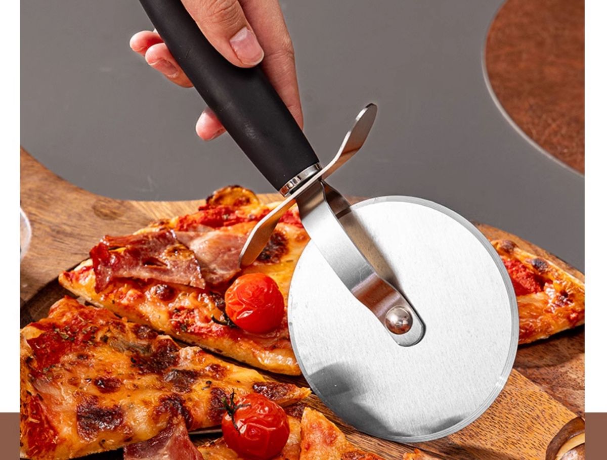 Fantasy British pizza knife roller tool pizza hob baking cutter noodle shovel stainless steel commercial medium pizza roller knife wooden handle