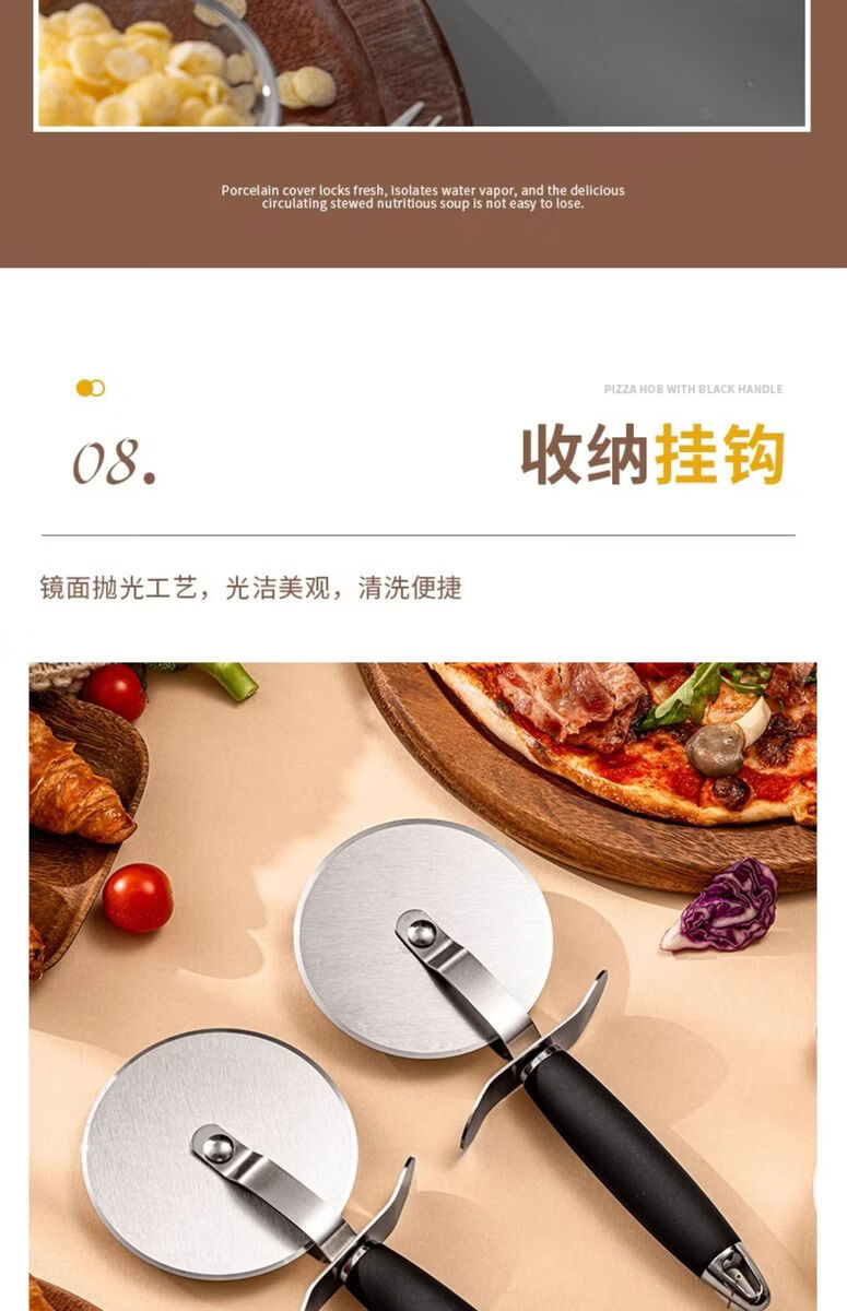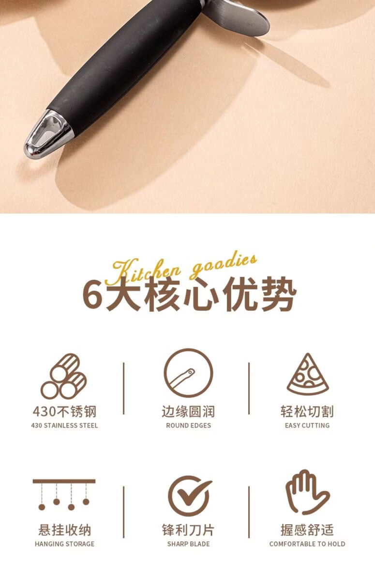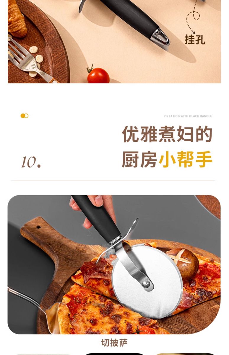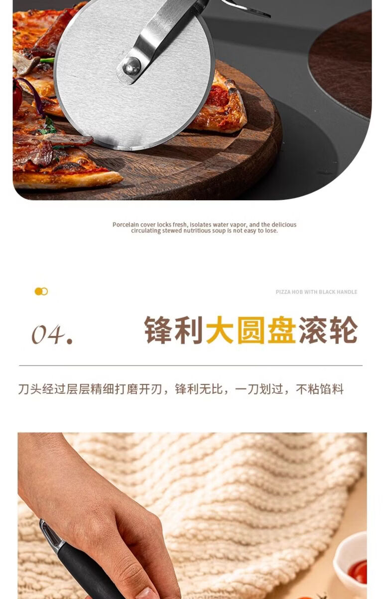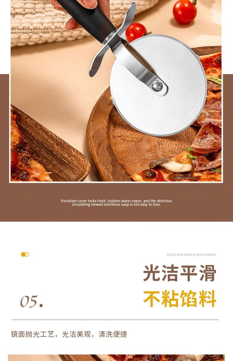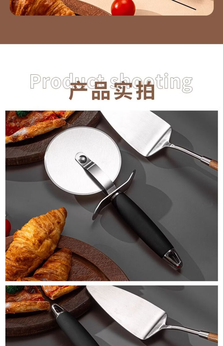 Fantasy British pizza knife roller tool pizza hob baking cutter noodle shovel stainless steel commercial medium pizza roller knife wooden handle