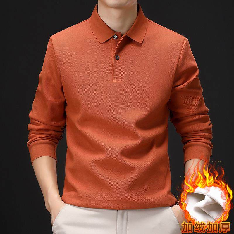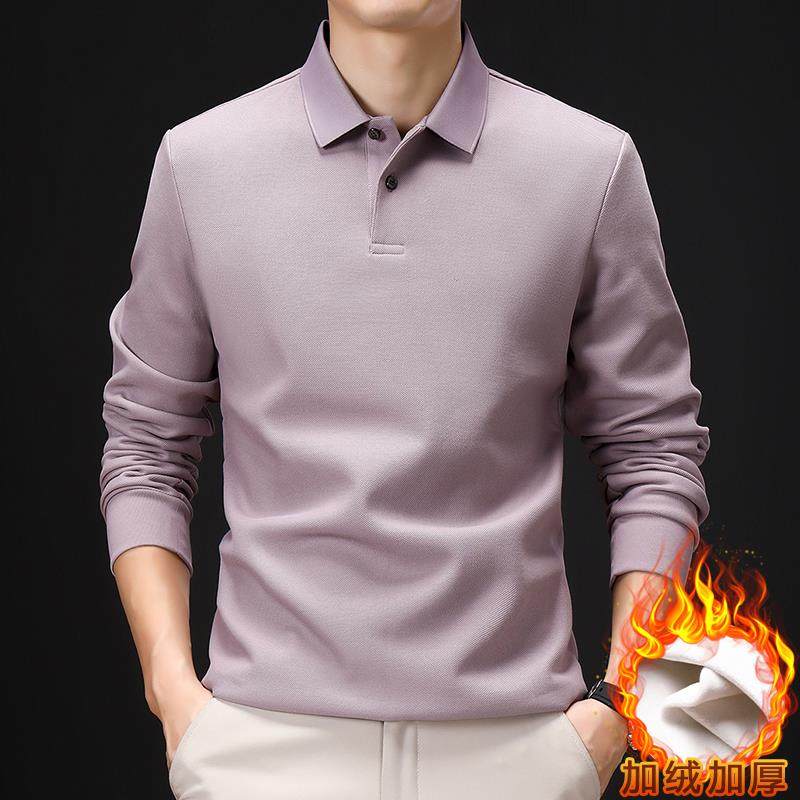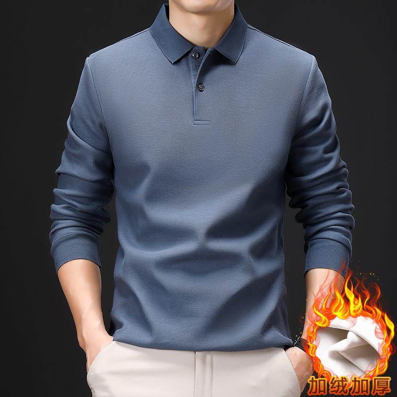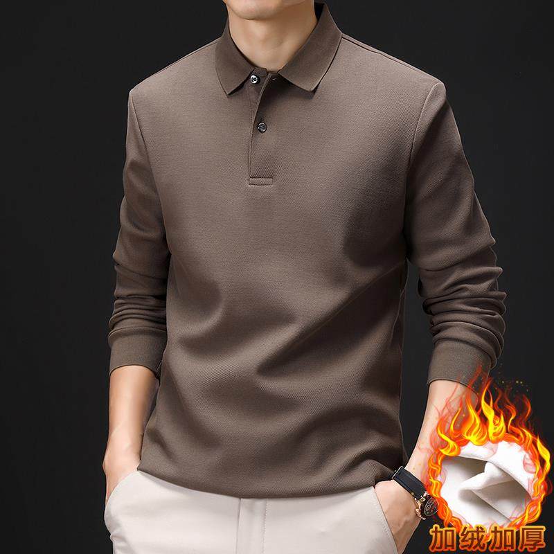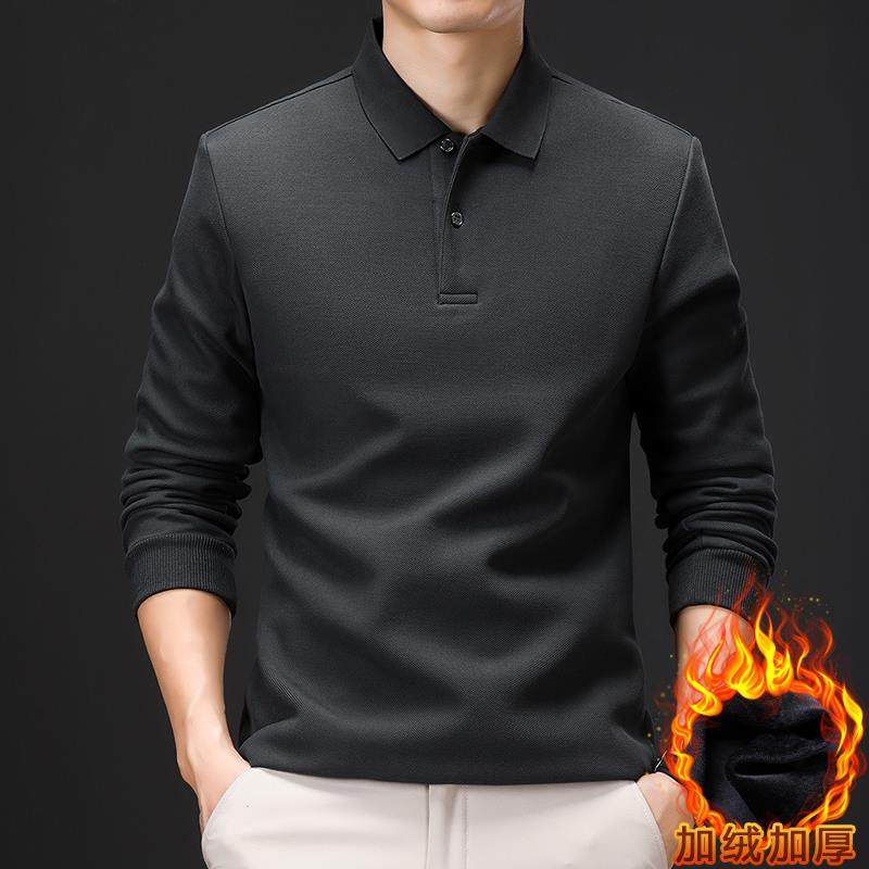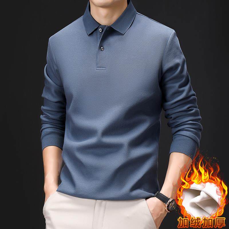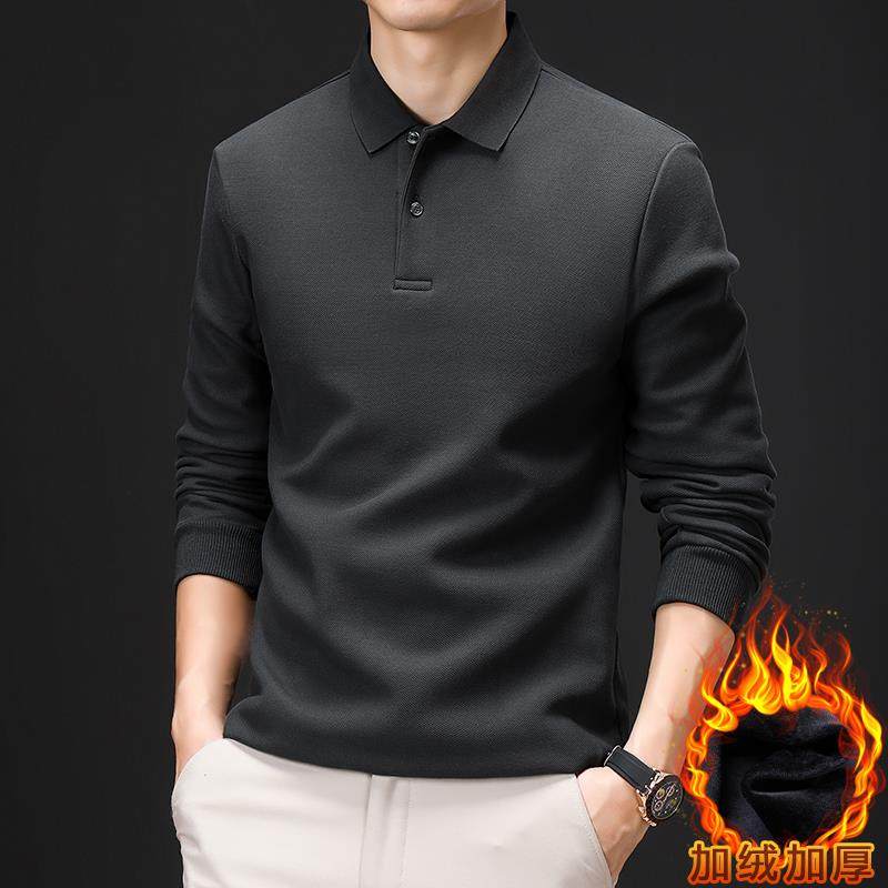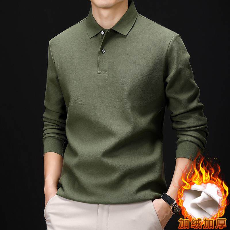 ROMON pure cotton winter men's long-sleeved T-shirt velvet thickened bottoming shirt lapel POLO. shirt thermal underwear green 4XL 190/ suitable for 185-200Jin Jin equals 0.5 kg