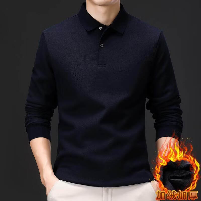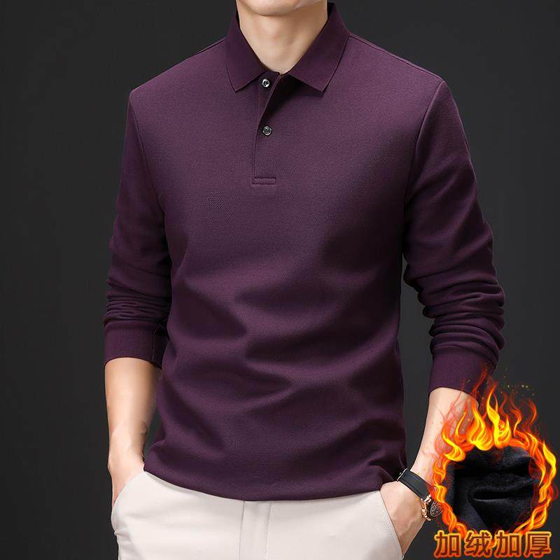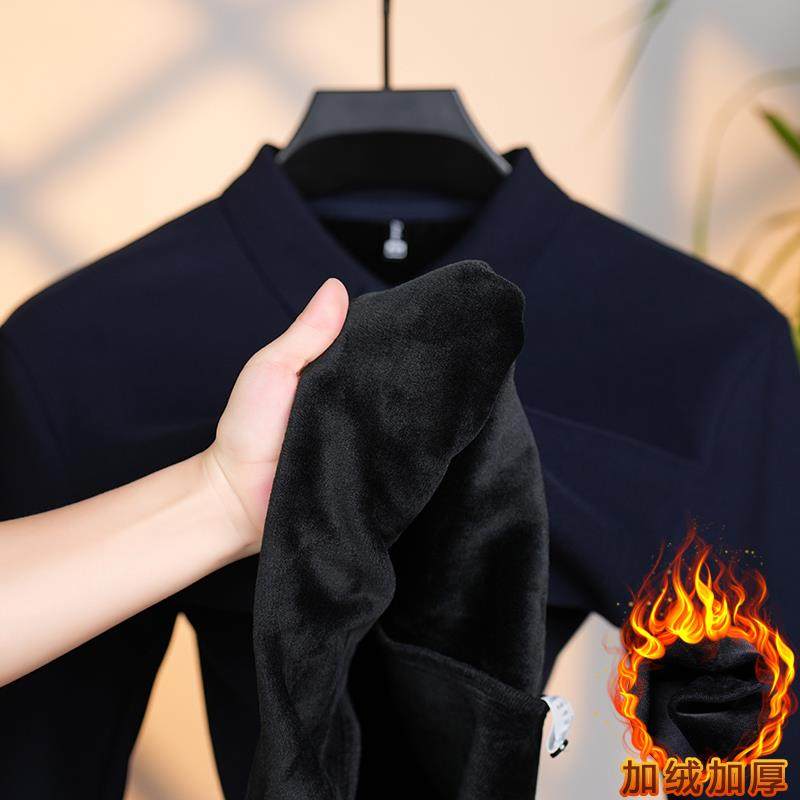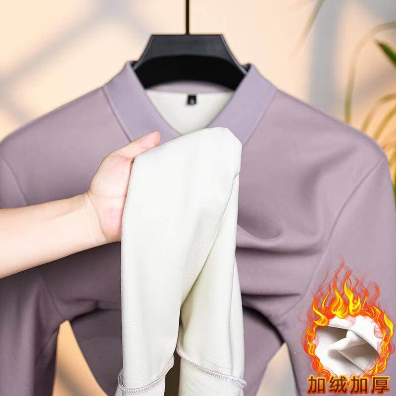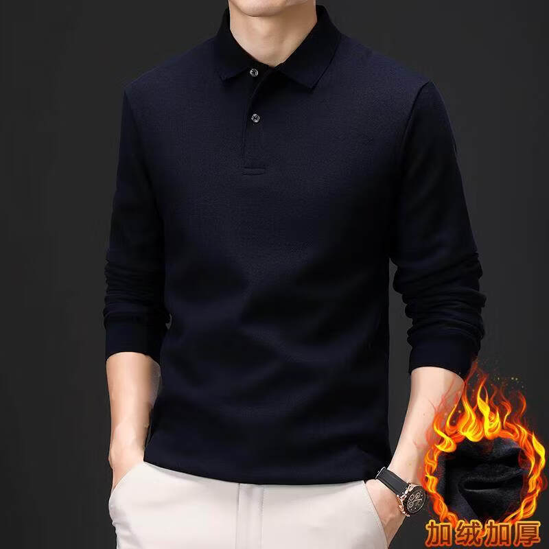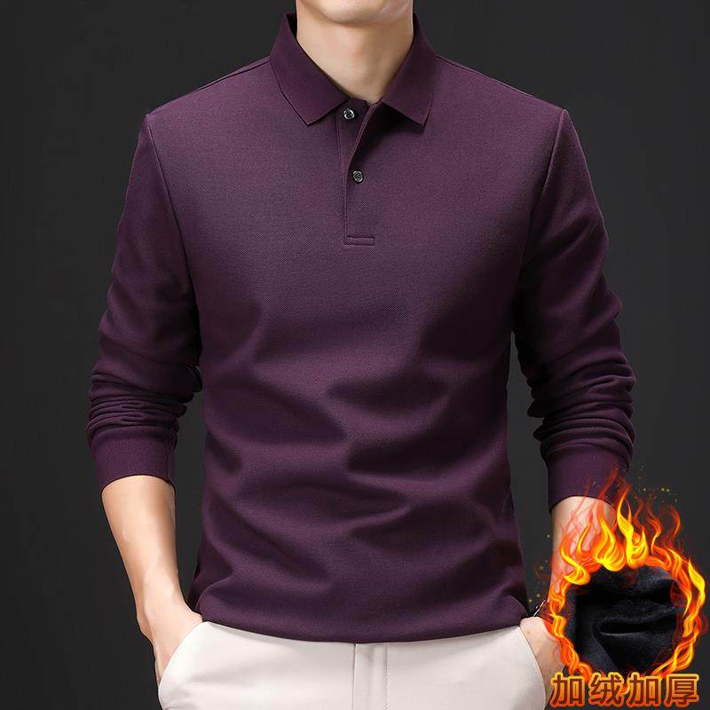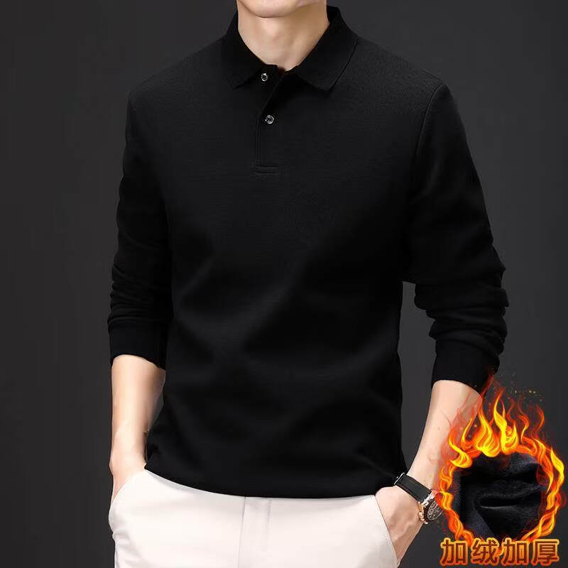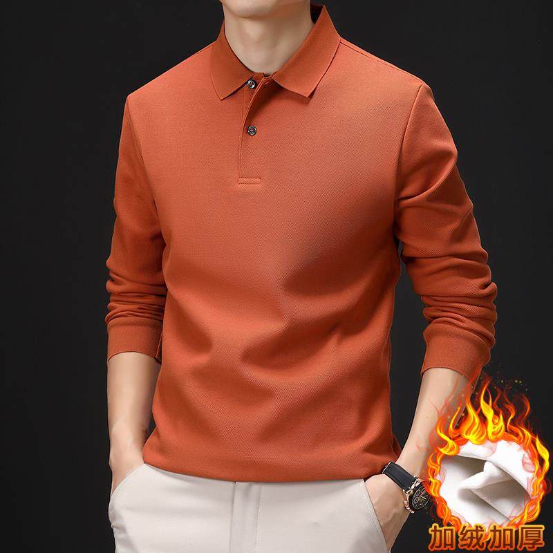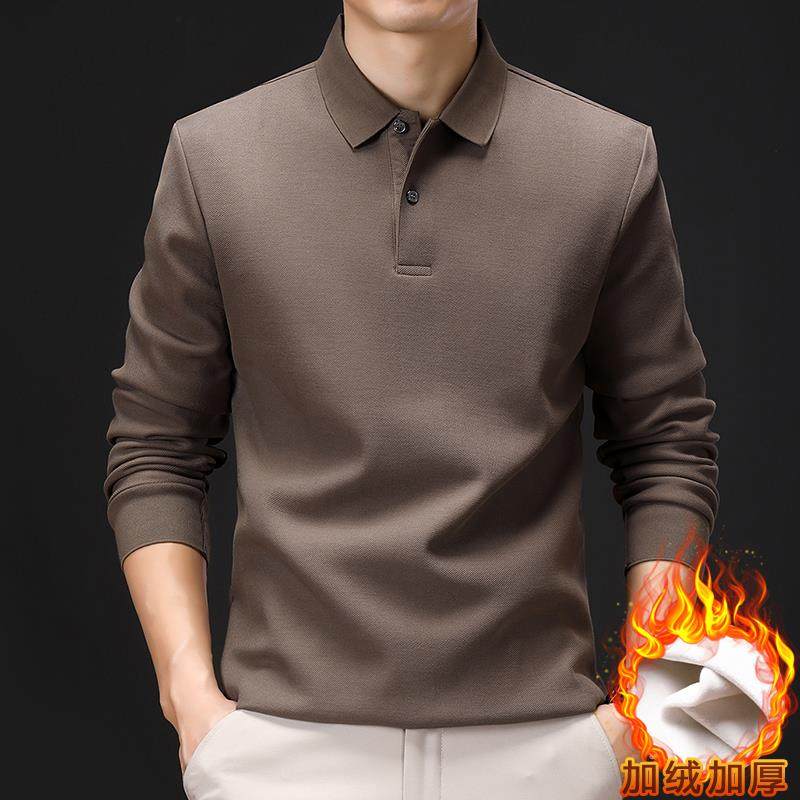 ROMON pure cotton winter men's long-sleeved T-shirt velvet thickened bottoming shirt lapel POLO. shirt thermal underwear green 4XL 190/ suitable for 185-200Jin Jin equals 0.5 kg