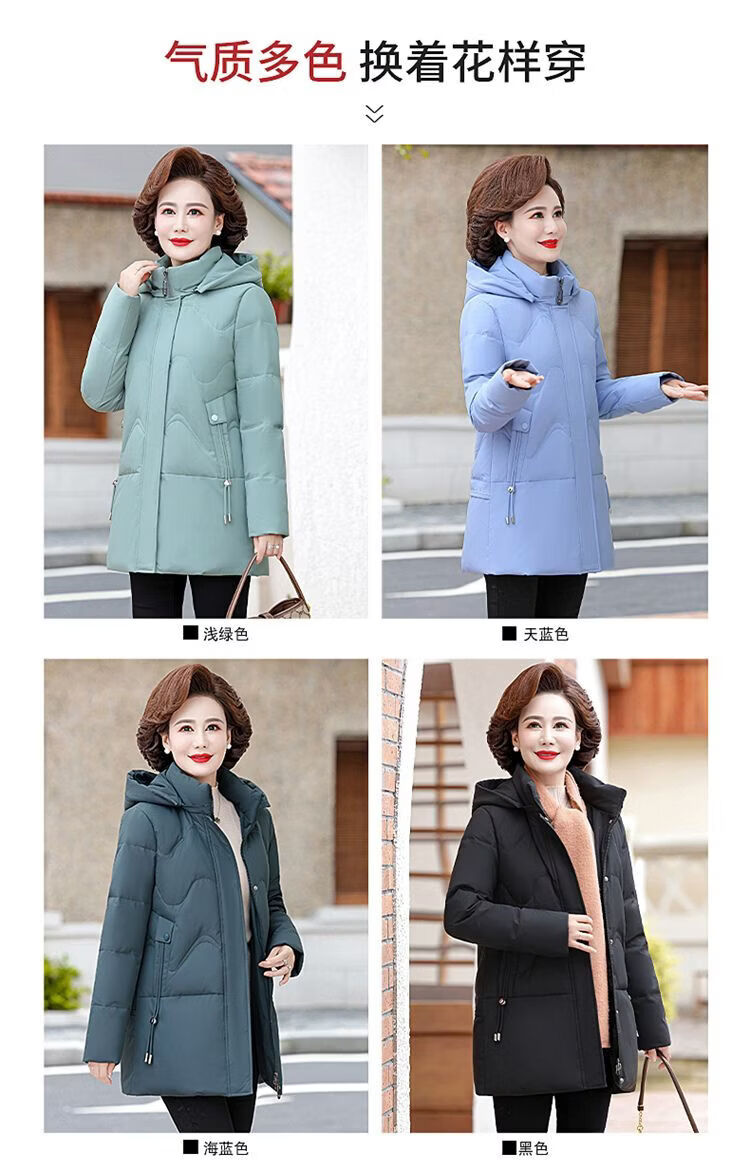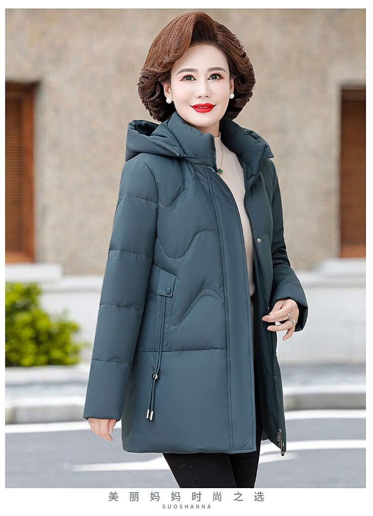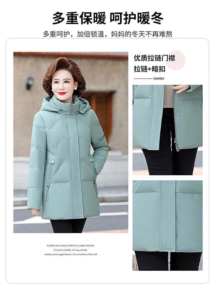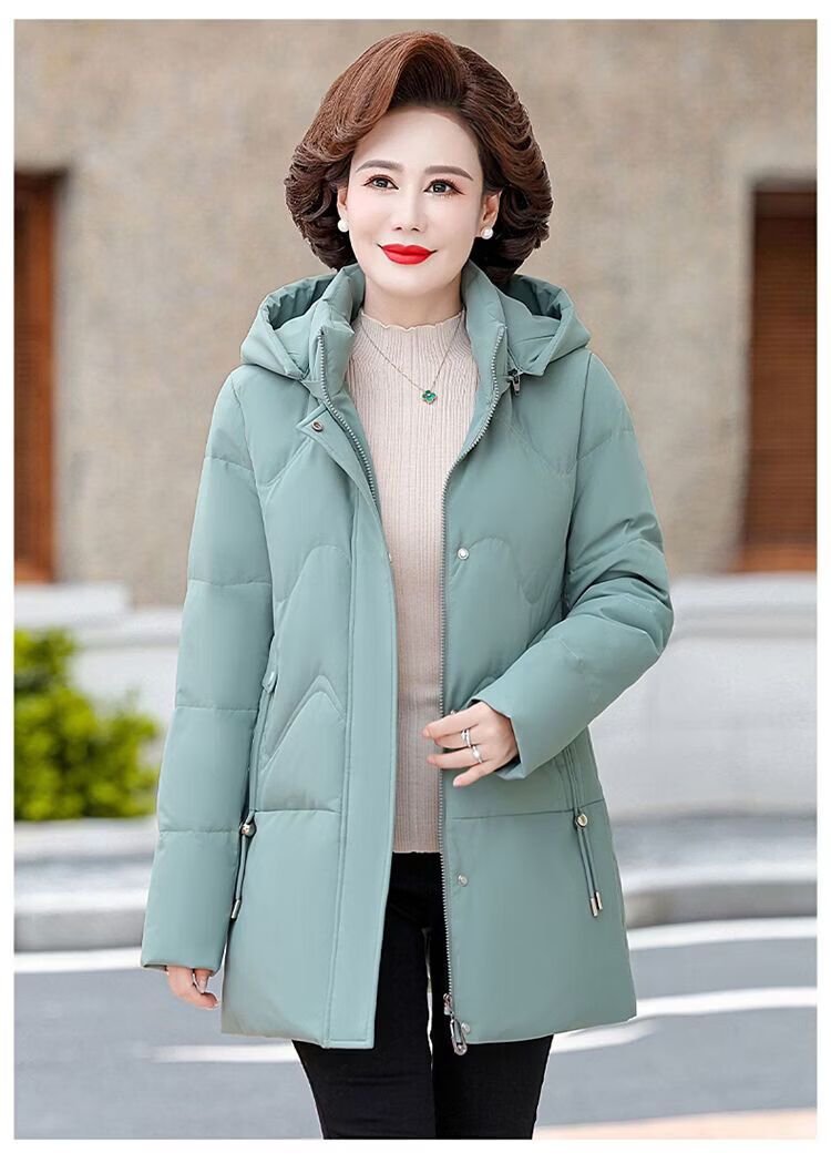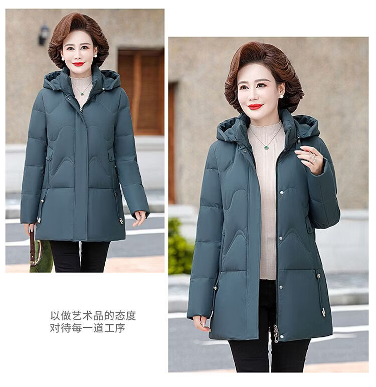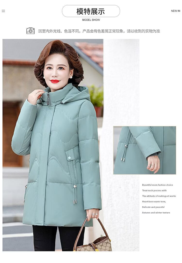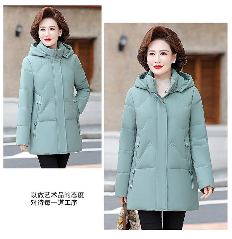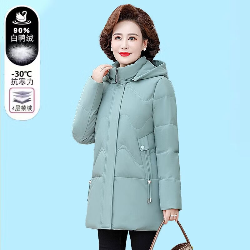 Chujing down jacket white duck down thickened warm mid-length style large size middle-aged mother's jacket 8302 light green XL recommended 85-105 Jin Jin equals 0.5 kg