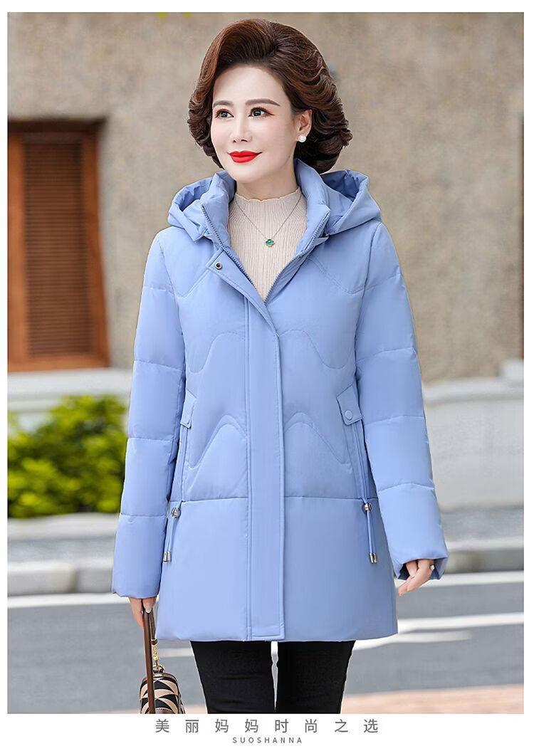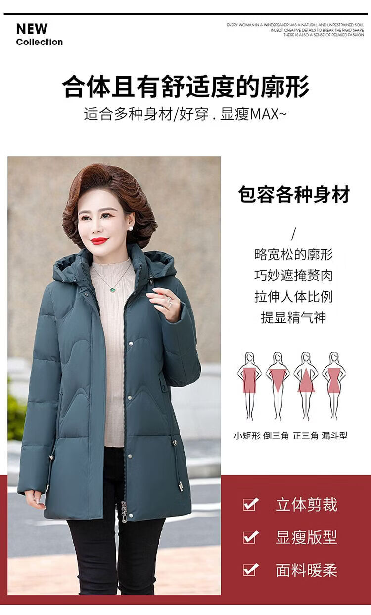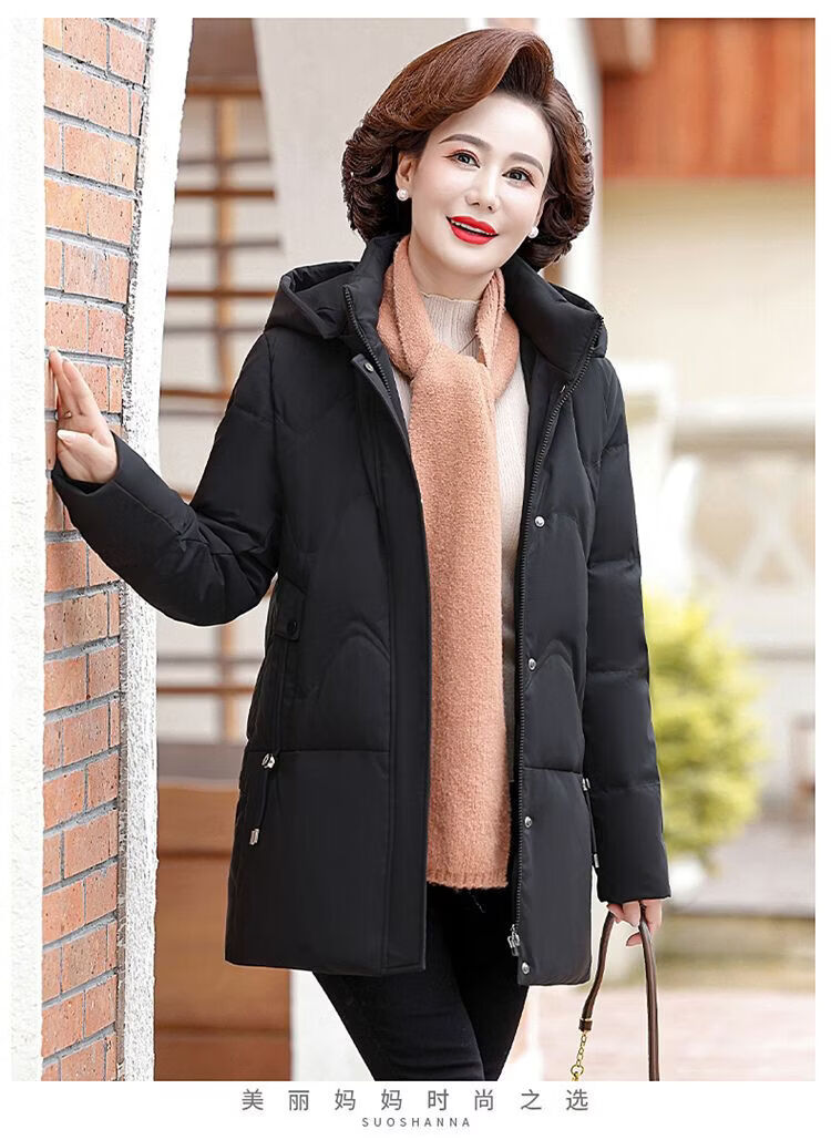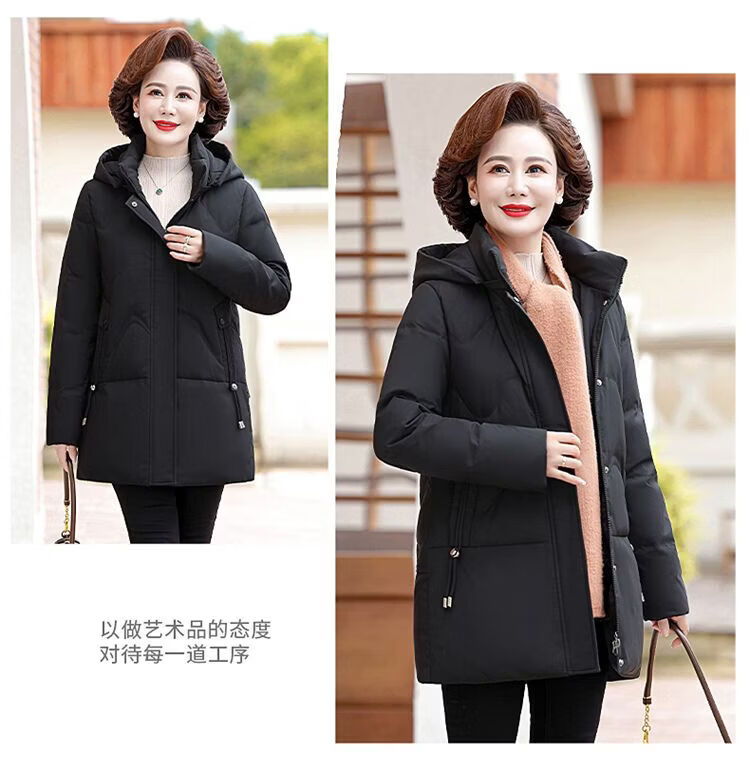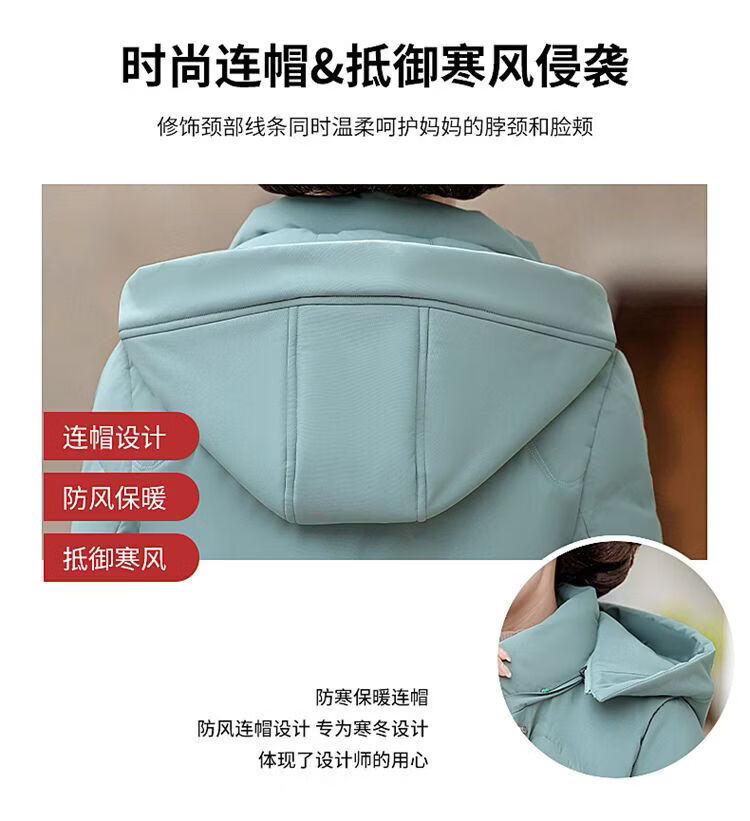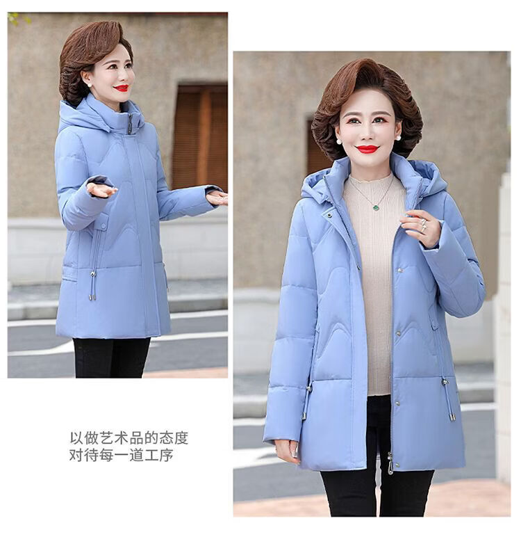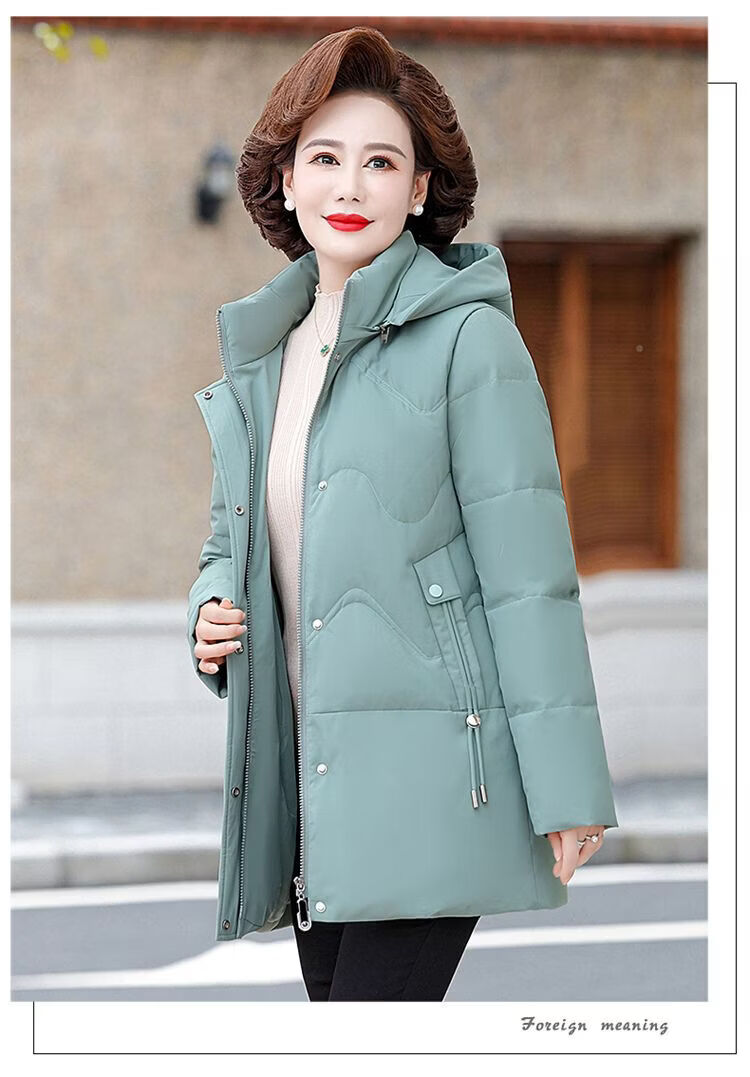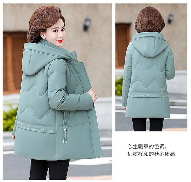 Chujing down jacket white duck down thickened warm mid-length style large size middle-aged mother's jacket 8302 light green XL recommended 85-105 Jin Jin equals 0.5 kg