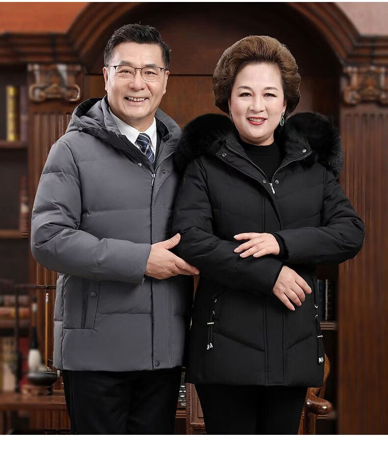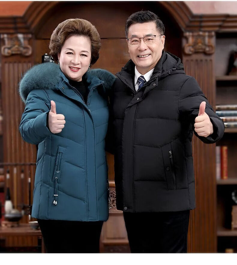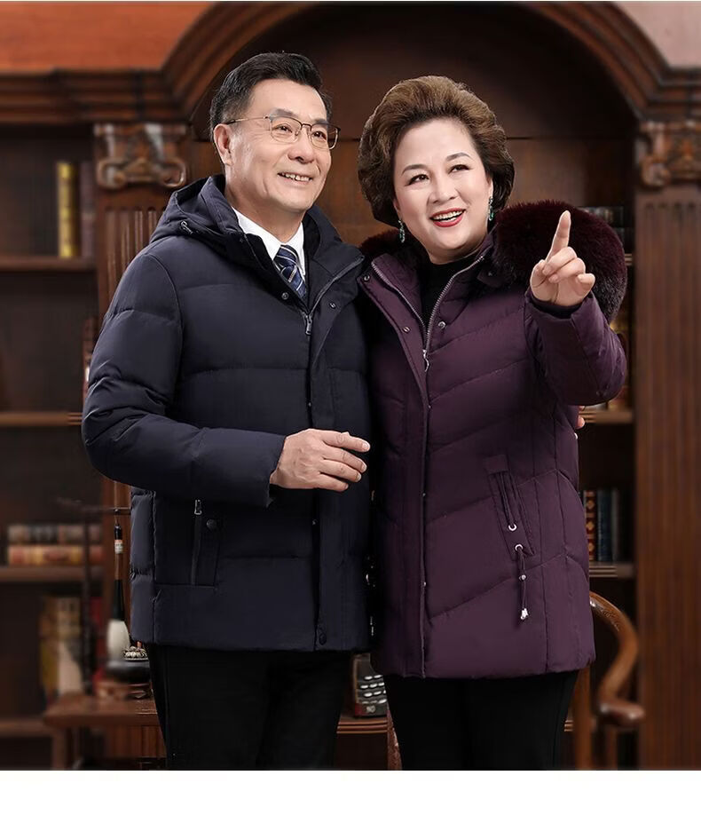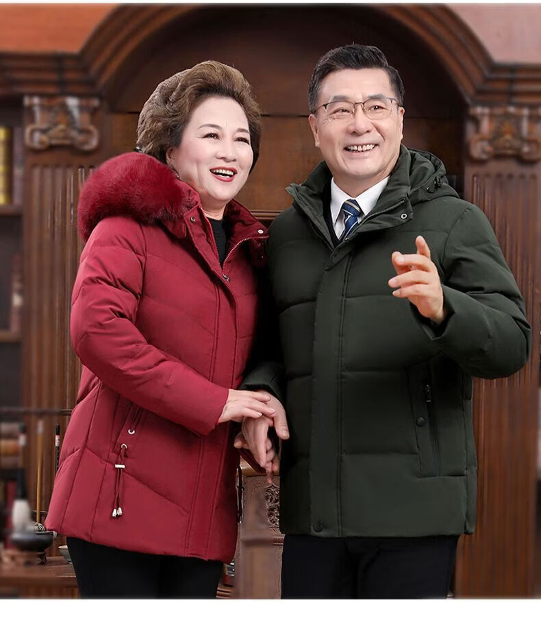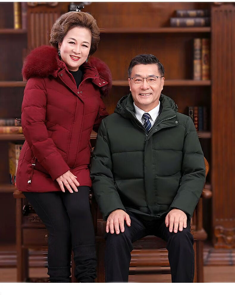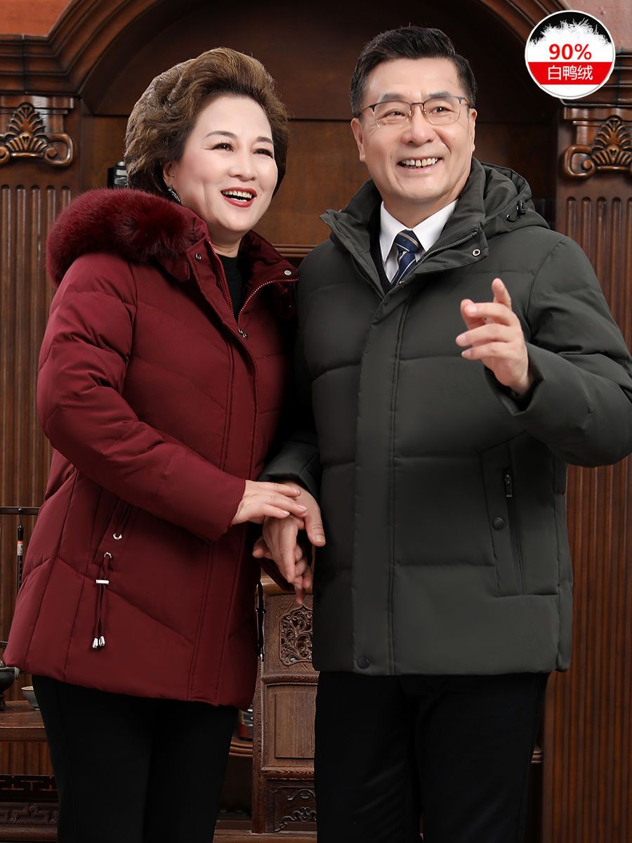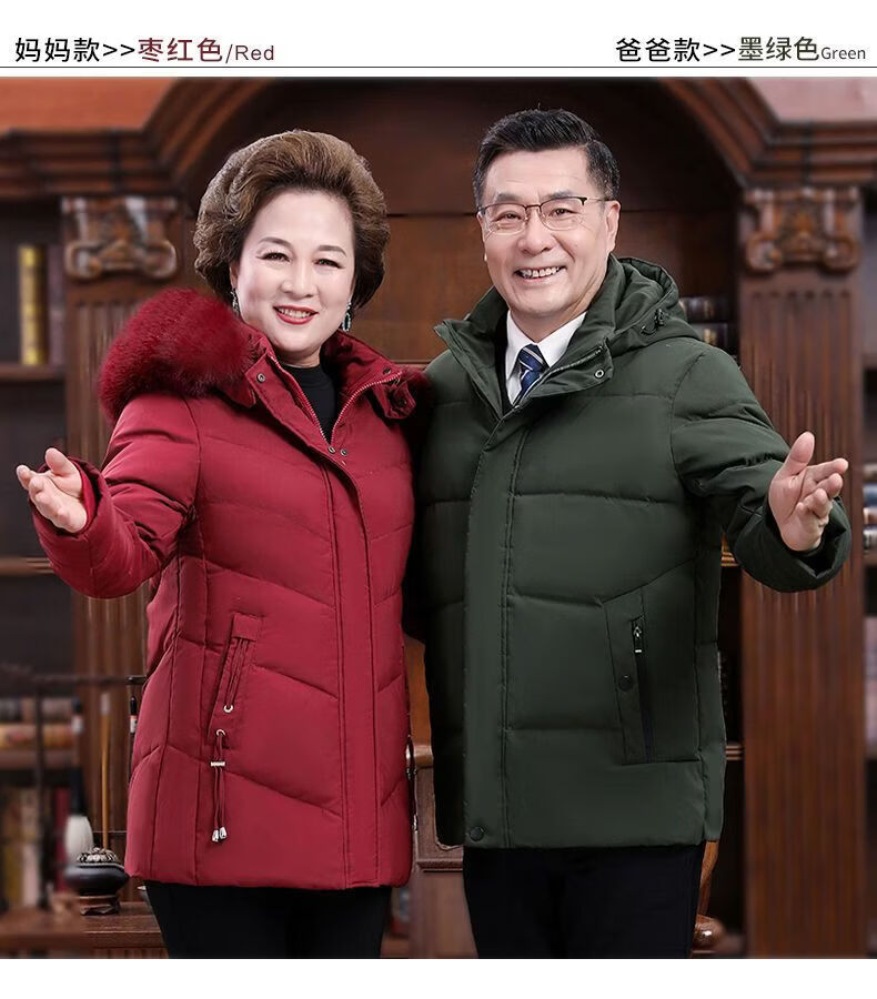Junior diameter middle-aged and elderly down jacket men's winter new thickened parents' men's and women's couple's winter jacket brick red female M
