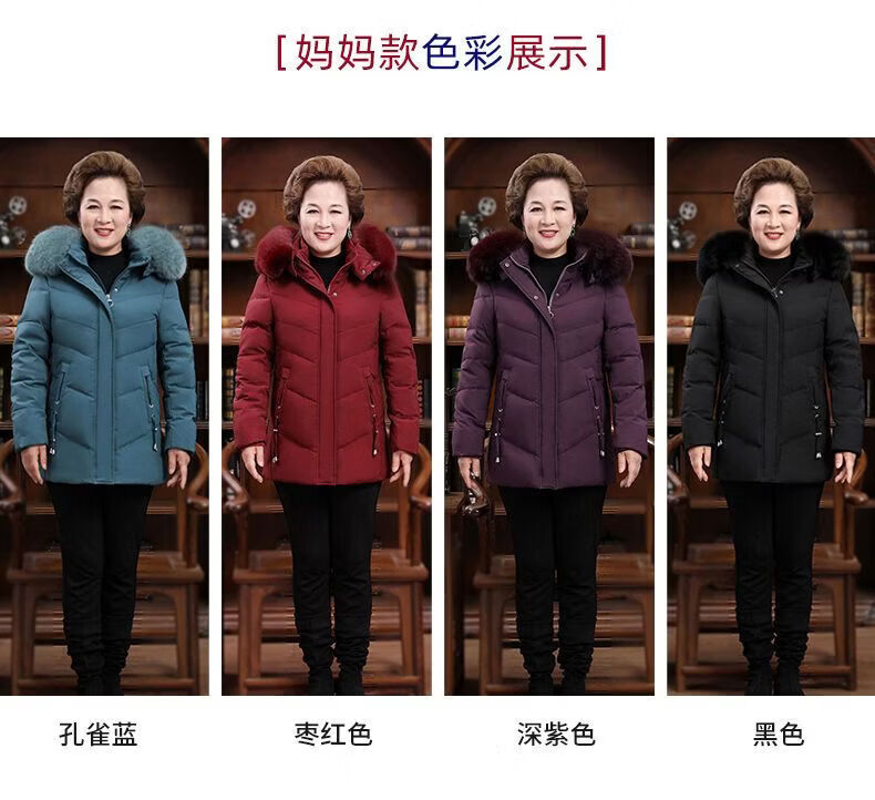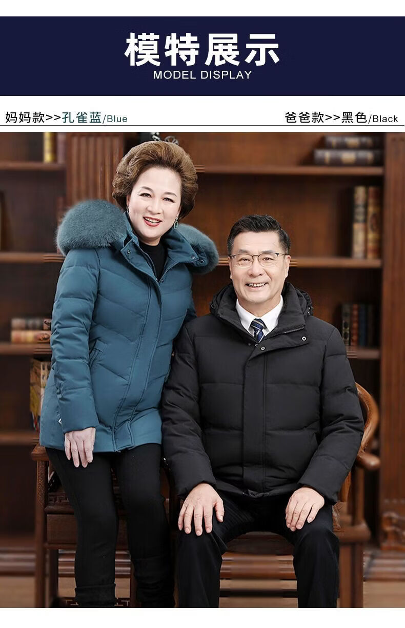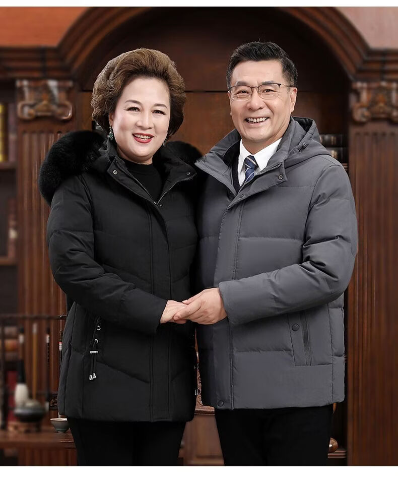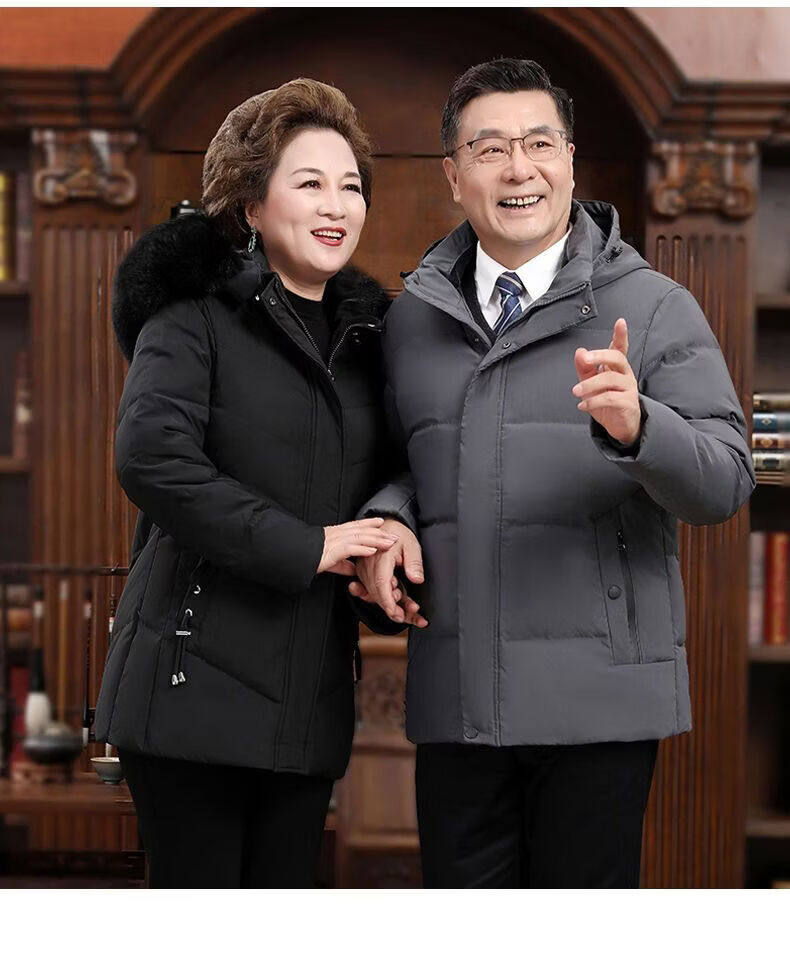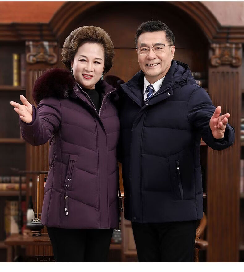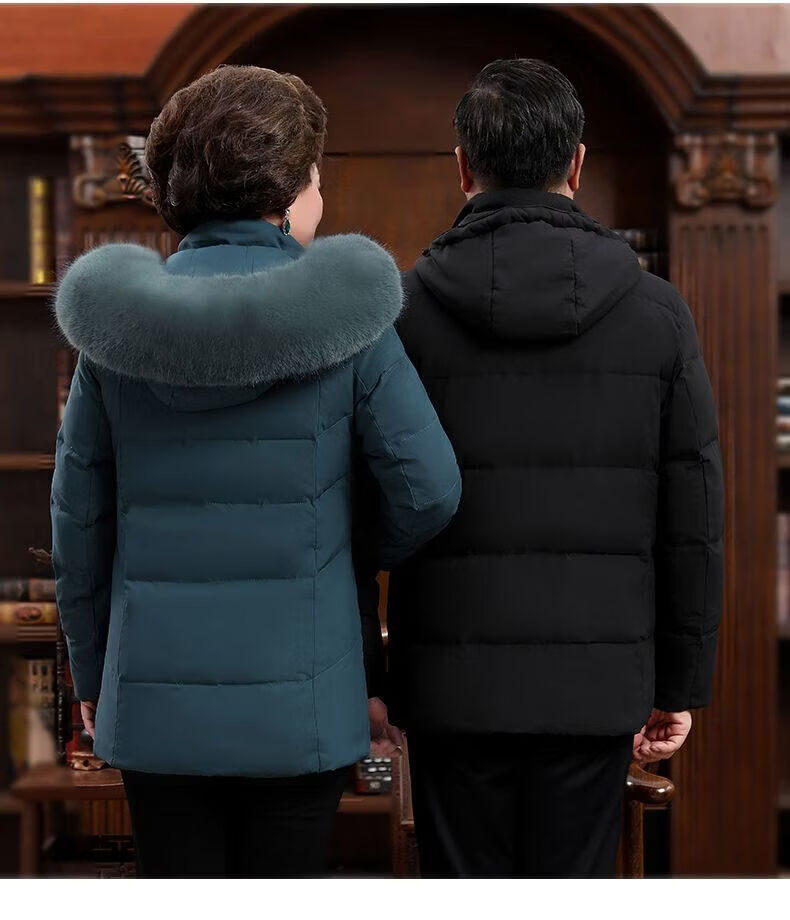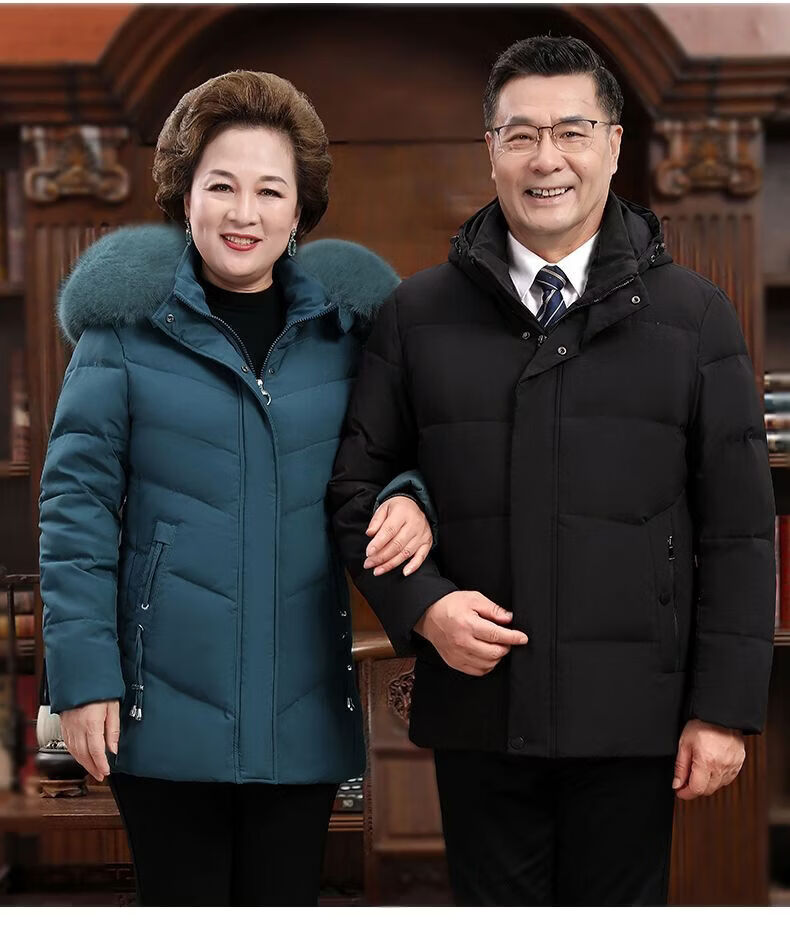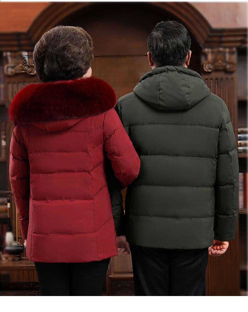 Junior diameter middle-aged and elderly down jacket men's winter new thickened parents' men's and women's couple's winter jacket brick red female M