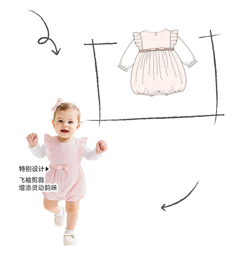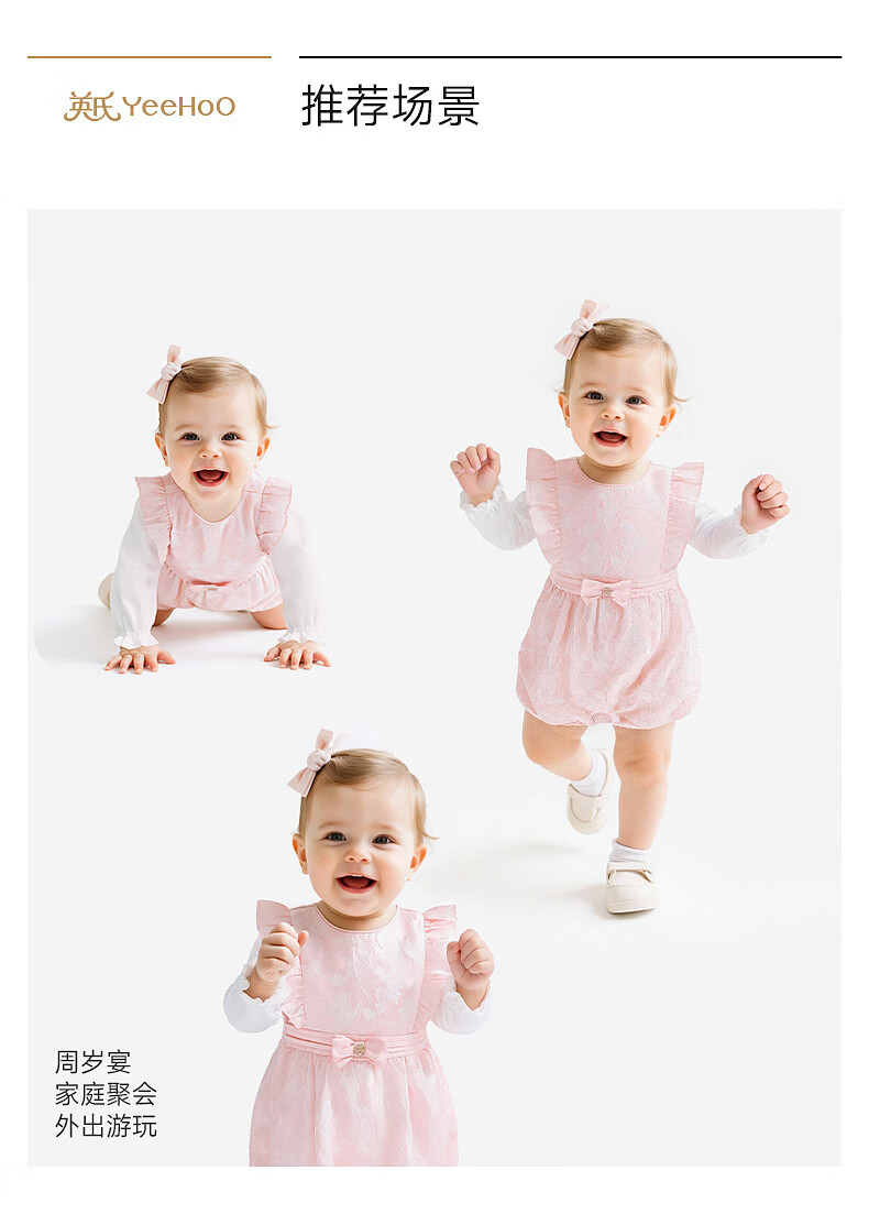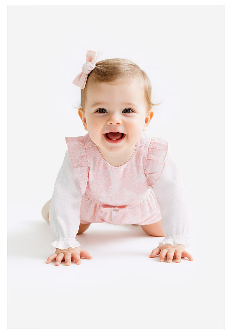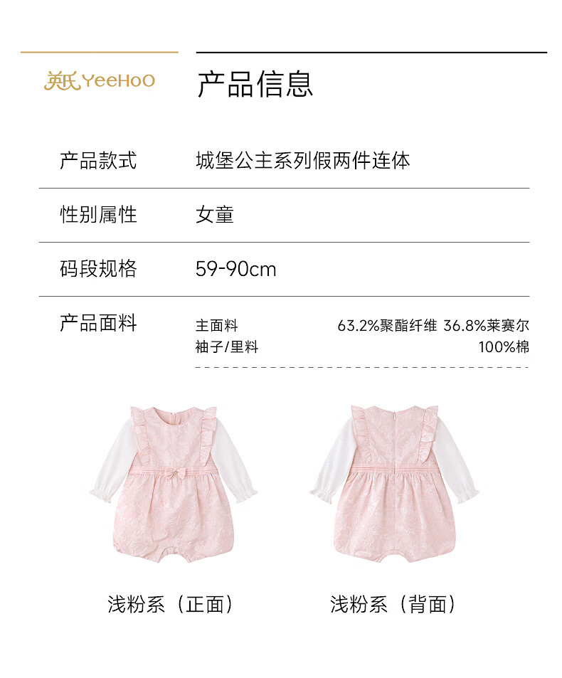 YEEHOO shopping mall same style baby jumpsuit for girls, long-sleeved jumpsuit, cute baby clothes, spring and summer romper, light pink color 66cm