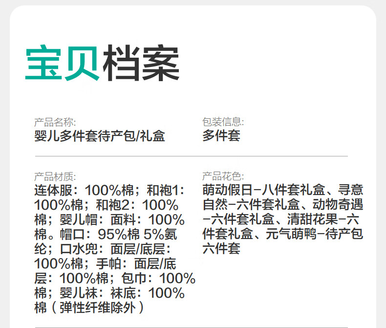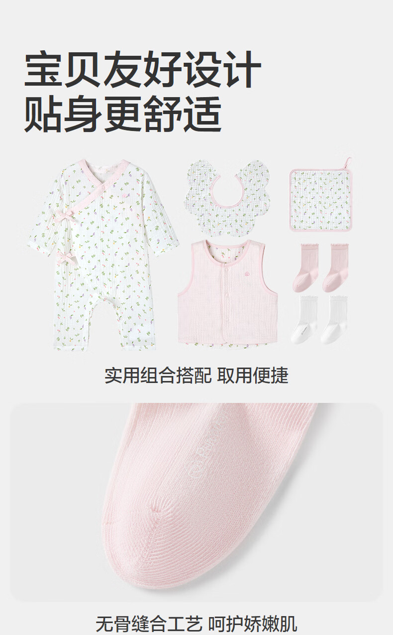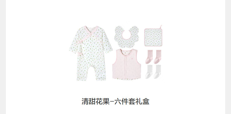 PurCotton 2026 Spring Baby Crepe Eight-piece Gift Box Sweet Flowers and Fruits-Six-piece Gift Box 66cm