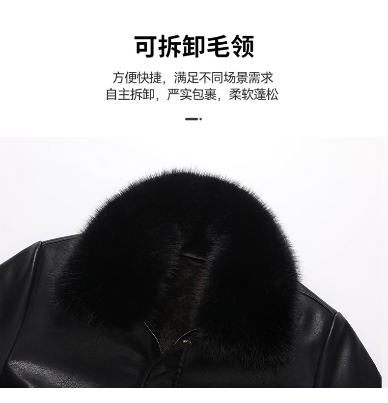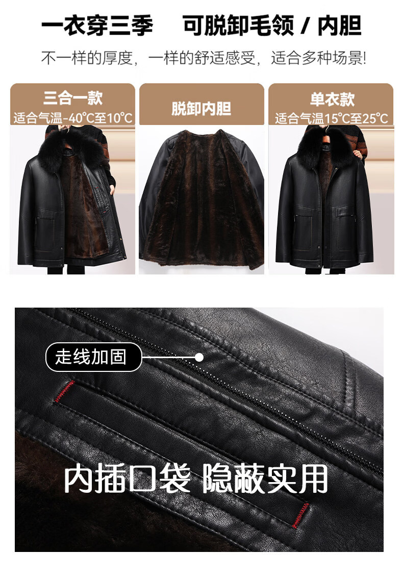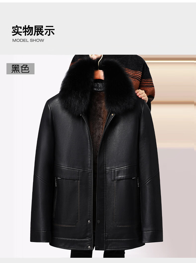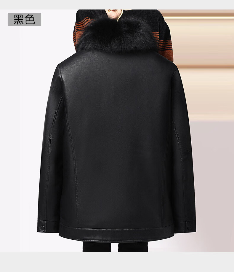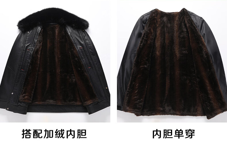 FLADY international first-line brand leather jacket new 2025 jacket men's velvet thickened spring and autumn dad leather jacket men's motorcycle 1610 black removable liner + large fur collar plus velvet L 175/88A 100Jin Jin is equal to 0.5kg -120Jin Jin is equal to 0.5kg Wear