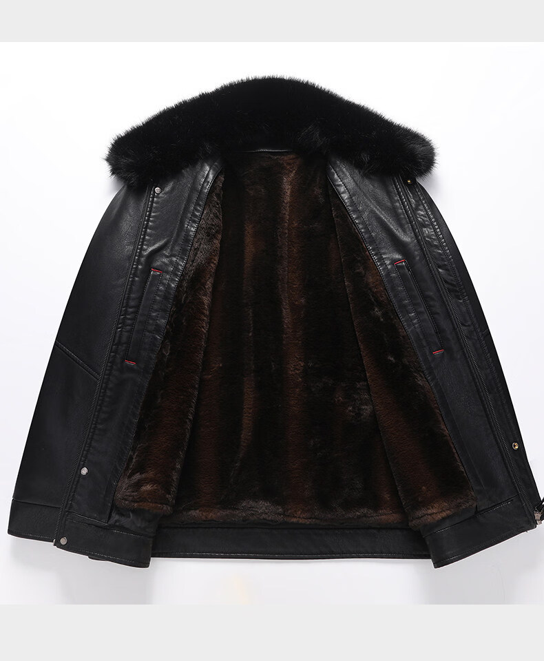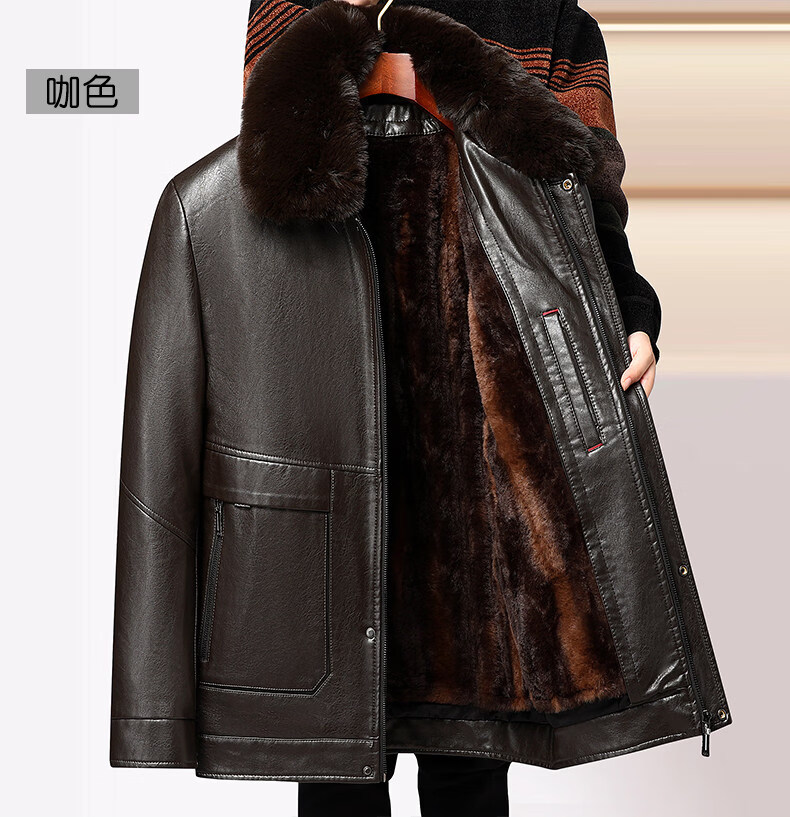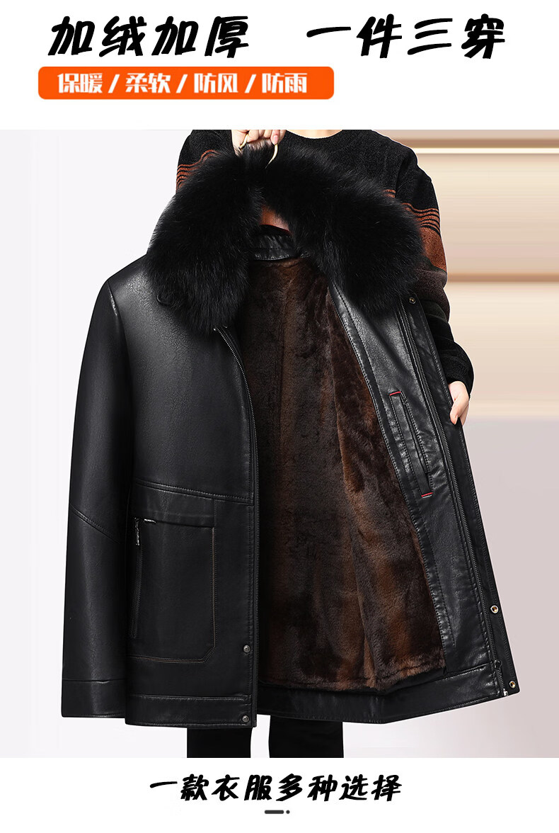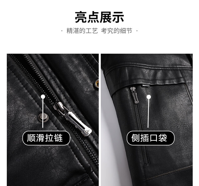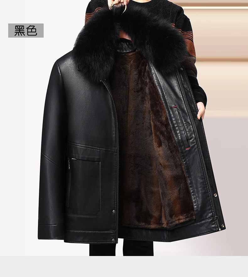FLADY international first-line brand leather jacket new 2025 jacket men's velvet thickened spring and autumn dad leather jacket men's motorcycle 1610 black removable liner + large fur collar plus velvet L 175/88A 100Jin Jin is equal to 0.5kg -120Jin Jin is equal to 0.5kg Wear