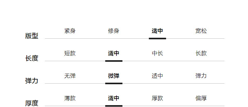 China (cm) 160-165/84-86 165-170 / 88-90 167-172 / 92-96 168-173 / 98-102 170-176 / 106-110
