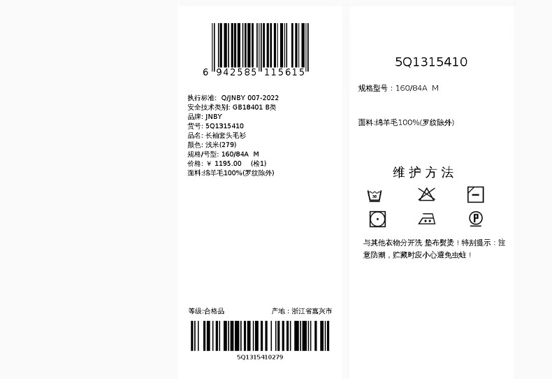 Jiangnan Buyi (JNBY) Shopping mall same style 26 spring new arrival wool sweater pullover 5Q1315410 075/medium gray L
