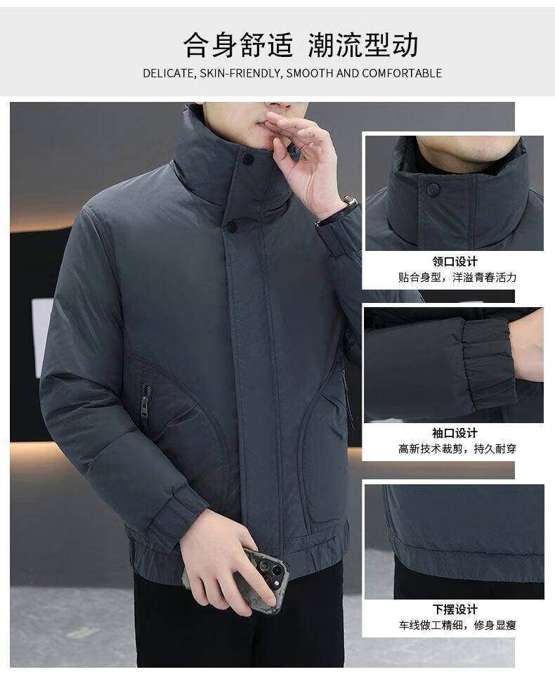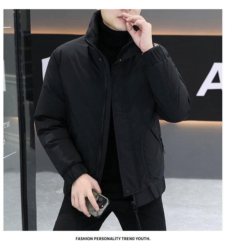 Hengyuanxiang light and thin men's down jacket new duck down stand collar winter new coat warm short winter coat thickened casual XC stand collar 3316 black high quality 100% warm 3XL 160-175