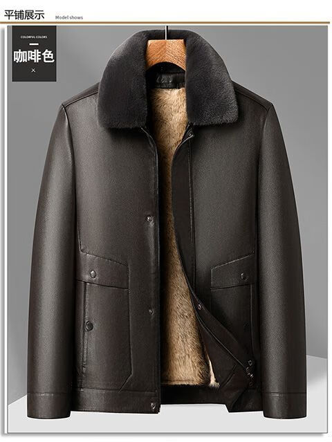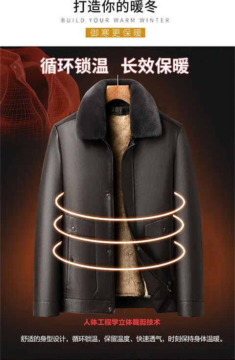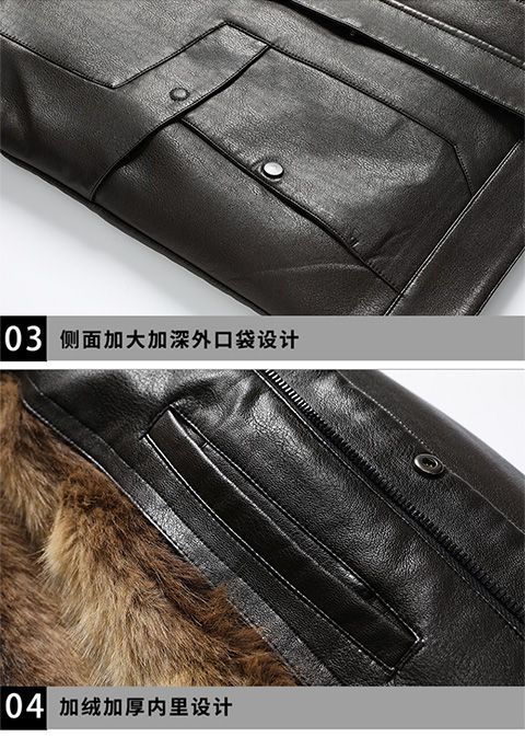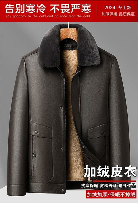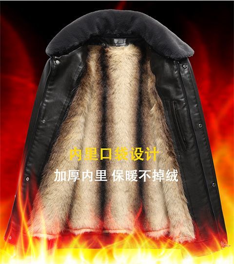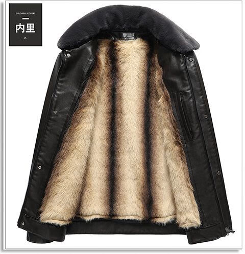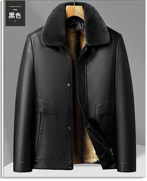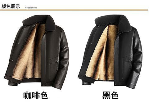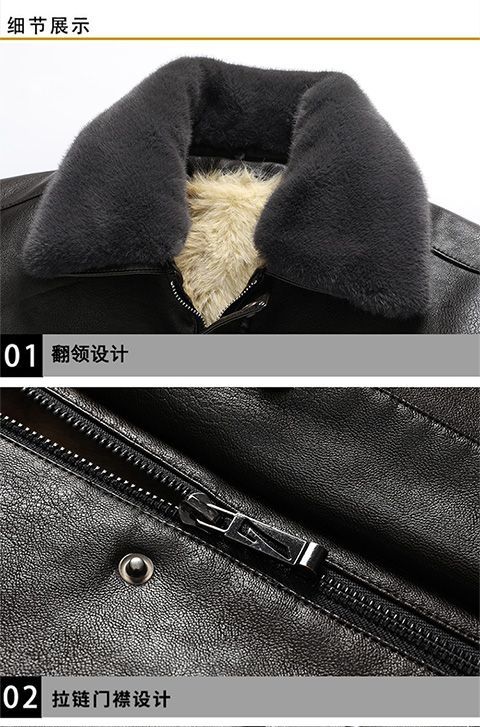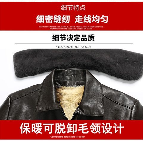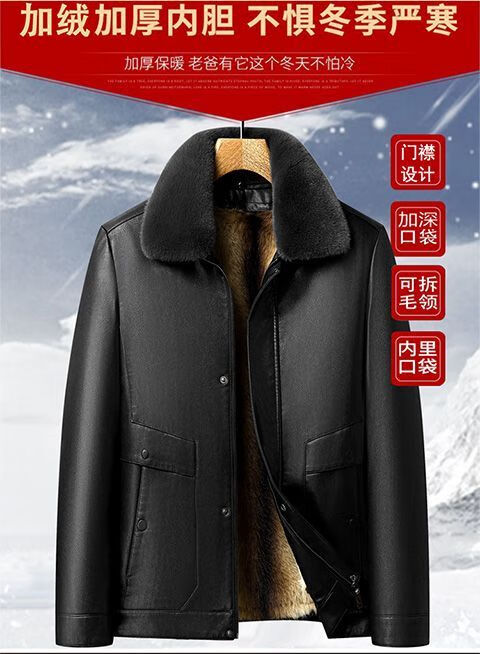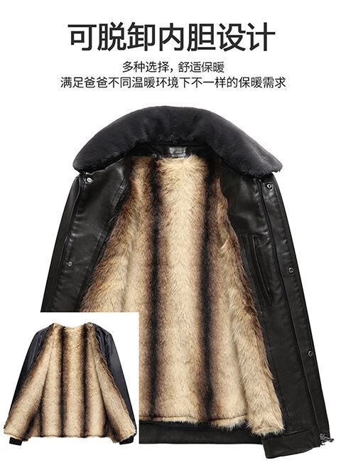 Hengyuanxiang Men's Middle-aged Winter Leather Jacket Winter Thickened Liner Leather Jacket Plus Velvet Removable Dad Warm Jacket for Middle-aged and Elderly People Black 9802 Liner Removable Style 3XL 190 155-170Jin Jin is equal to 0.5 kg