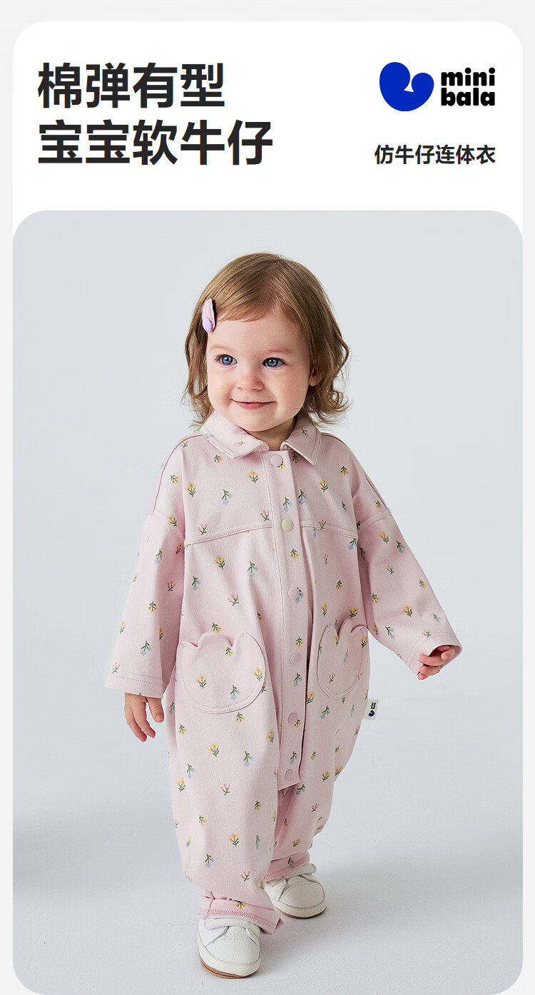 Mini Bala (minibala) Bala baby clothes for men and women, imitation denim retro jumpsuit, soft going out, spring new style, light gray 20045 73cm