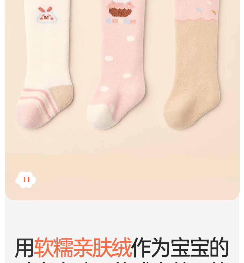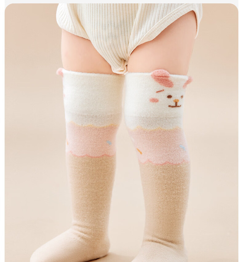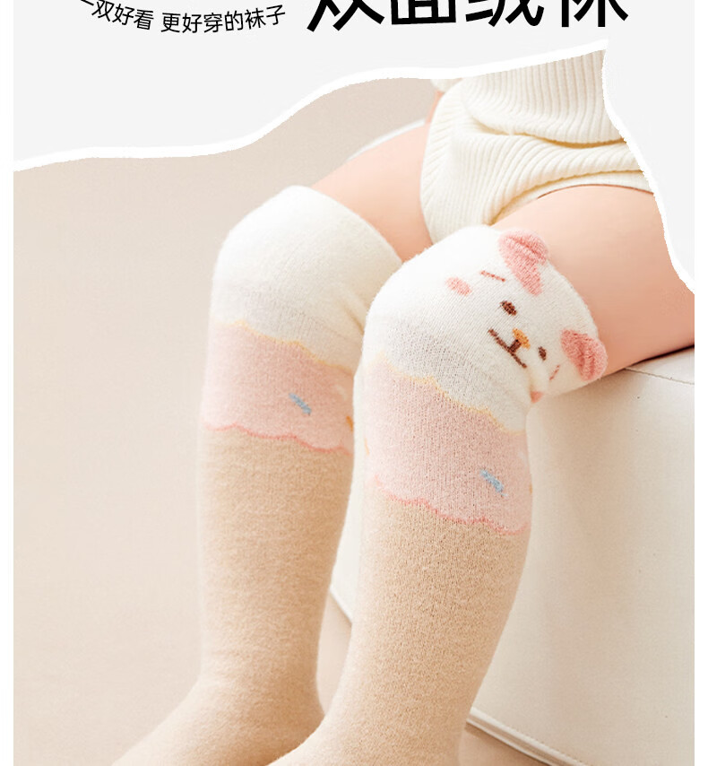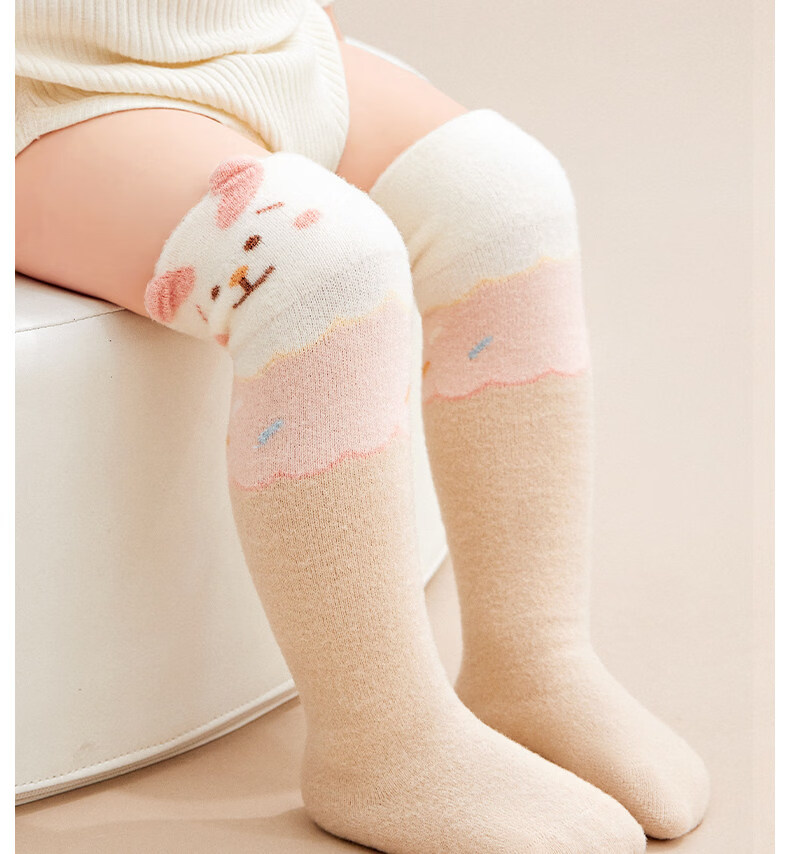 Cotton baby plus velvet over-the-knee socks, autumn and winter style newborn socks for boys and girls 0-6 months old, warm and skin-friendly velvet calf socks B5053-girl model-3 pairs of skin-friendly velvet over-the-knee calf socks for 0-6 months - recommended foot length 8-10cm