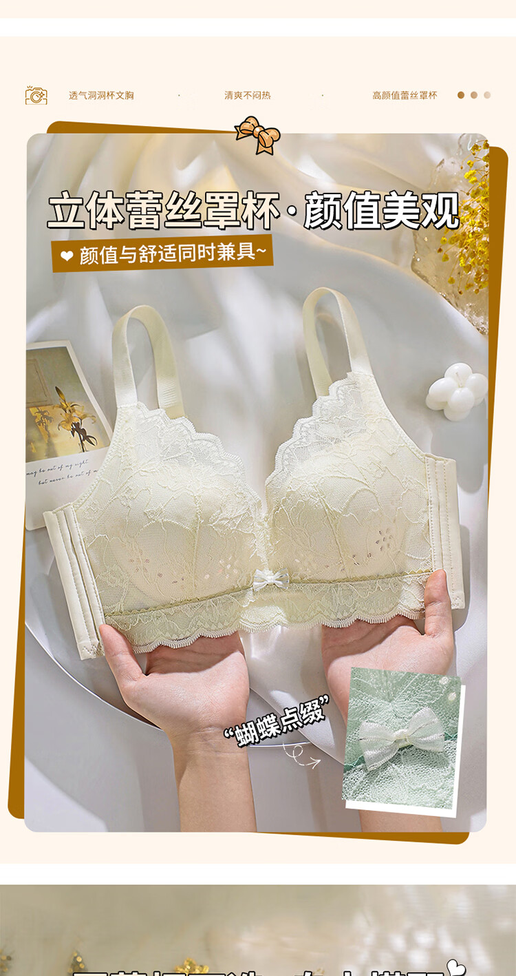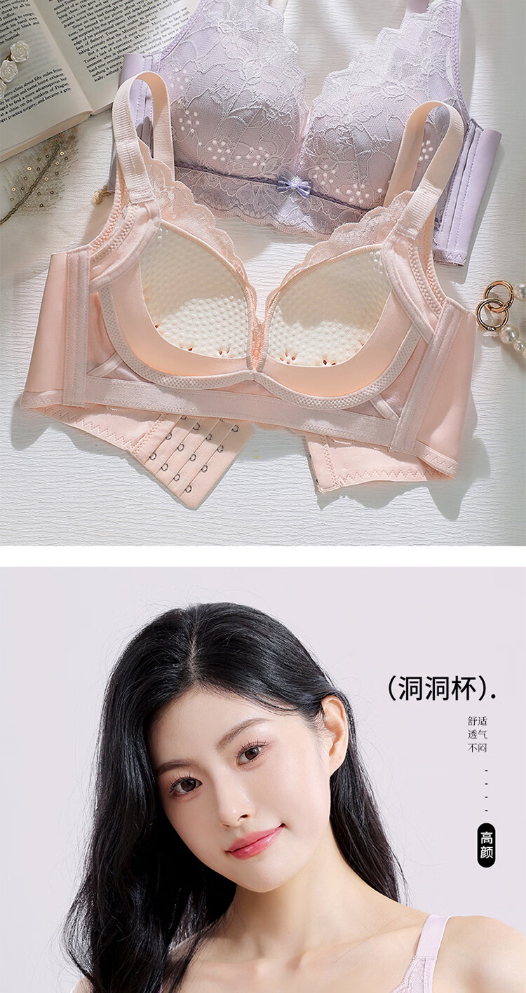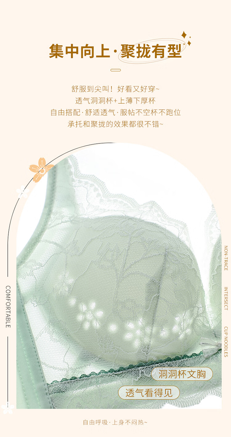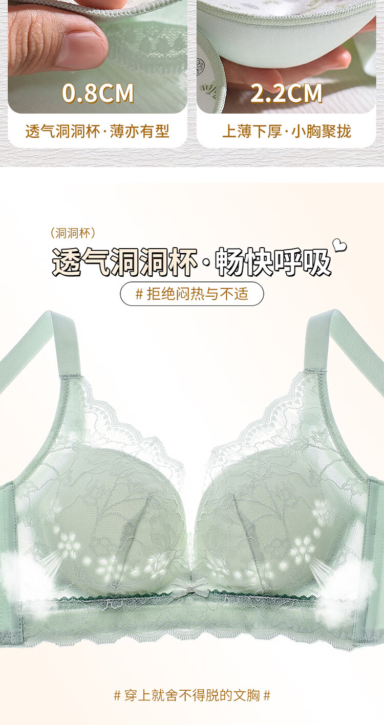 Urban Beauty Women's Underwear Women's Small Breast Gathering Top Support Anti-Sagging Breathable Hole Cup Wireless Lace Bra Elegant Black 70B AB Medium Thick Through Cup