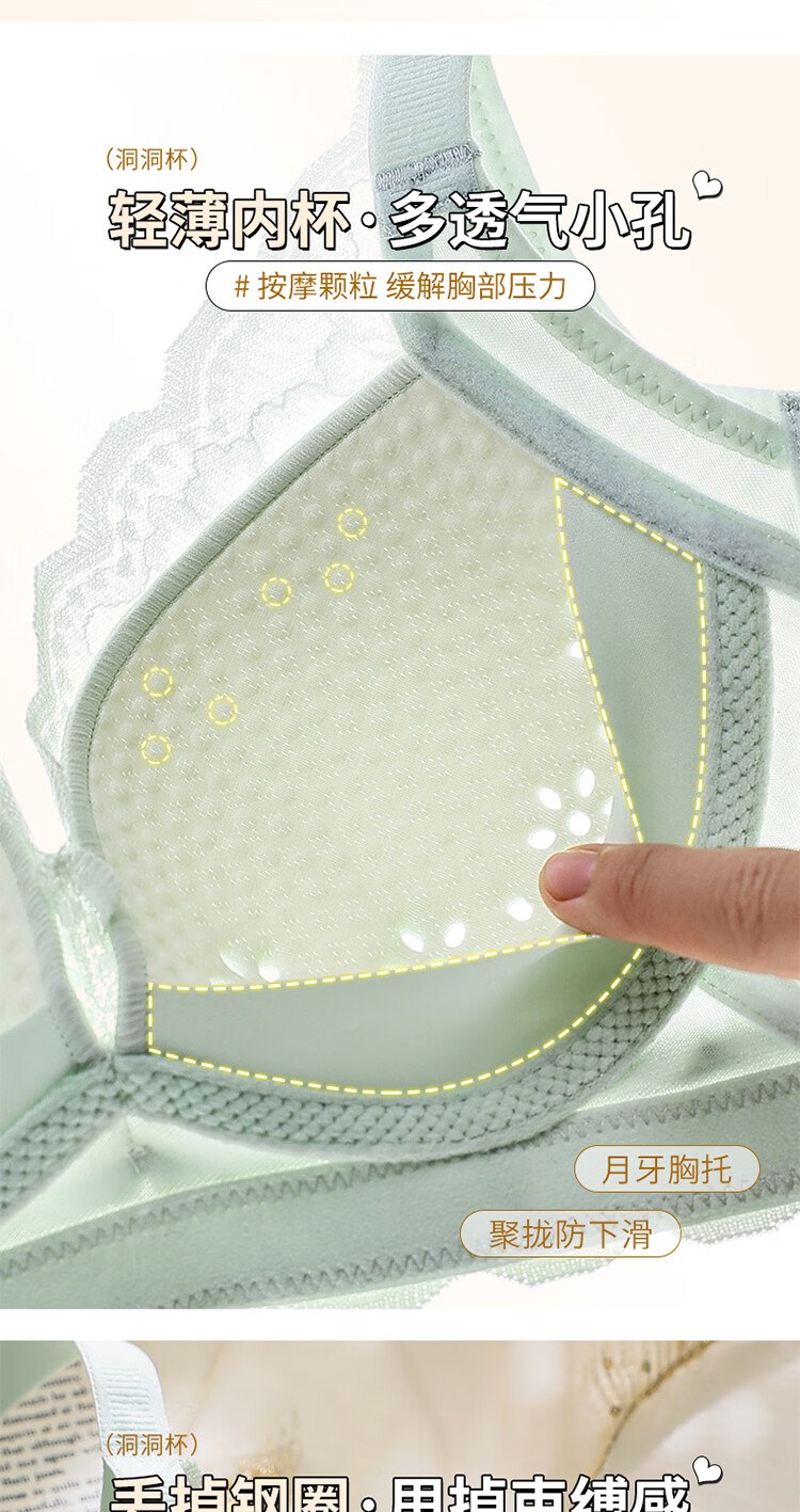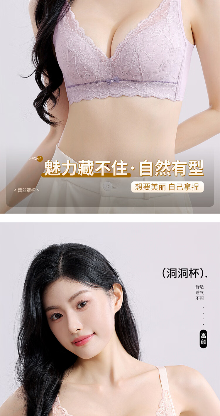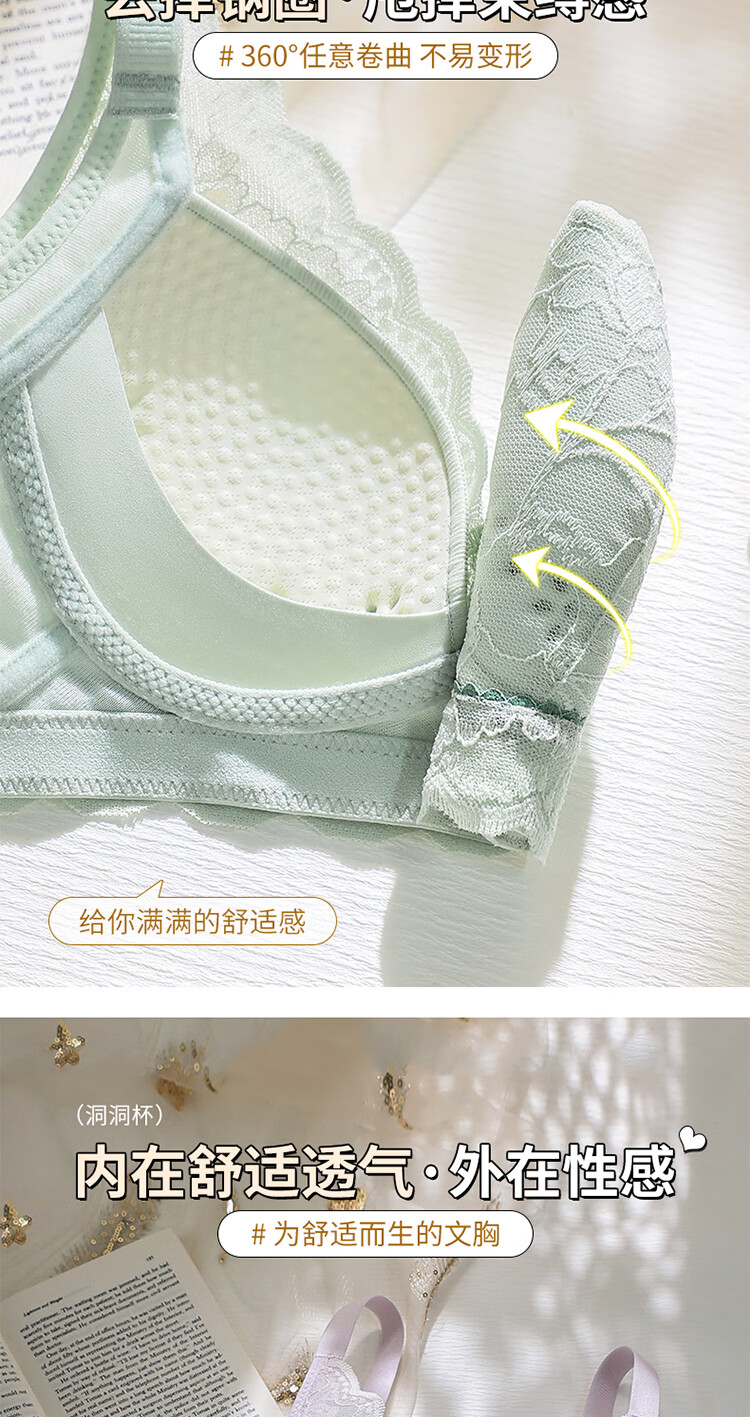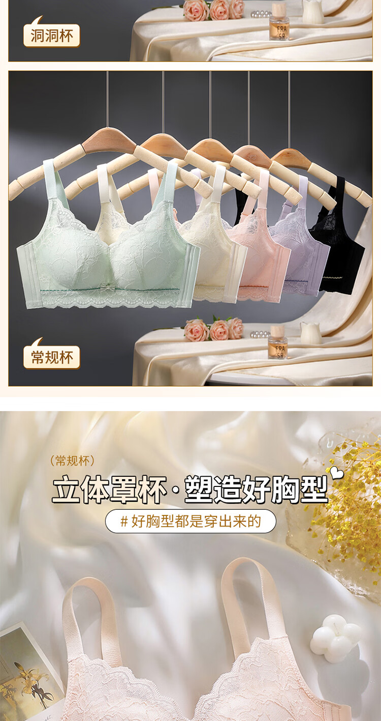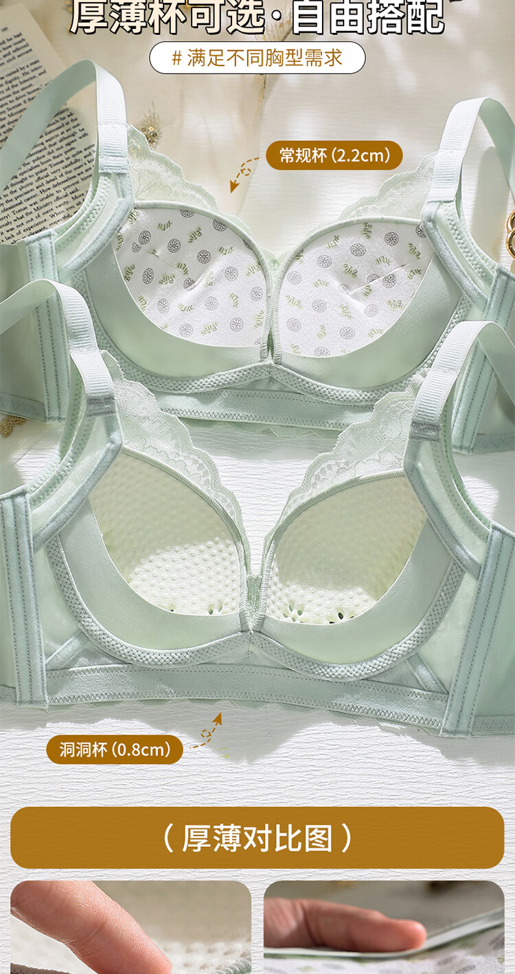 Urban Beauty Women's Underwear Women's Small Breast Gathering Top Support Anti-Sagging Breathable Hole Cup Wireless Lace Bra Elegant Black 70B AB Medium Thick Through Cup