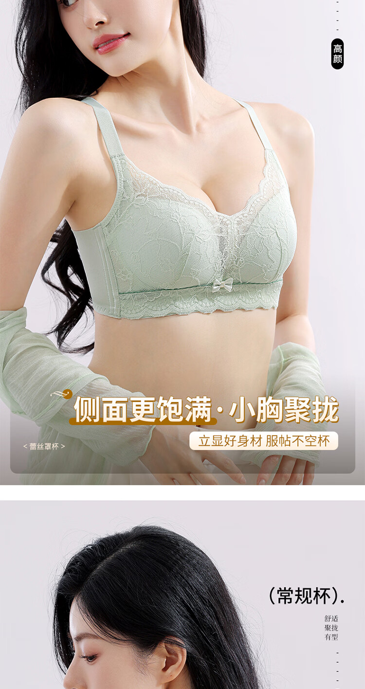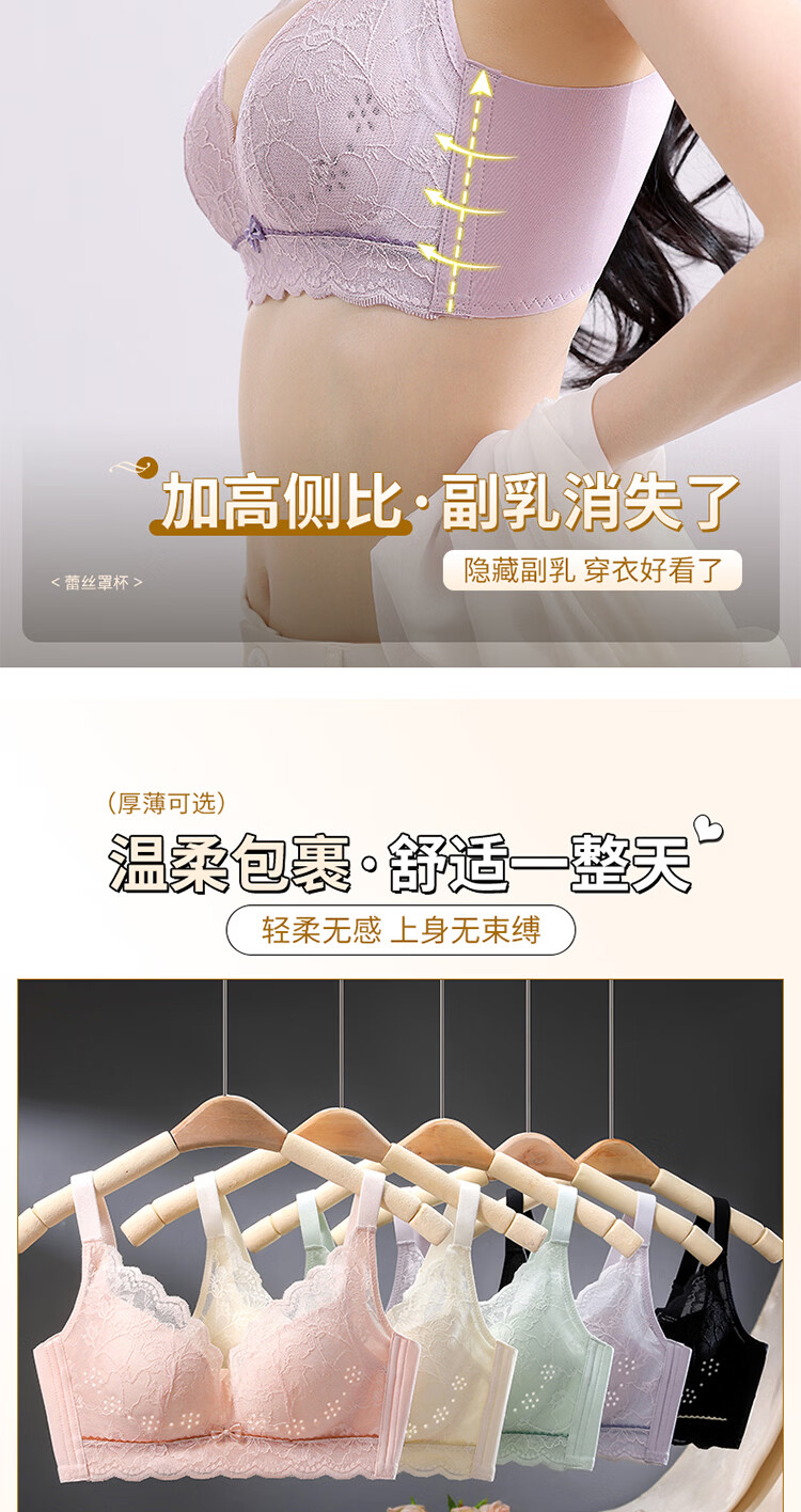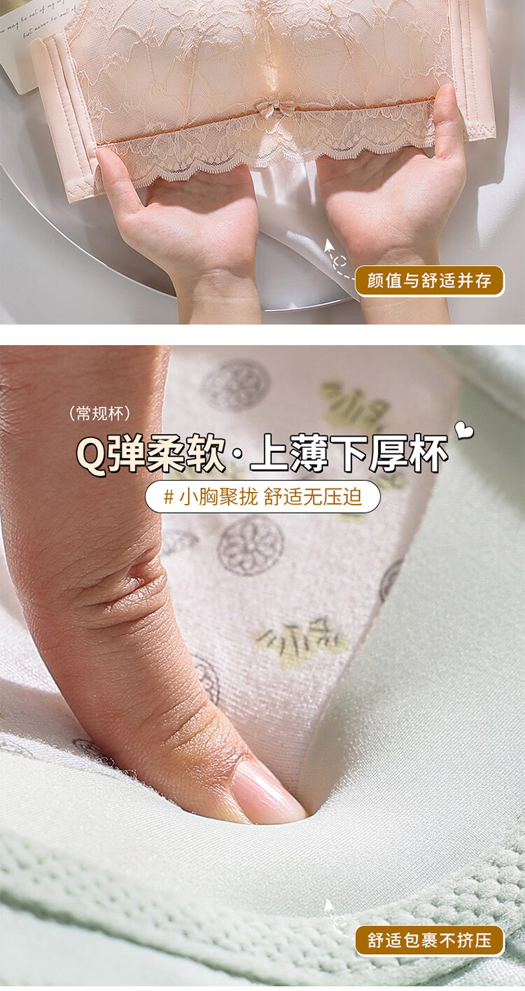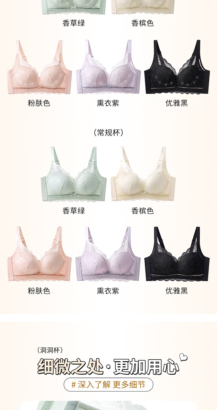 Urban Beauty Women's Underwear Women's Small Breast Gathering Top Support Anti-Sagging Breathable Hole Cup Wireless Lace Bra Elegant Black 70B AB Medium Thick Through Cup