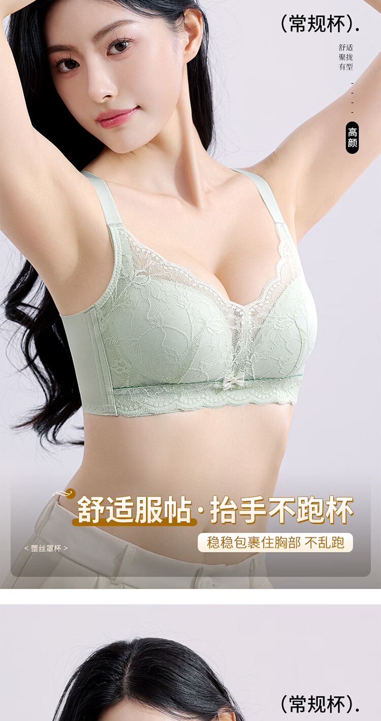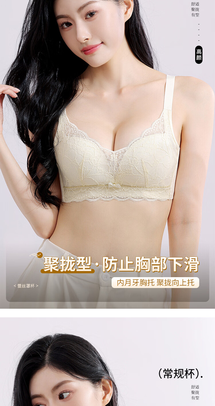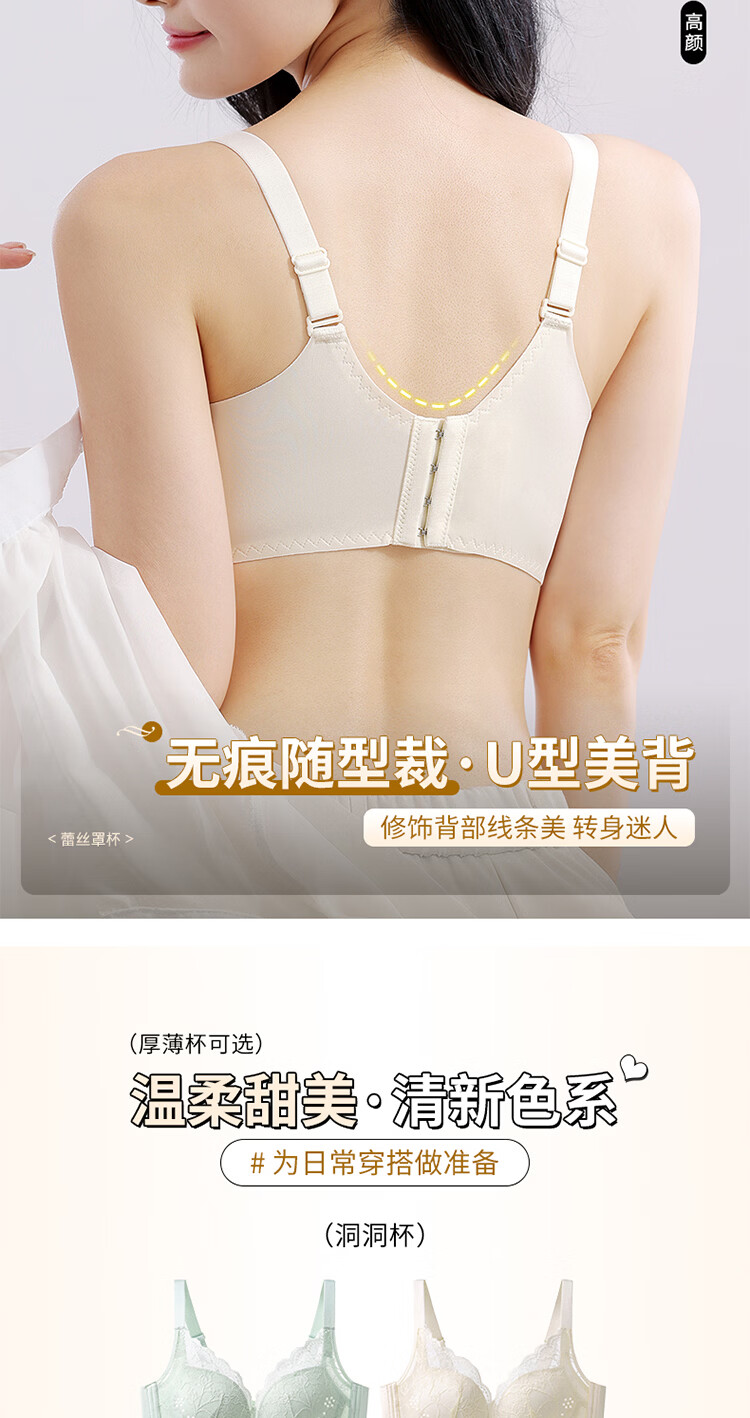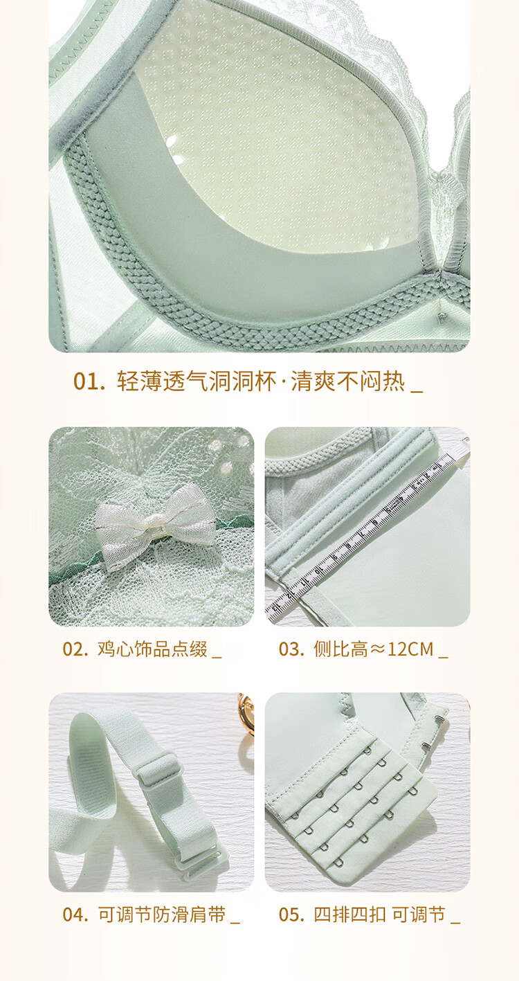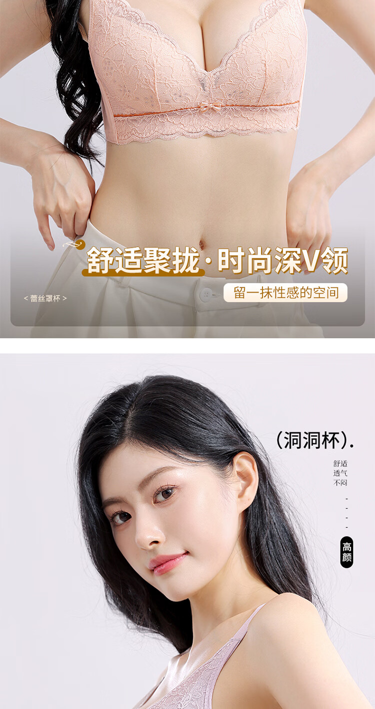 Urban Beauty Women's Underwear Women's Small Breast Gathering Top Support Anti-Sagging Breathable Hole Cup Wireless Lace Bra Elegant Black 70B AB Medium Thick Through Cup