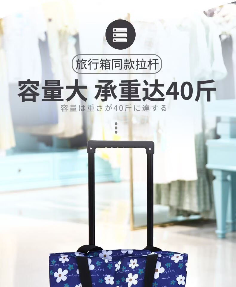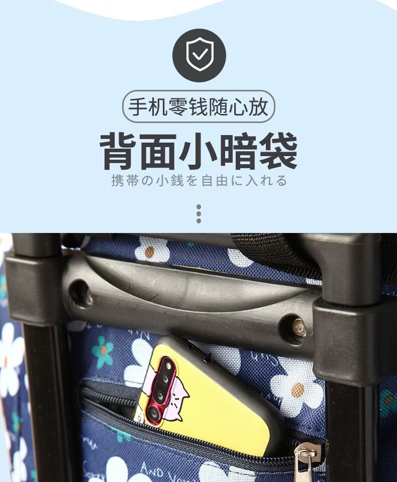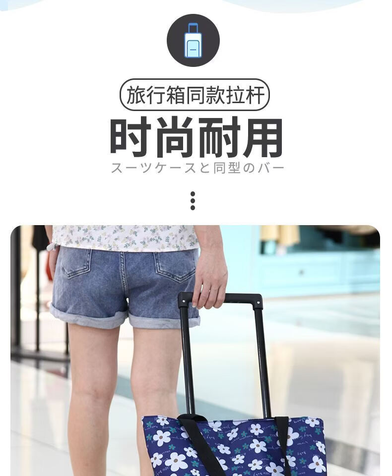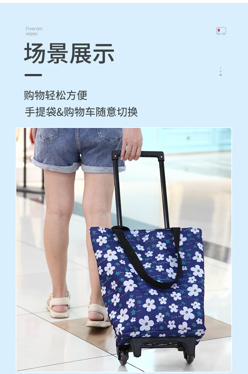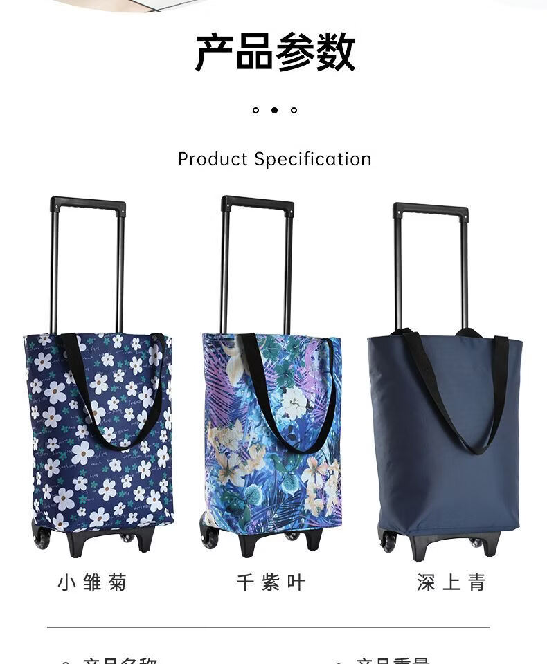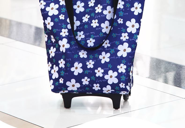 Fantasy Foldable Oxford Cloth Grocery Shopping Trolley Lightweight Supermarket Shopping Trailer Thick Trolley Rod for Elderly Grocery Shopping Artifact Golden Fox Thick Trolley Rod (Buckle Bag Mouth)