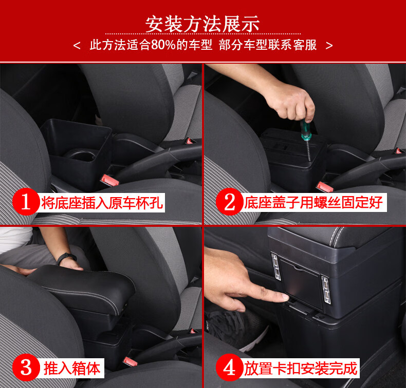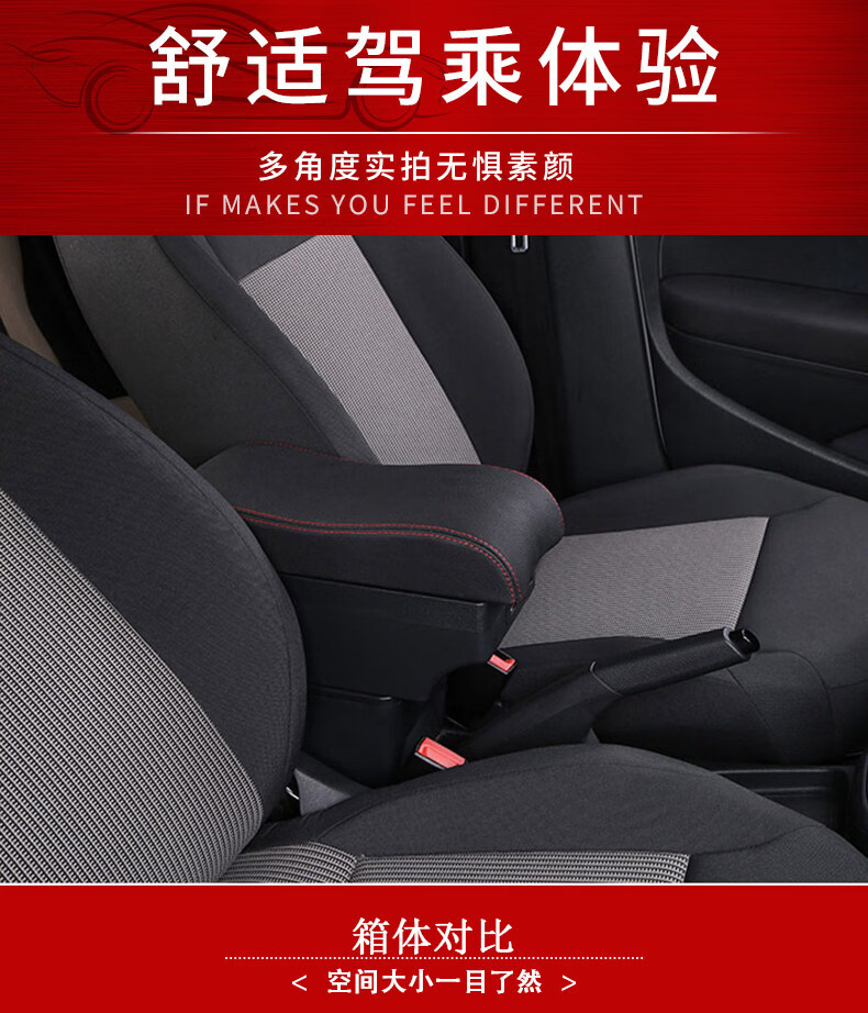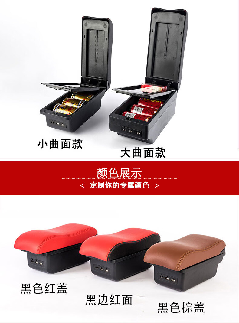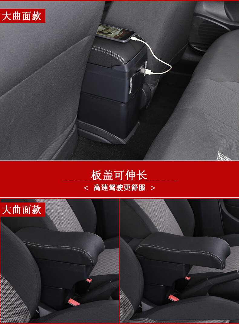 Bozi is suitable for Passat b5 armrest box 02 central old model 05 storage box 03 model 04 accessories 07 handrail 06 large curved black red line double-layer storage - front and rear 7USB charging Volkswagen Passat supports fast charging